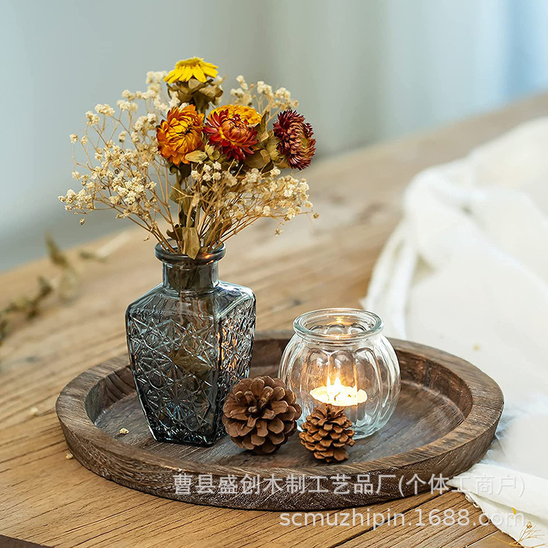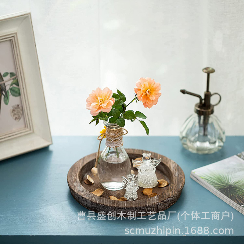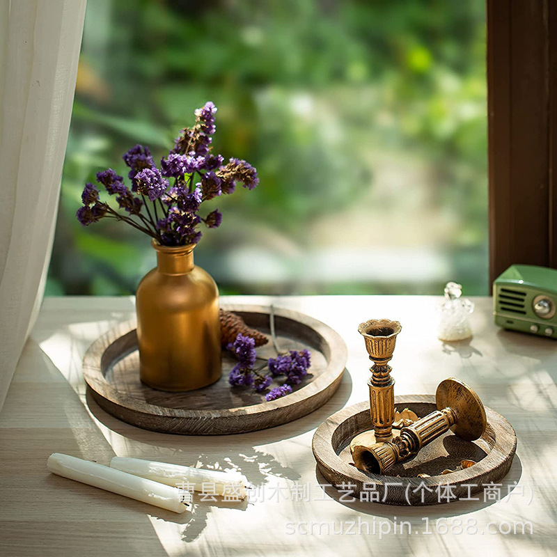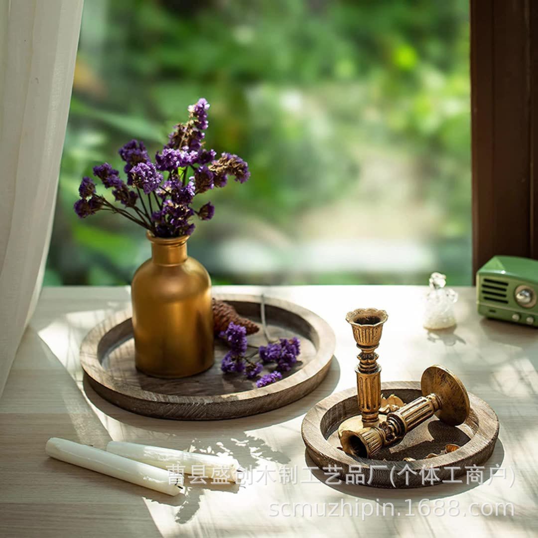 나무 트레이 꽃병 아로마테라피 수납 트레이 욕실 세면도구 정리 트레이 고급스러운 레트로 스타일스토어 가기