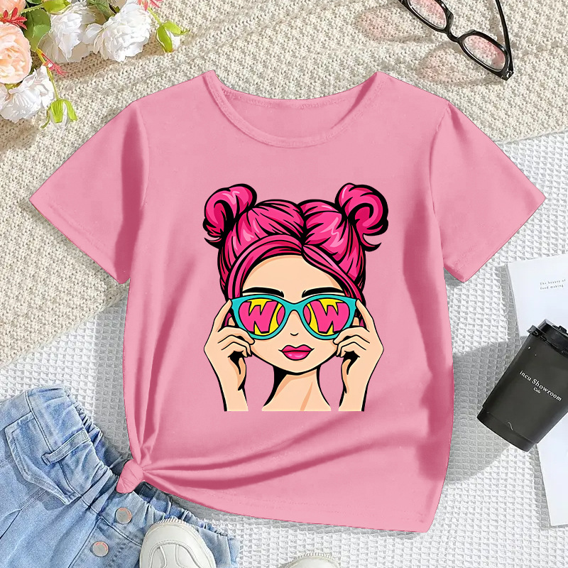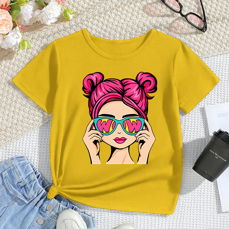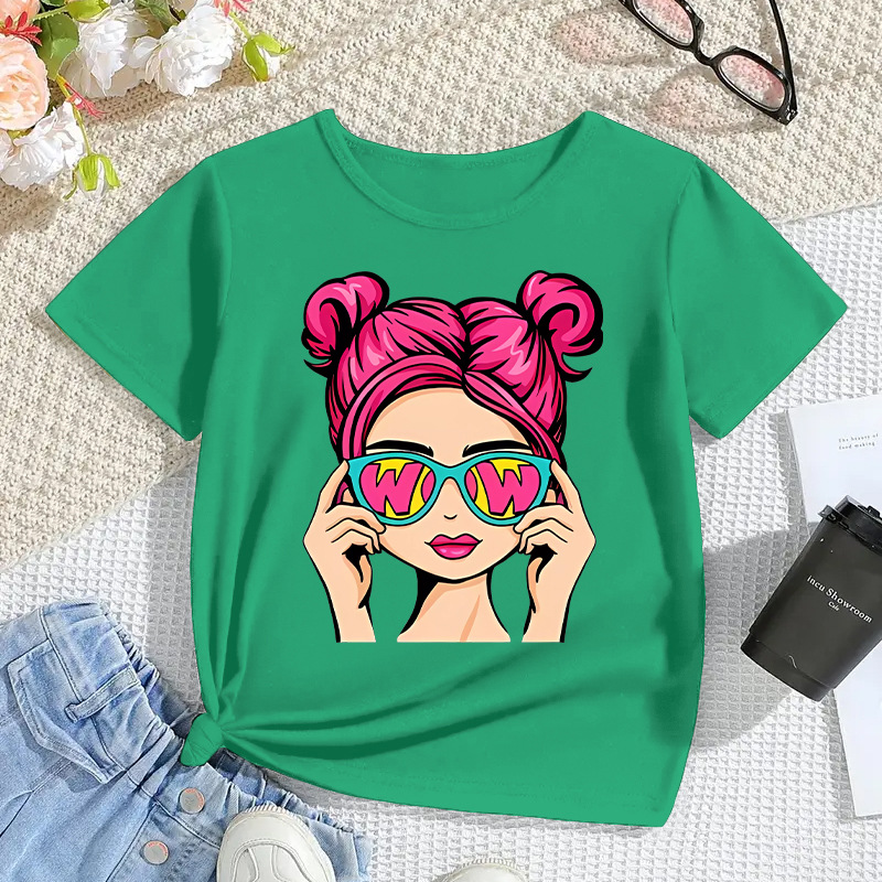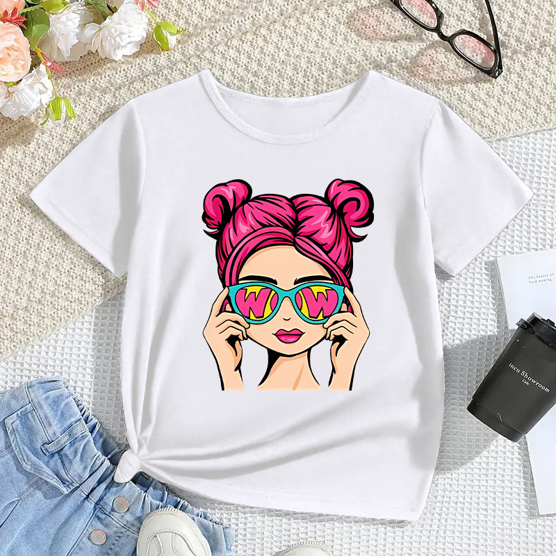 국경 간 아동복 소녀 모달 반팔 만화 인쇄 캐주얼 탑 대외 무역 어린이 티셔츠 2025 새로운 패션