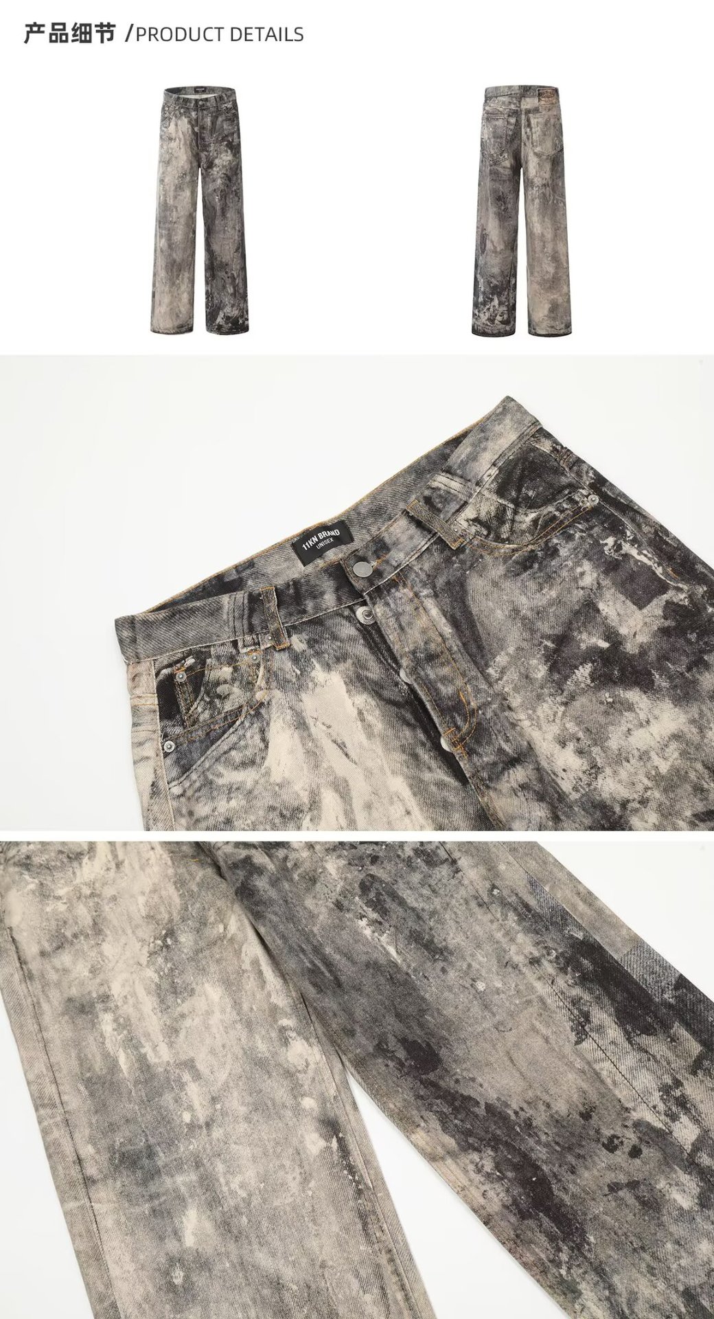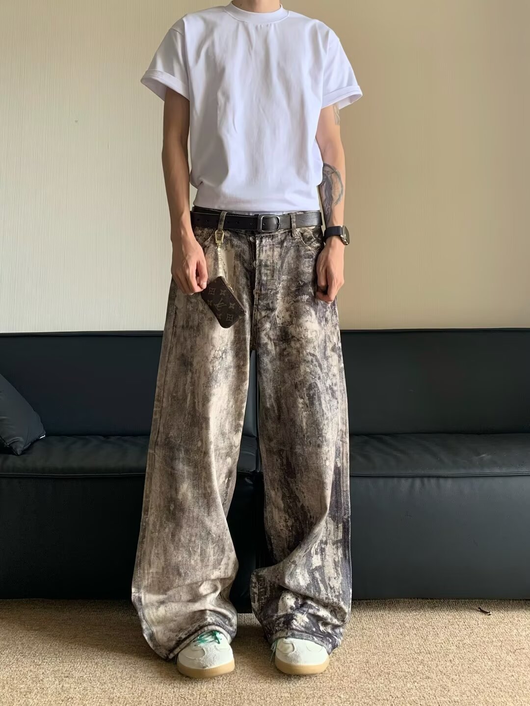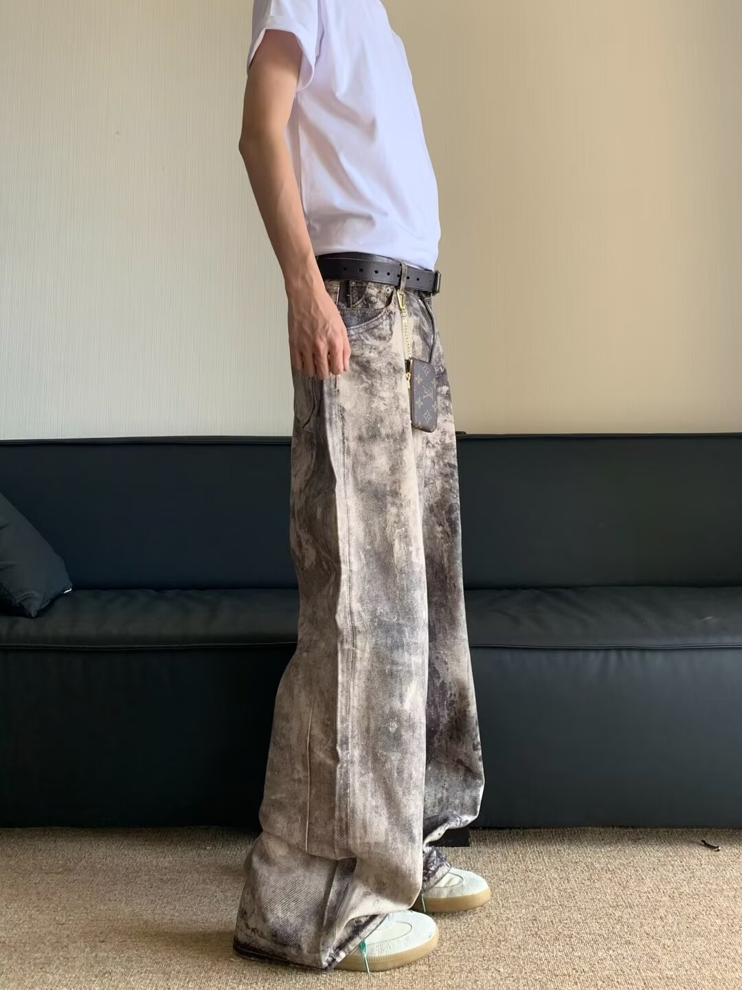하이 스트리트 트렌디 브랜드 위장 뱀 패턴 틈새 청바지 남자 봄과 여름 미국 트렌드 올 매치 느슨한 유행 바지