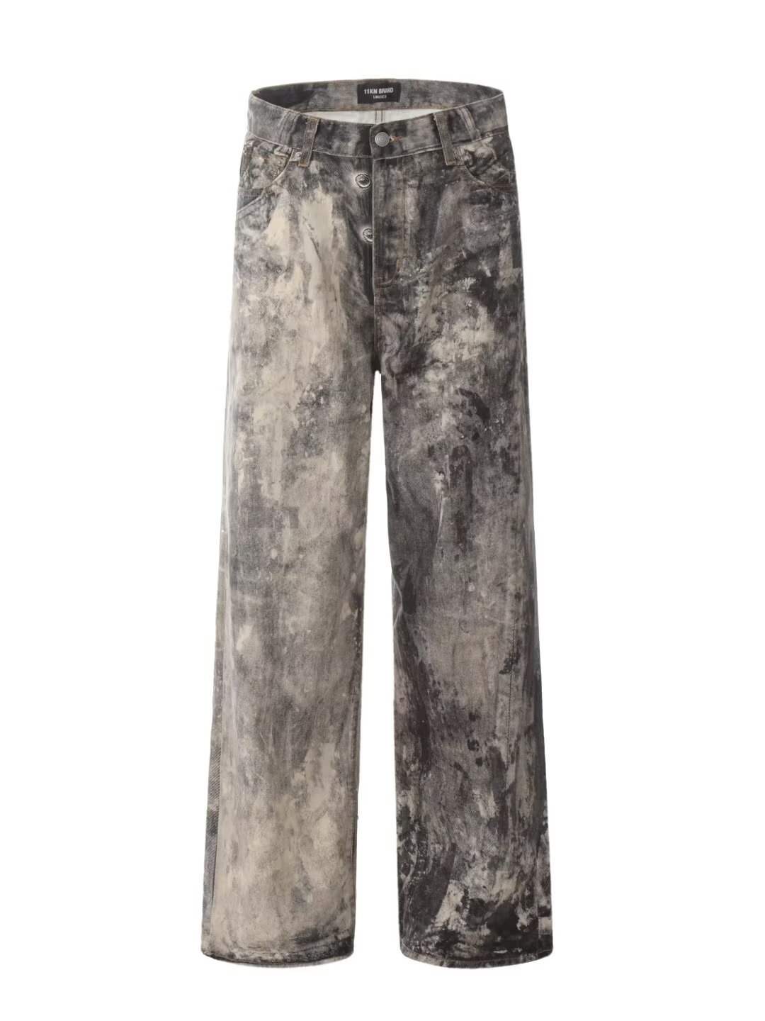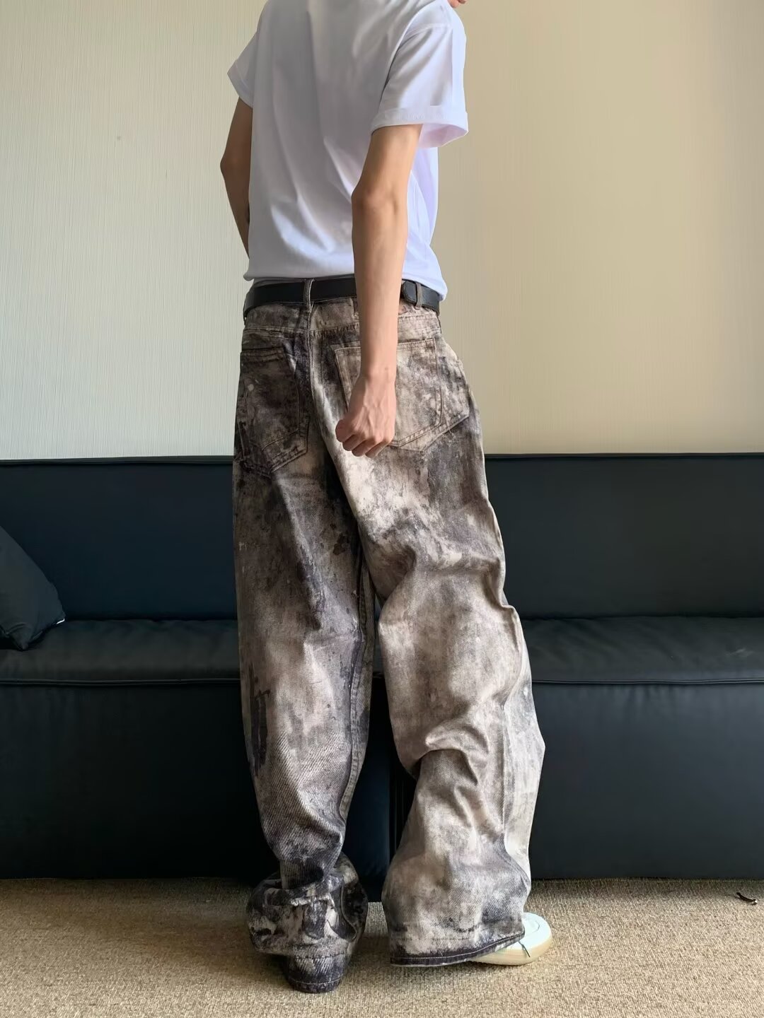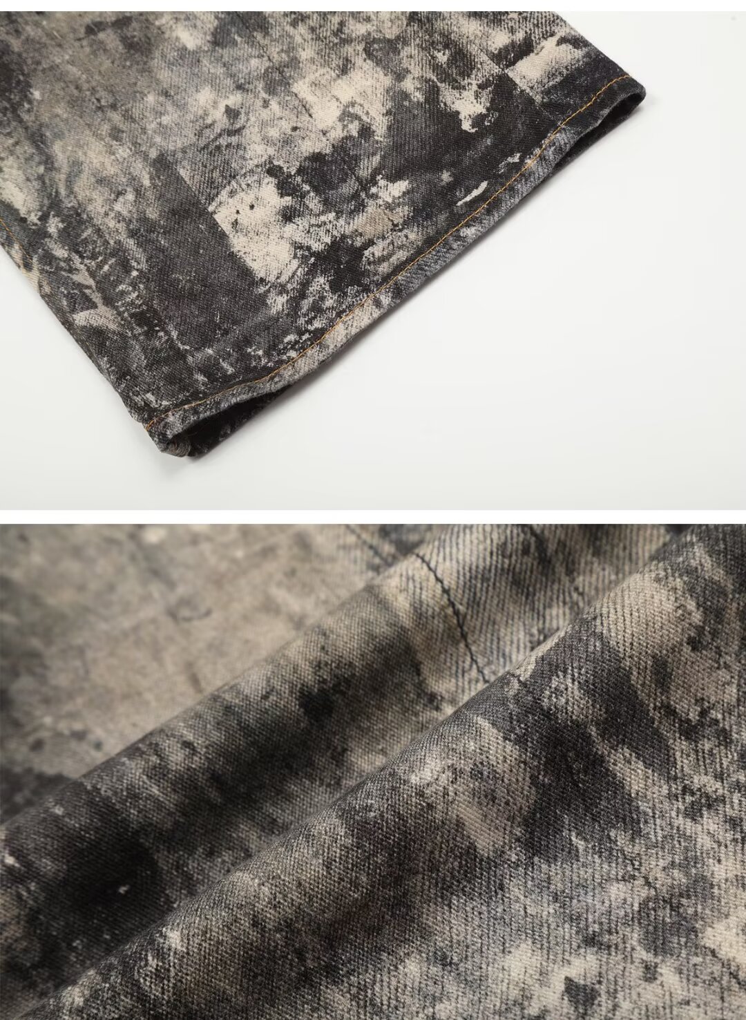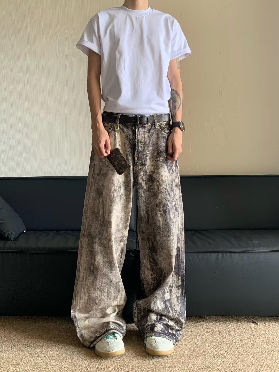 하이 스트리트 트렌디 브랜드 위장 뱀 패턴 틈새 청바지 남자 봄과 여름 미국 트렌드 올 매치 느슨한 유행 바지