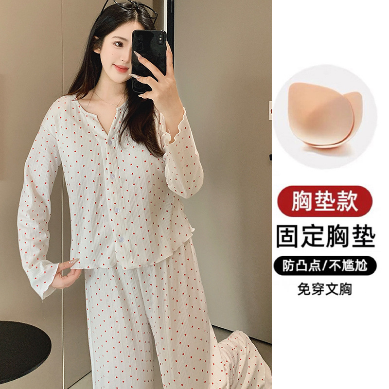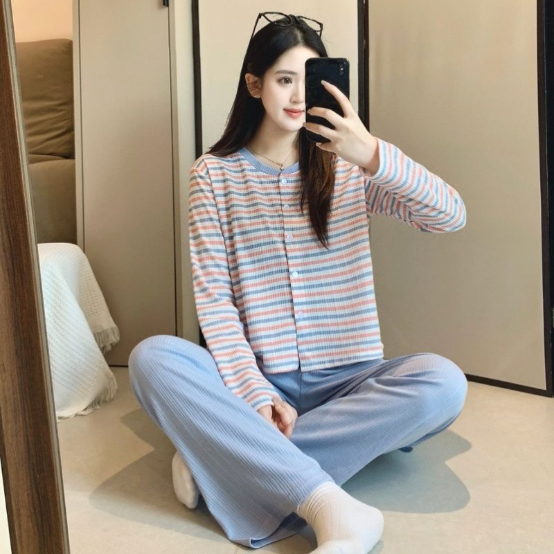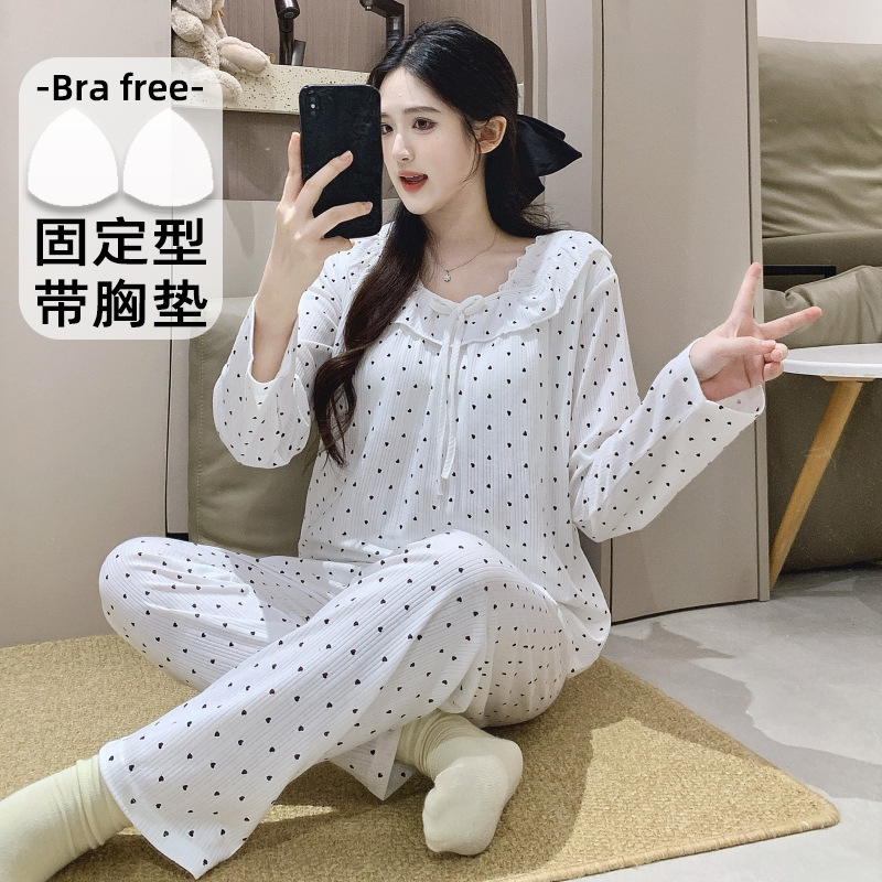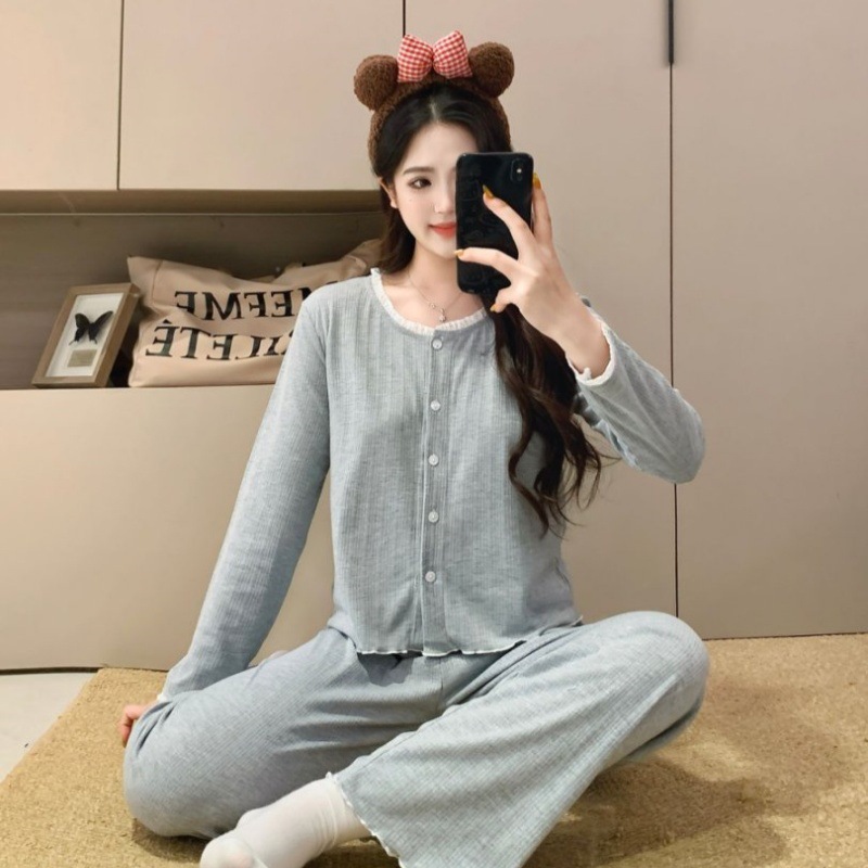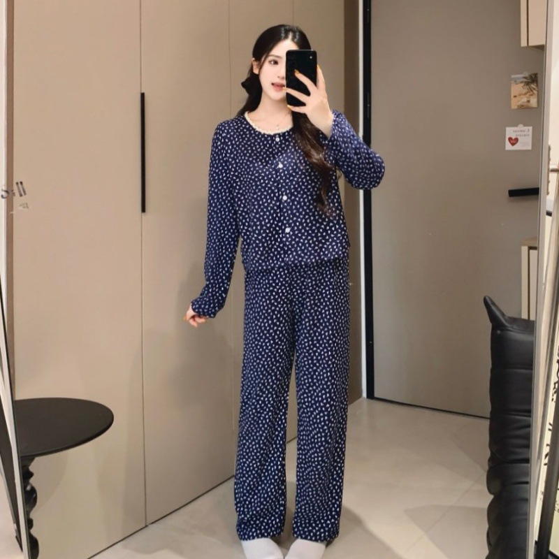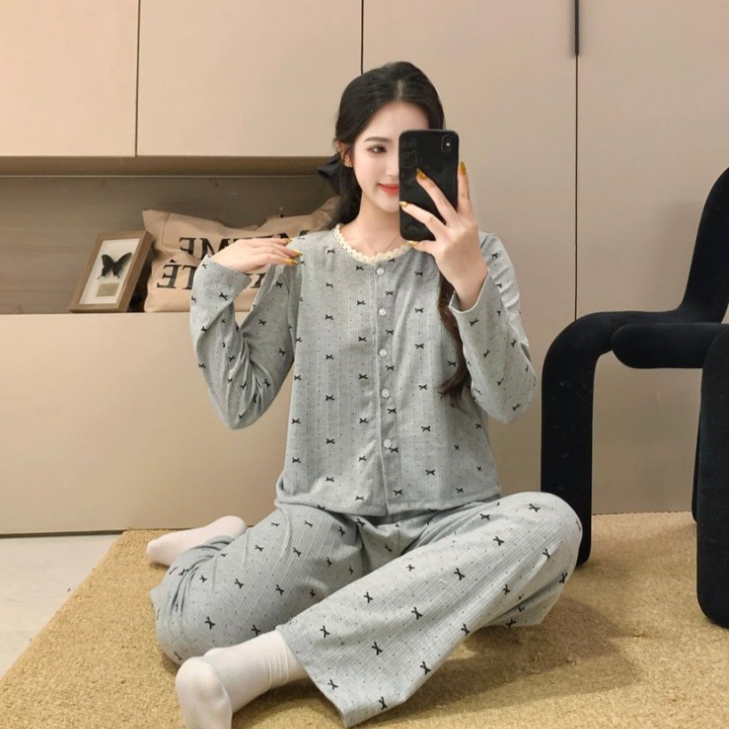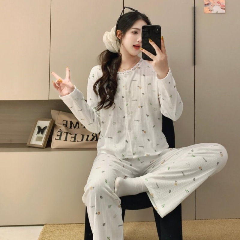 2026년 신상 여성용 잠옷 봄, 가을 6535 면 긴팔 한국 스타일 달콤한 인스타 스타일 홈웨어 세트 외부에서 착용 가능스토어 가기