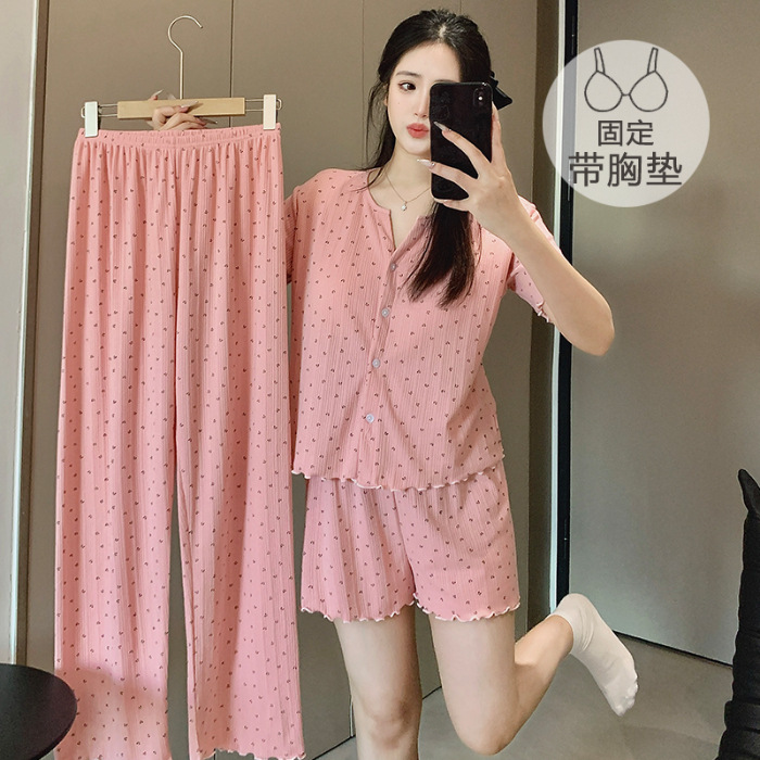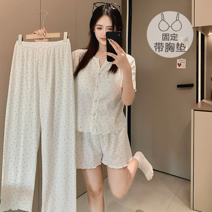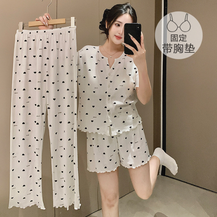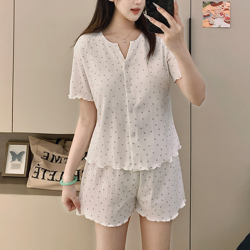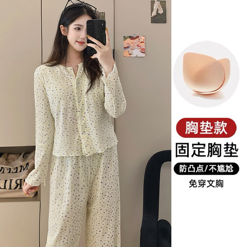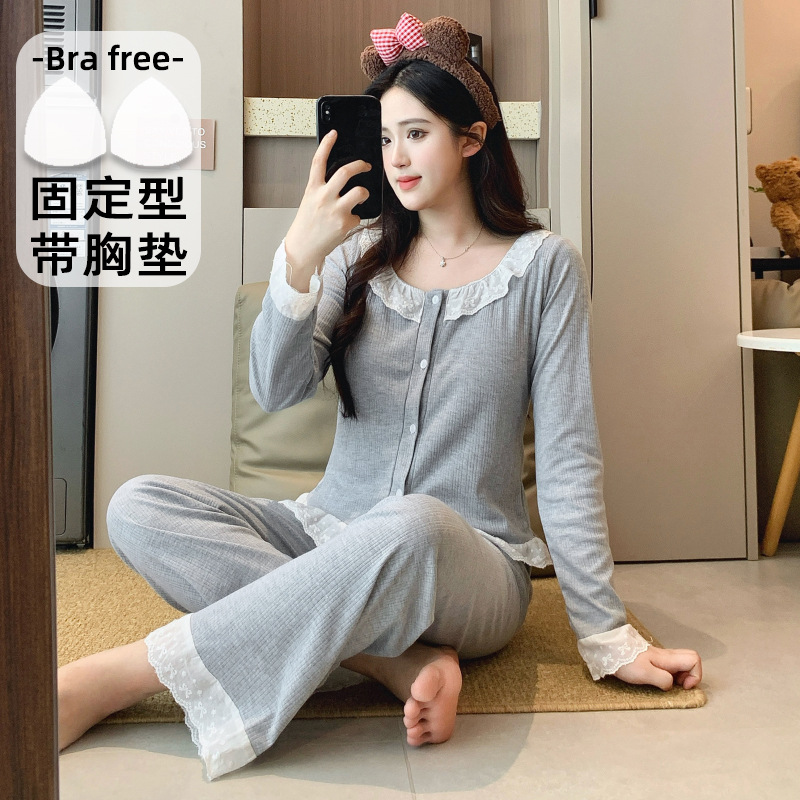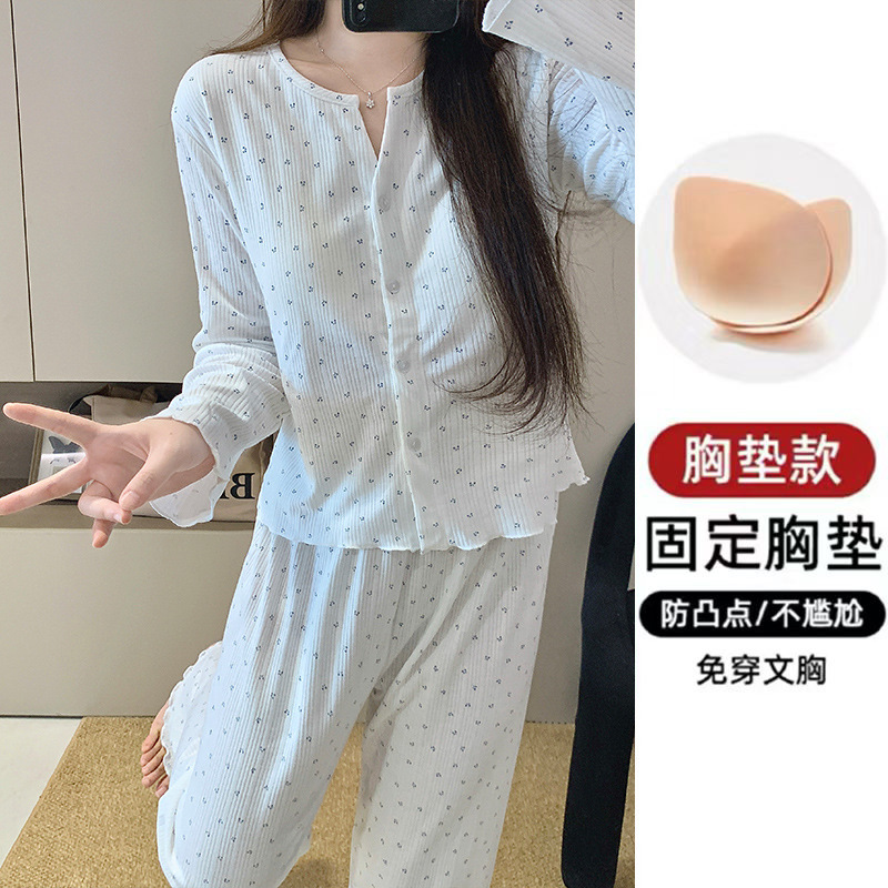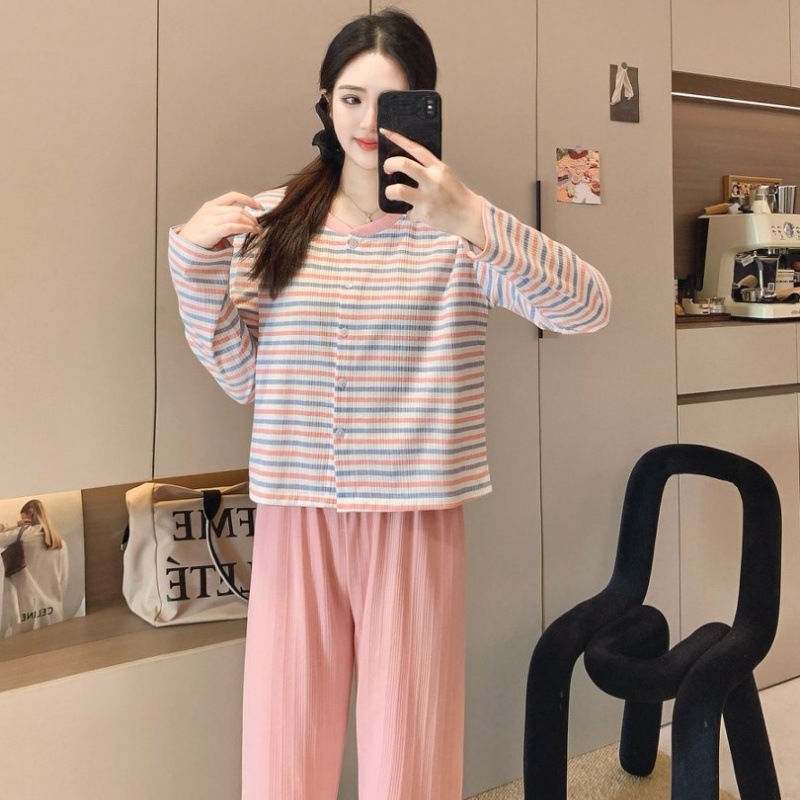 2026년 신상 여성용 잠옷 봄, 가을 6535 면 긴팔 한국 스타일 달콤한 인스타 스타일 홈웨어 세트 외부에서 착용 가능스토어 가기