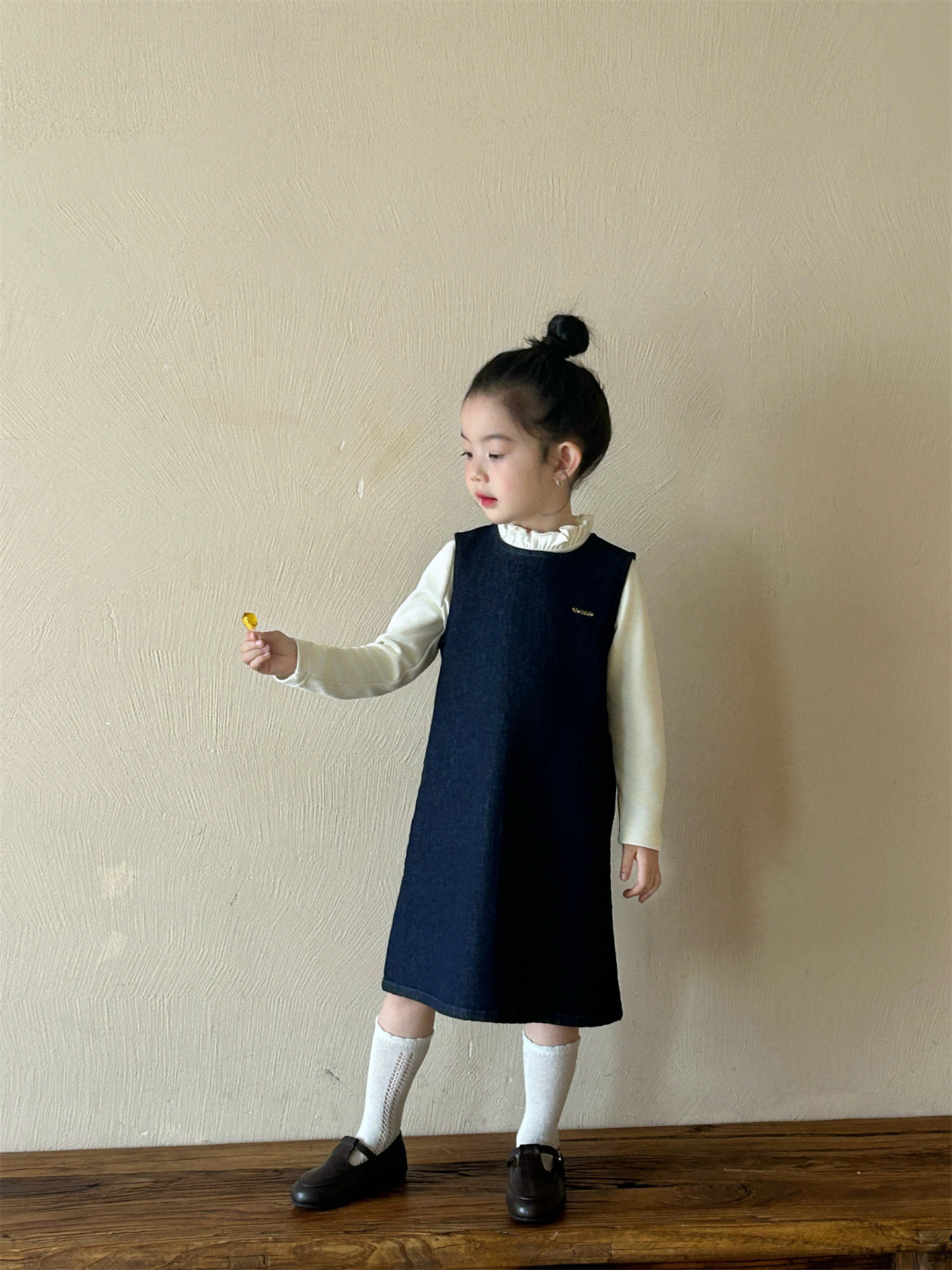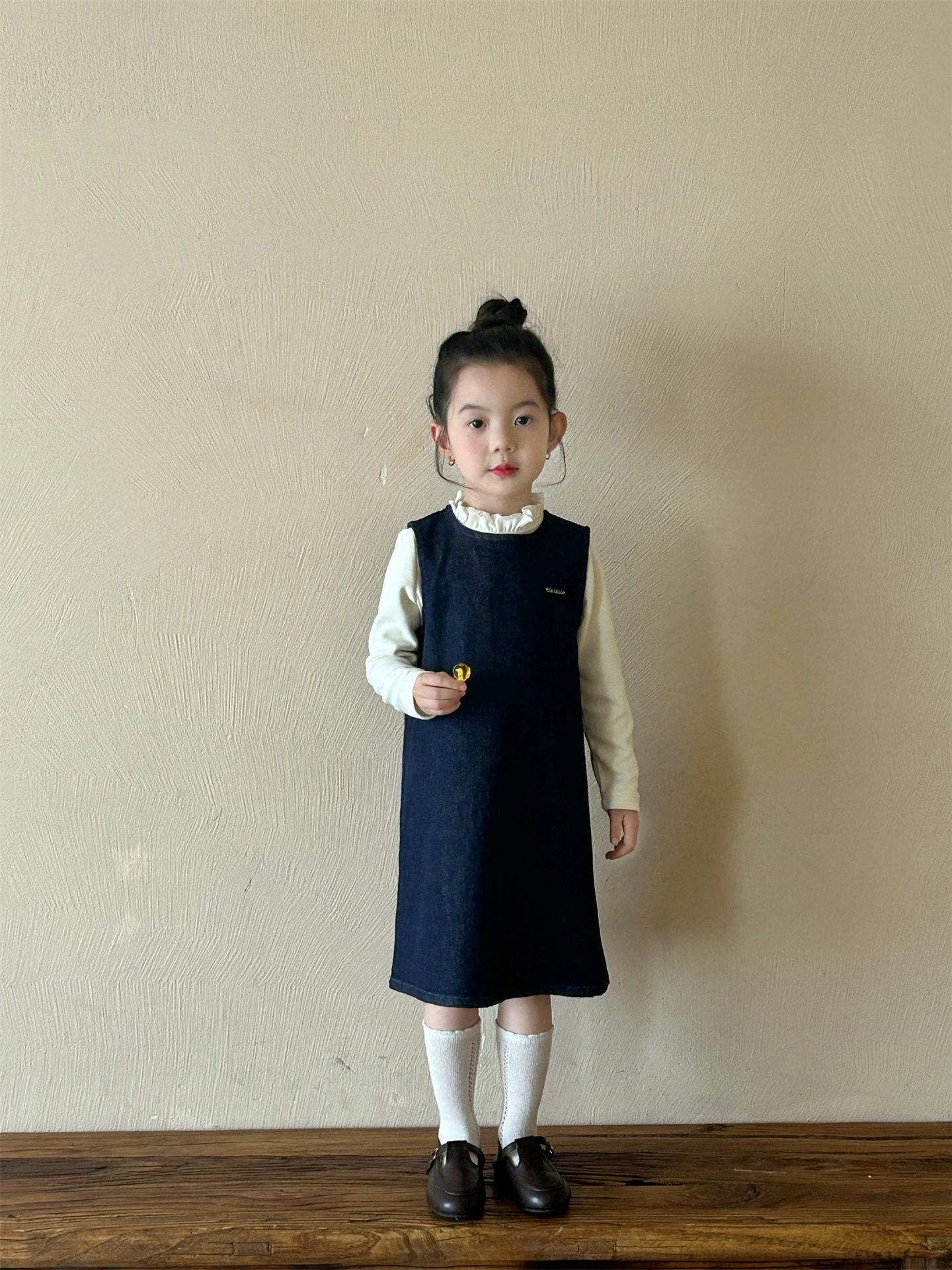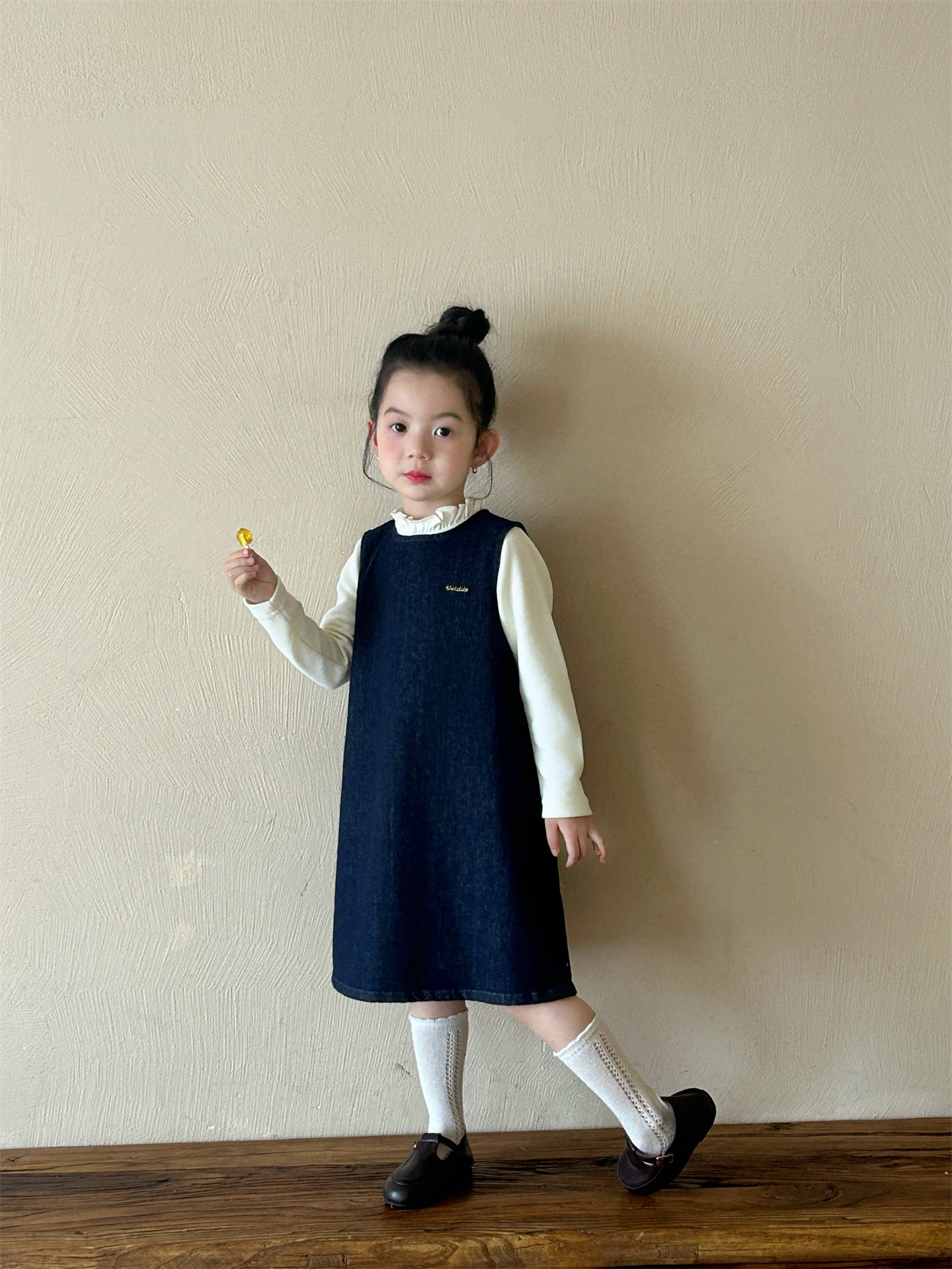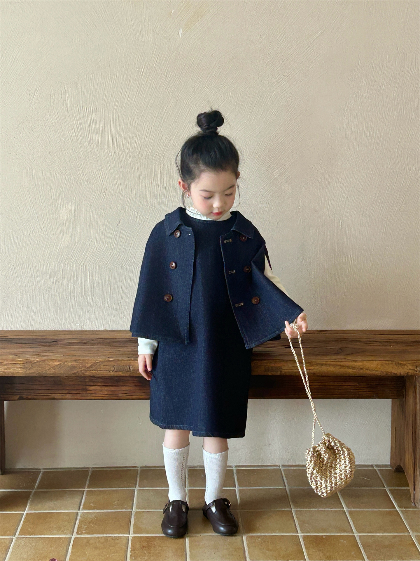 2025 봄 새 소녀 유행 데님 세트 어린이 서양식 케이프 바닥 셔츠 조끼 스커트 3 피스 세트스토어 가기