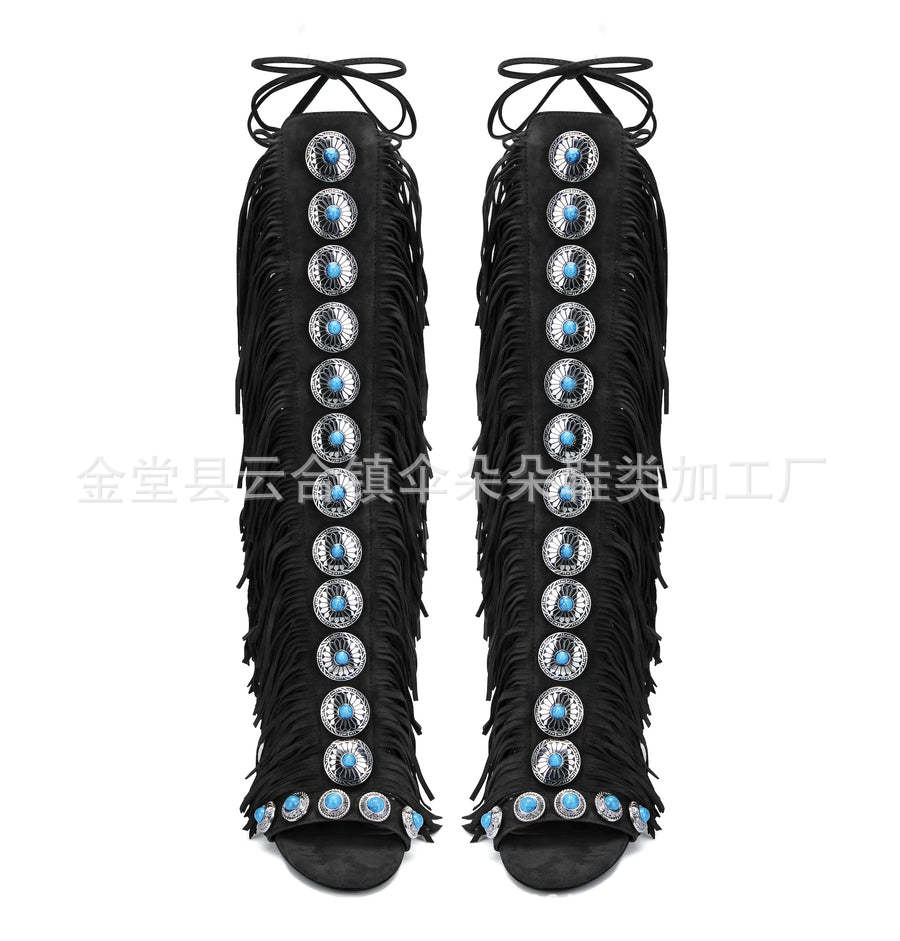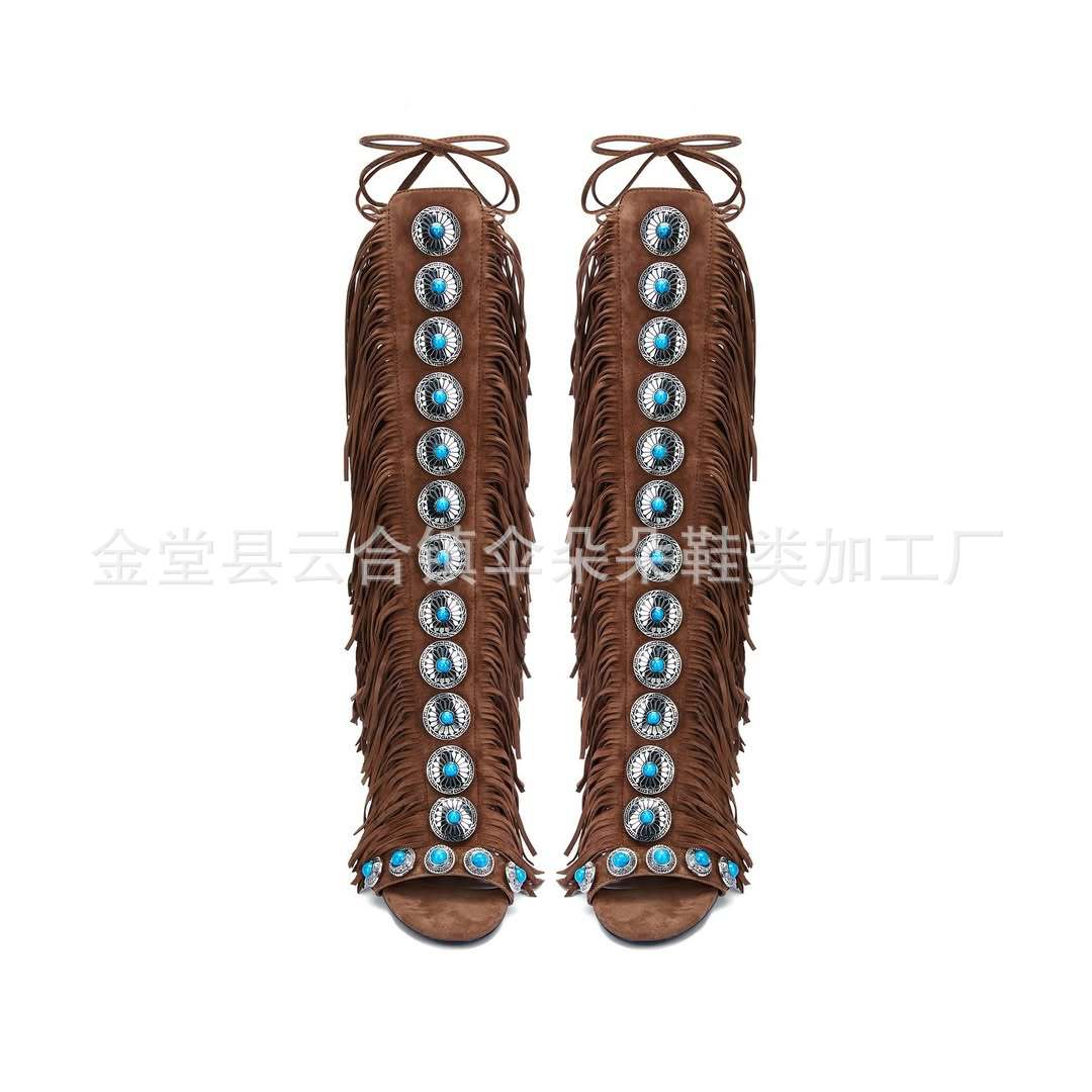 2025 새로운 스타일 흐름 빗 유럽 뷰티 여성 하이힐 샌들 스트랩 플러스 사이즈 여성 신발