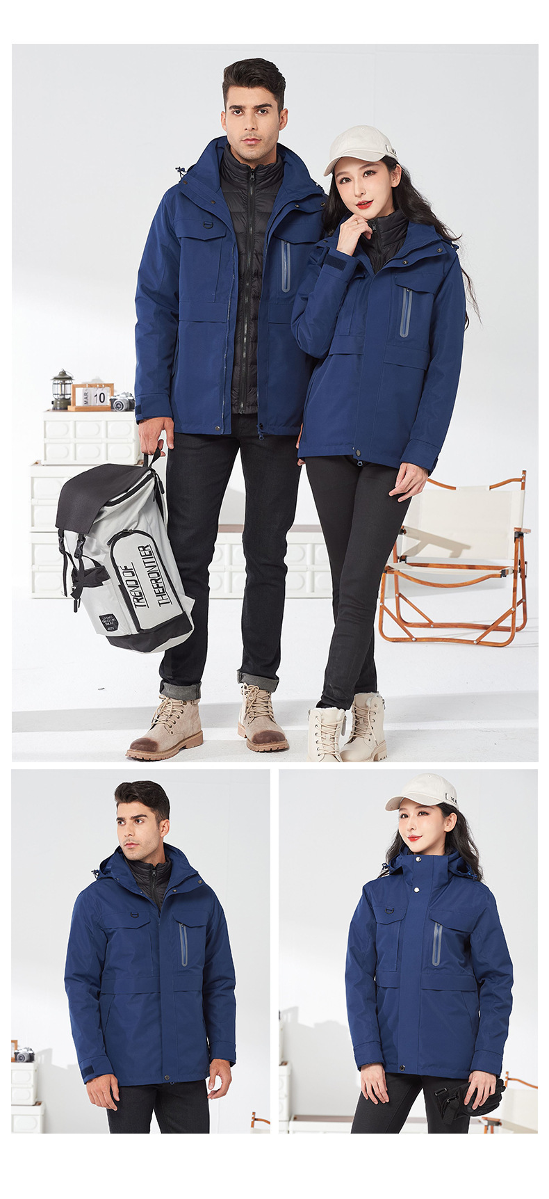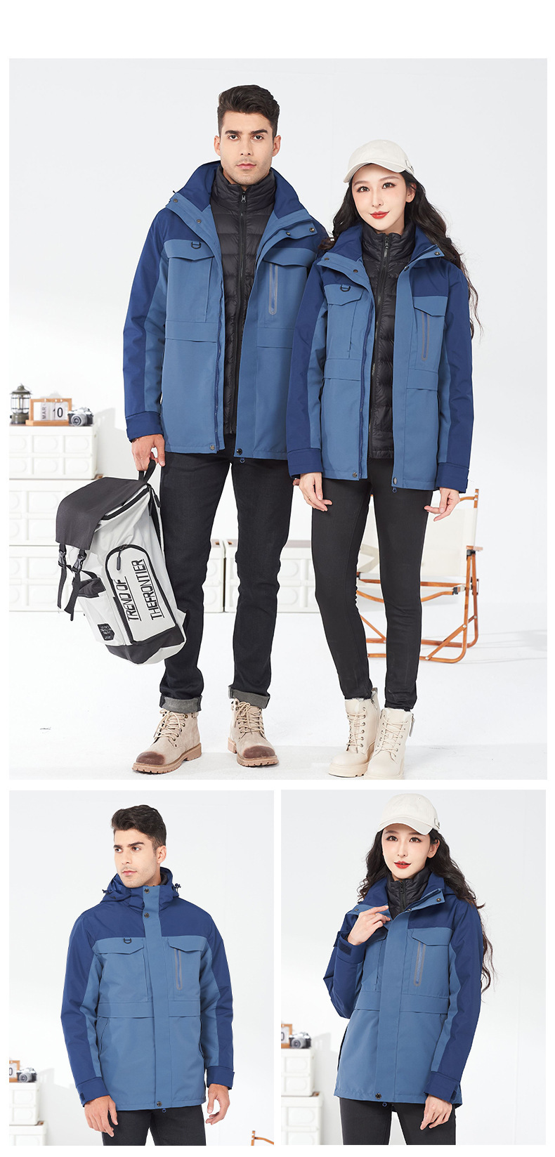 다운 재킷 3 대 1 남성과 여성의 가을과 겨울 따뜻한 코트 2 피스 탈착식 작업복 인쇄 로고스토어 가기