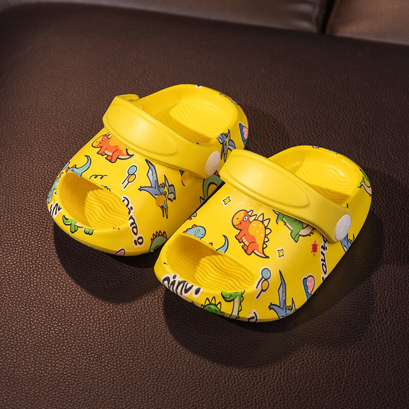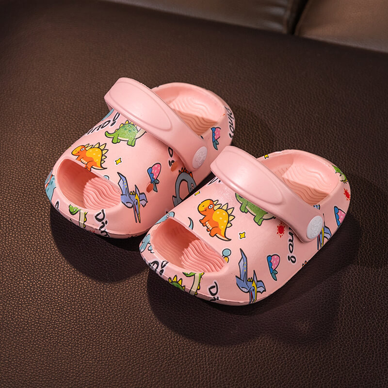 어린이 샌들 도매 새로운 만화 소년 소녀 아기 공룡 인쇄 미끄럼 방지 샌들 홀 신발 여름스토어 가기