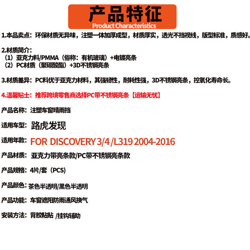 랜드 로버 디스커버리에 적용 가능한 3/4 맑은 비 보드 디스커버리 3/4 2004-2016윈도우 바이저