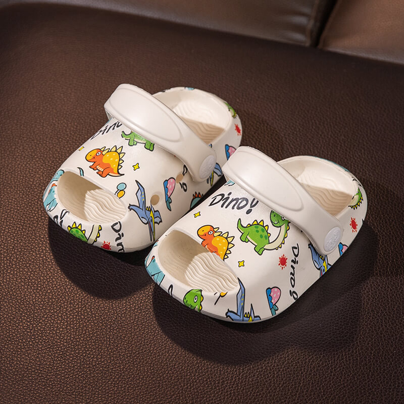 어린이 샌들 도매 새로운 만화 소년 소녀 아기 공룡 인쇄 미끄럼 방지 샌들 홀 신발 여름스토어 가기