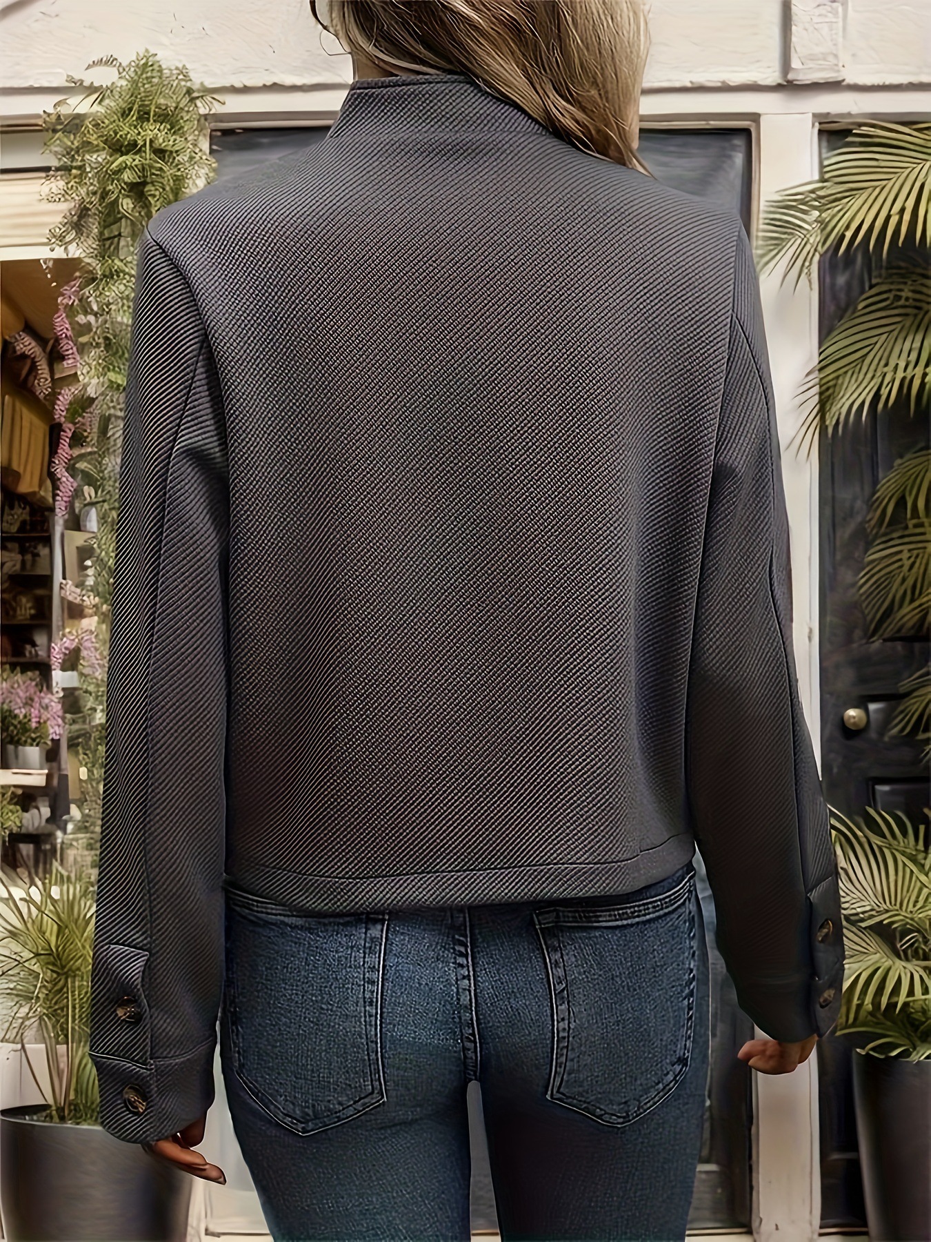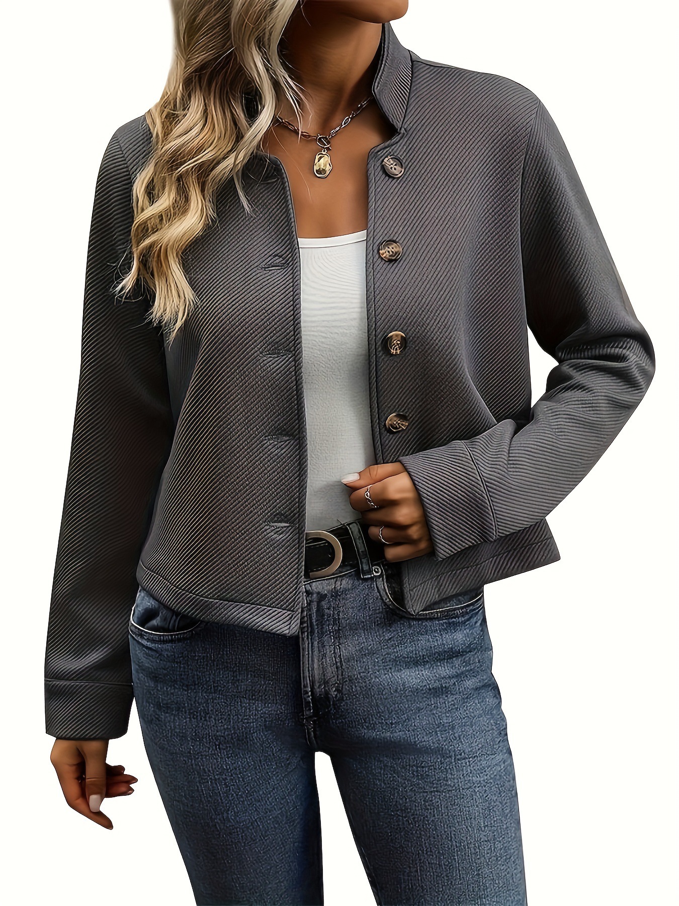 아마존. 스탠딩 스테이션 2024 새로운 유럽과 미국의 가을 여성의 국경 간 질감 긴 소매 단색 재킷 여성스토어 가기