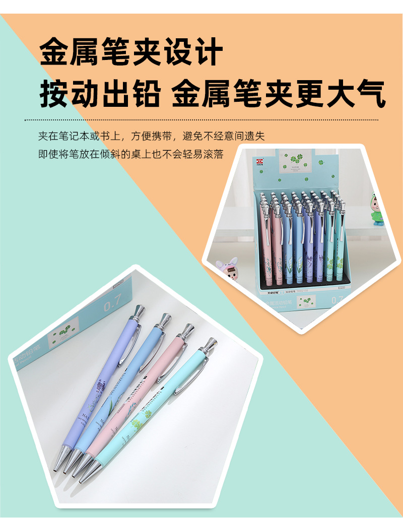 신형 Tianzhuo 2150 금속 자동 연필 초등학생용 지울 수 있는 활동형 펜 사무용 부드러운 필기 도구스토어 가기