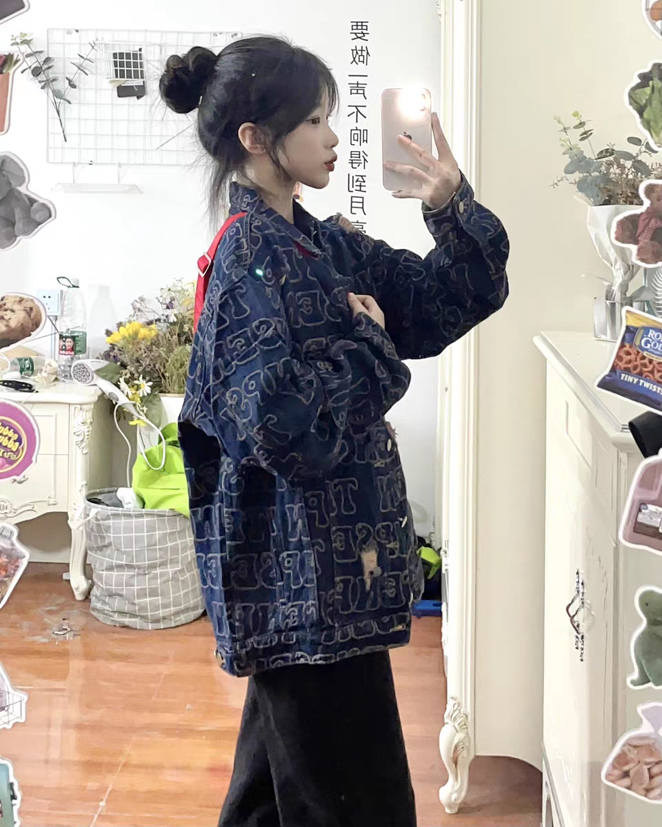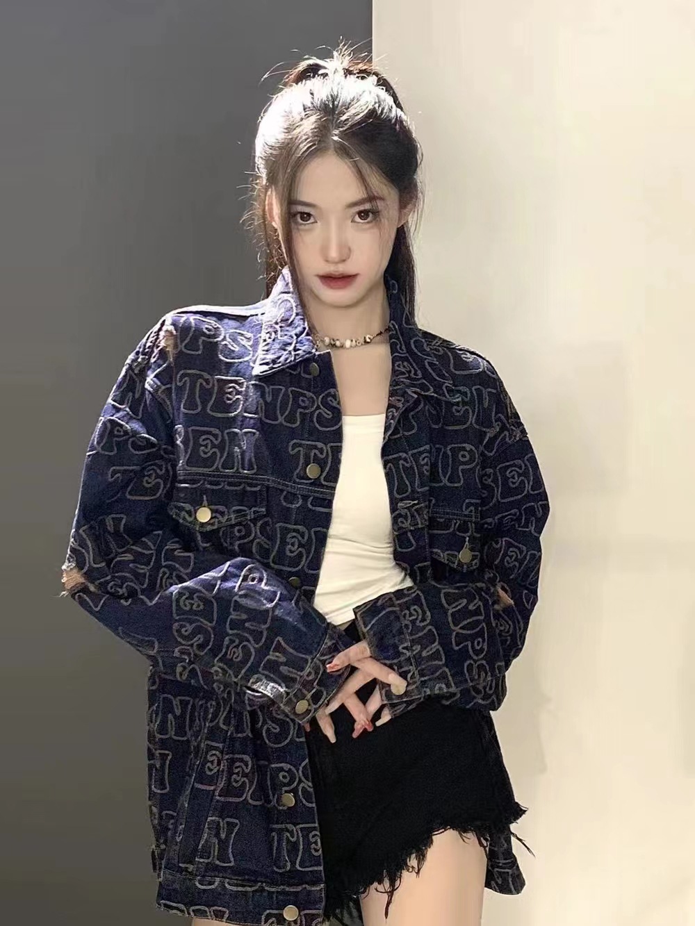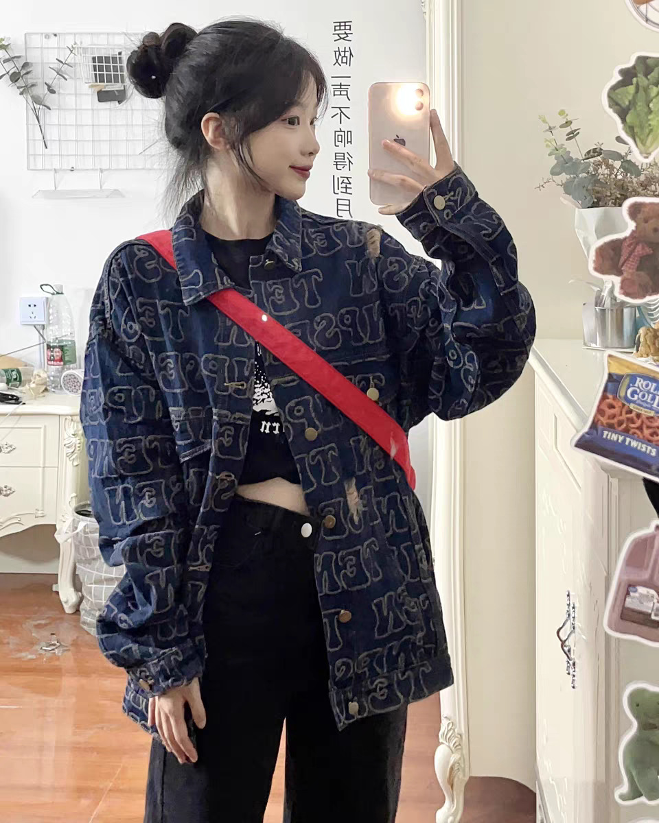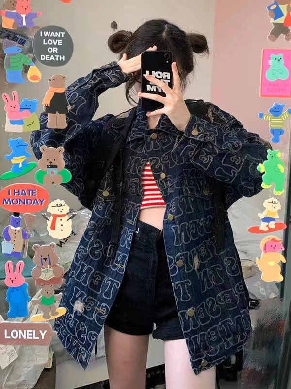 2025 봄과 가을 새로운 한국 스타일 디자인 센스 틈새 재킷 편지 데님 재킷 재킷 여성 패션스토어 가기