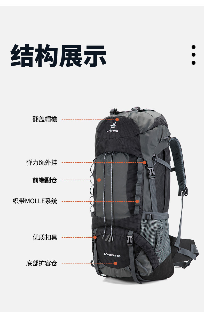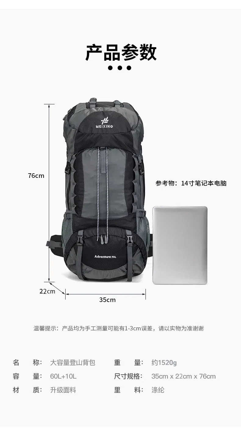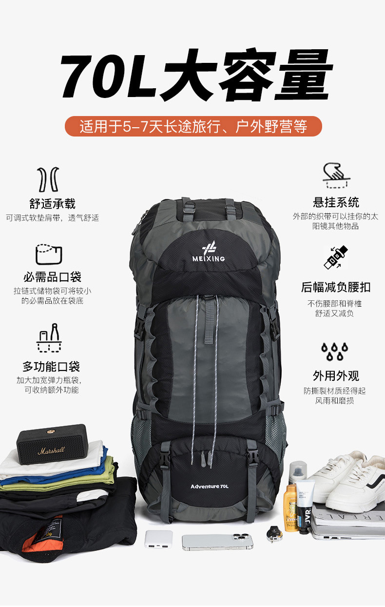 Meixing 국경 대외 무역 등산 가방 야외 캠핑 배낭 대용량 캐주얼 패션 남성과 여성 배낭 70L