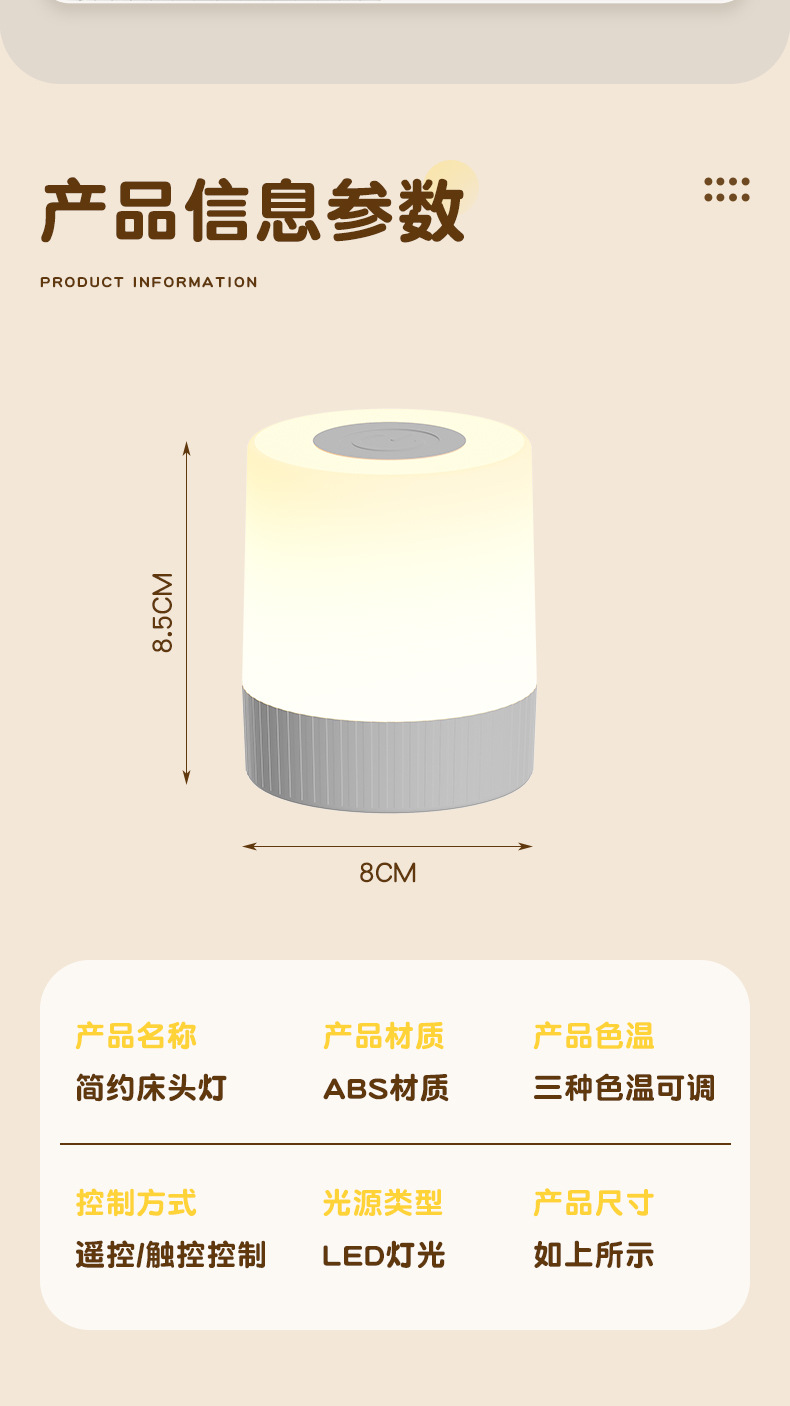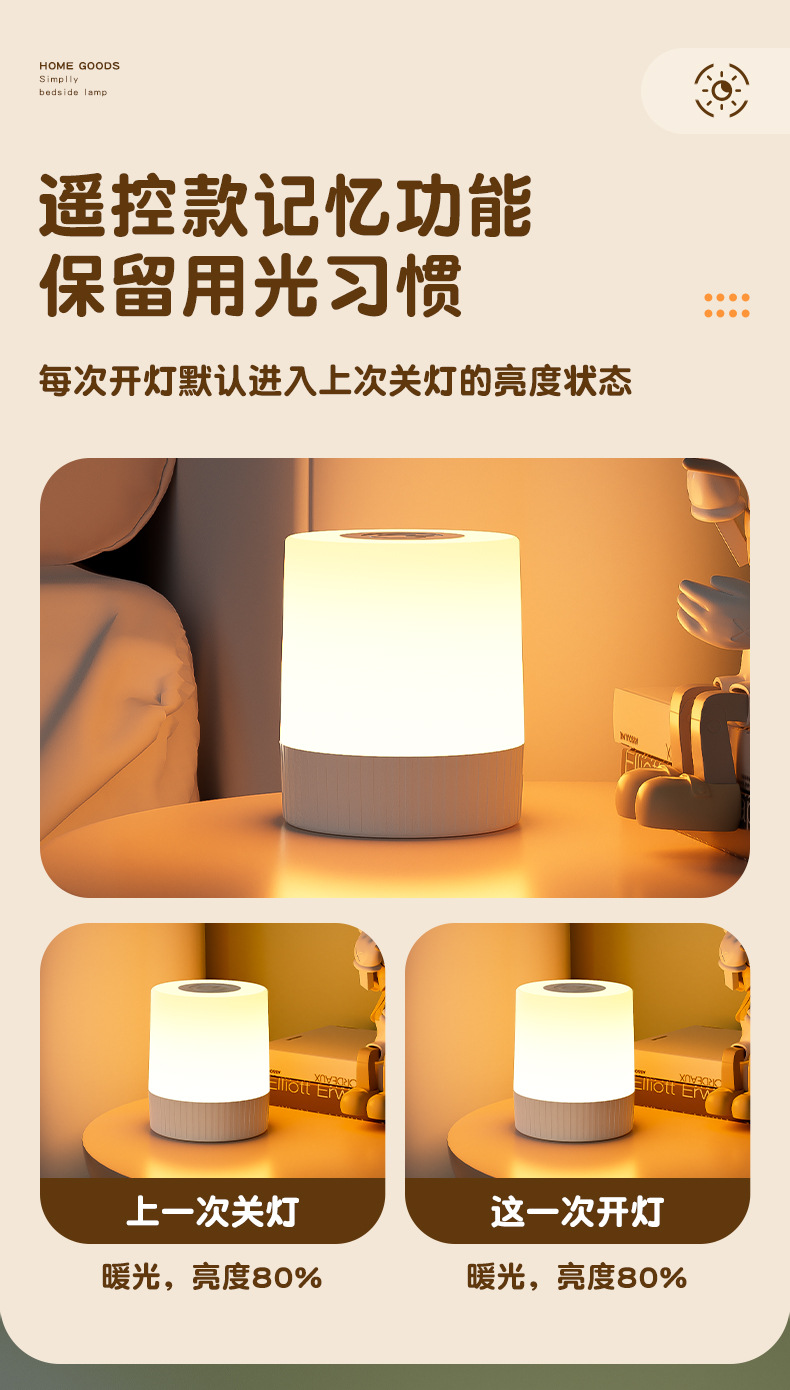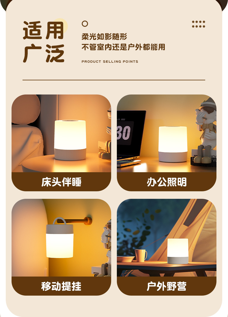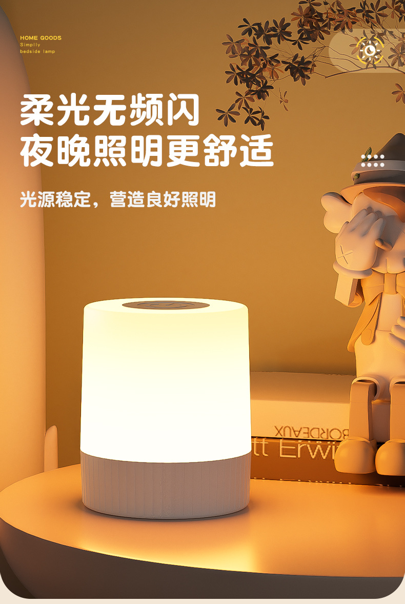 침실 터치 침대 옆 램프 비상 캠핑 램프 편리한 3 기어 디밍 야간 밝기 충전 대기 램프스토어 가기