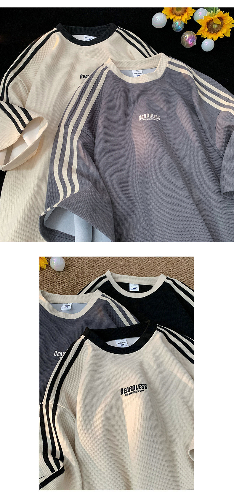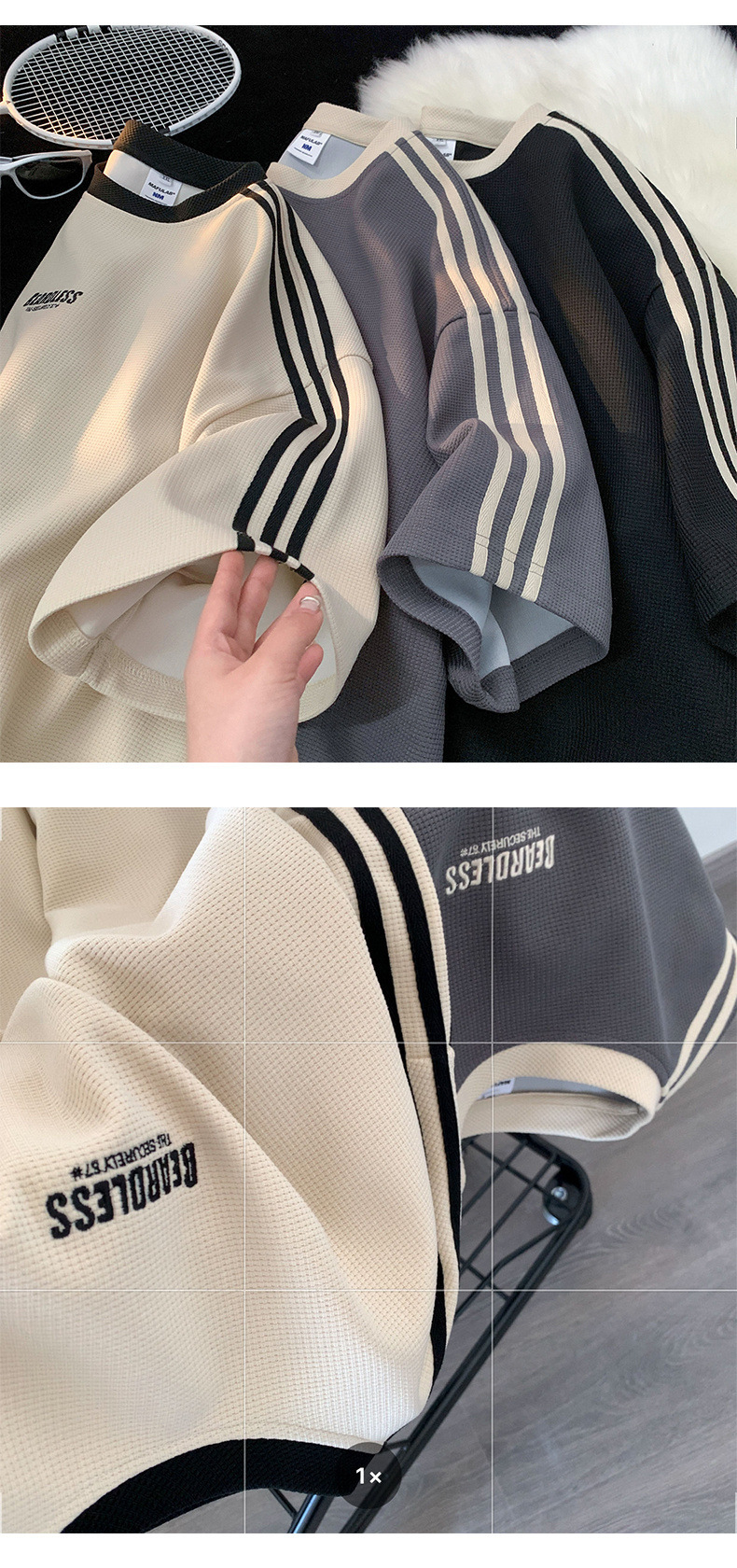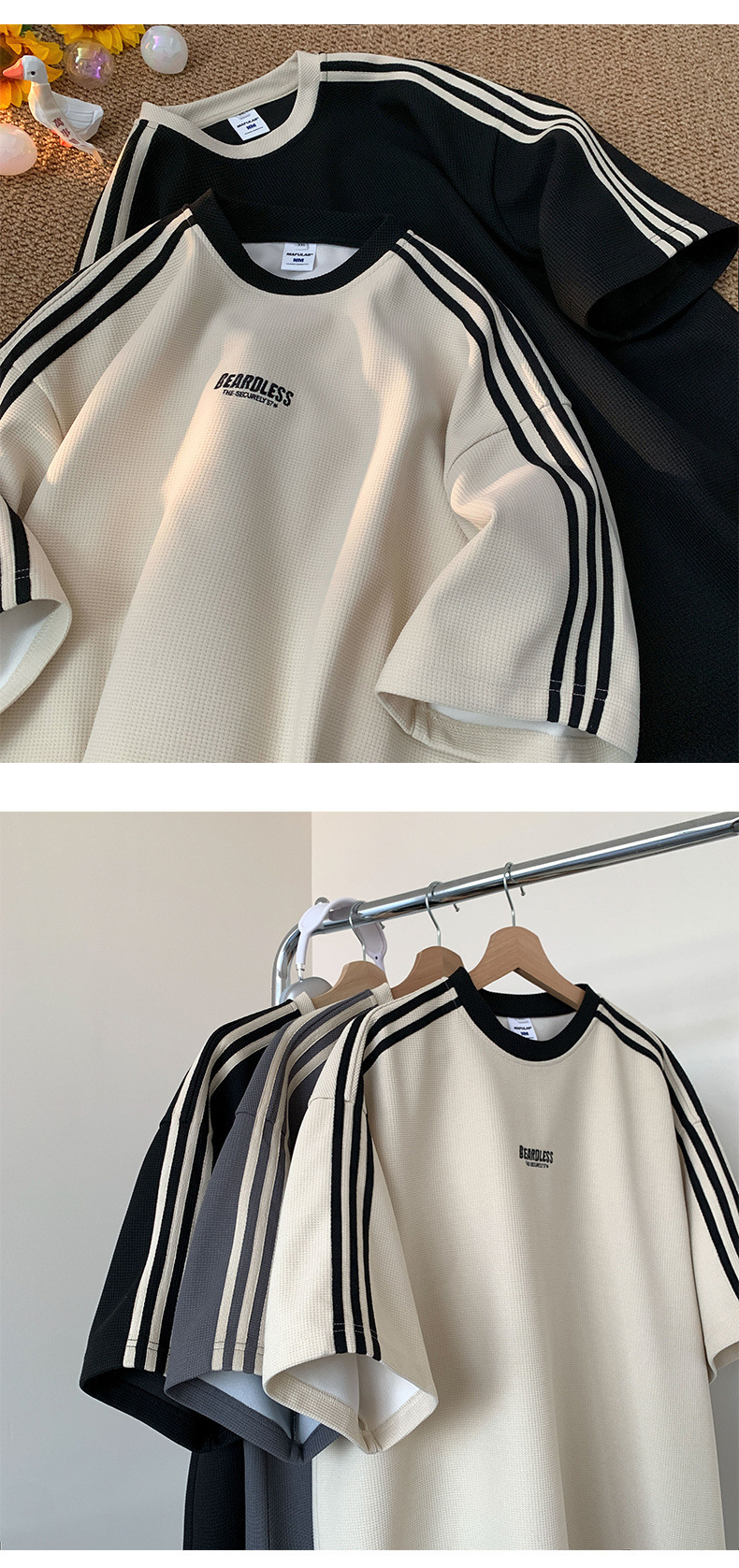 도매 와플 티셔츠 남성 여름 새로운 미국 패션 브랜드 반팔 티셔츠 루즈 캐주얼 커플 반팔 탑