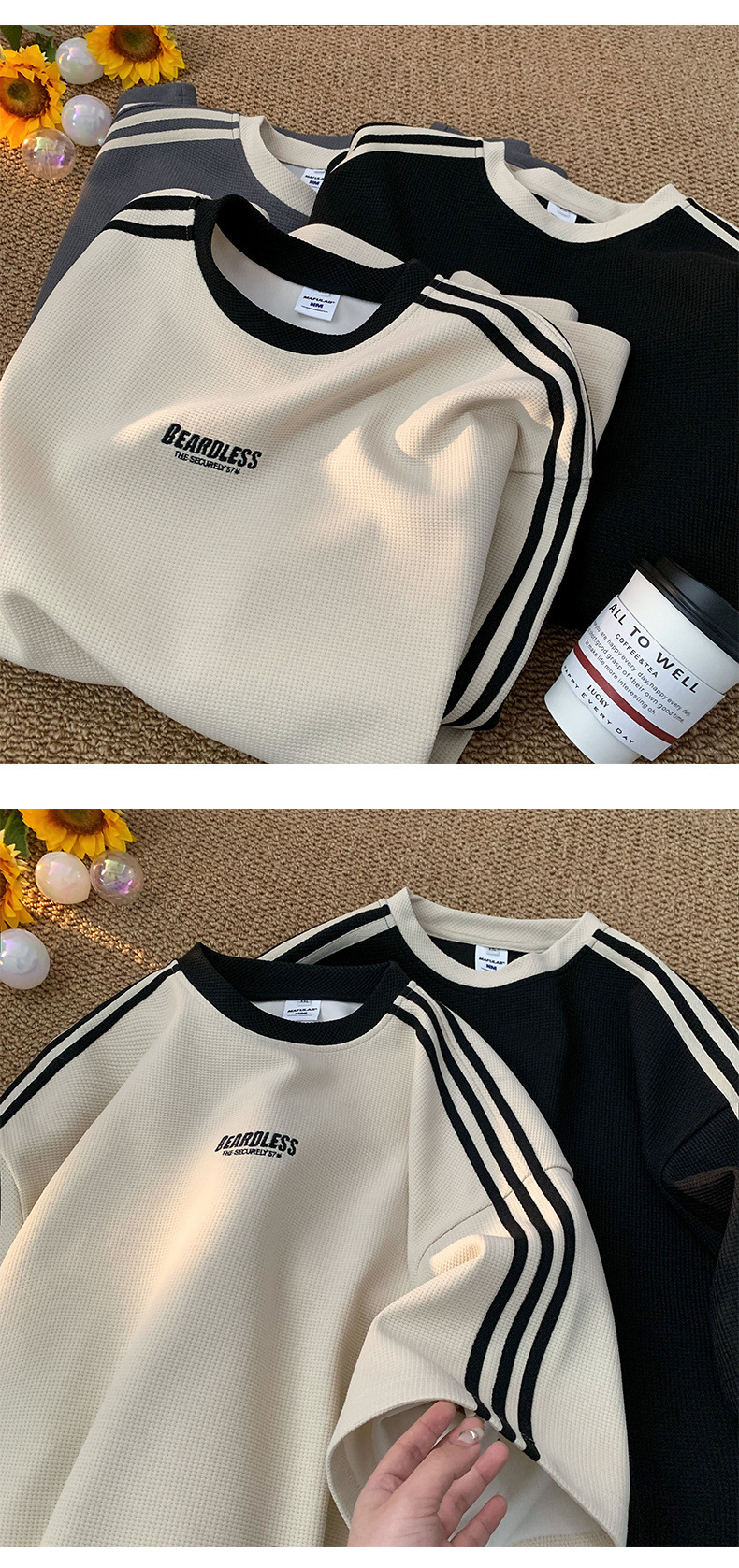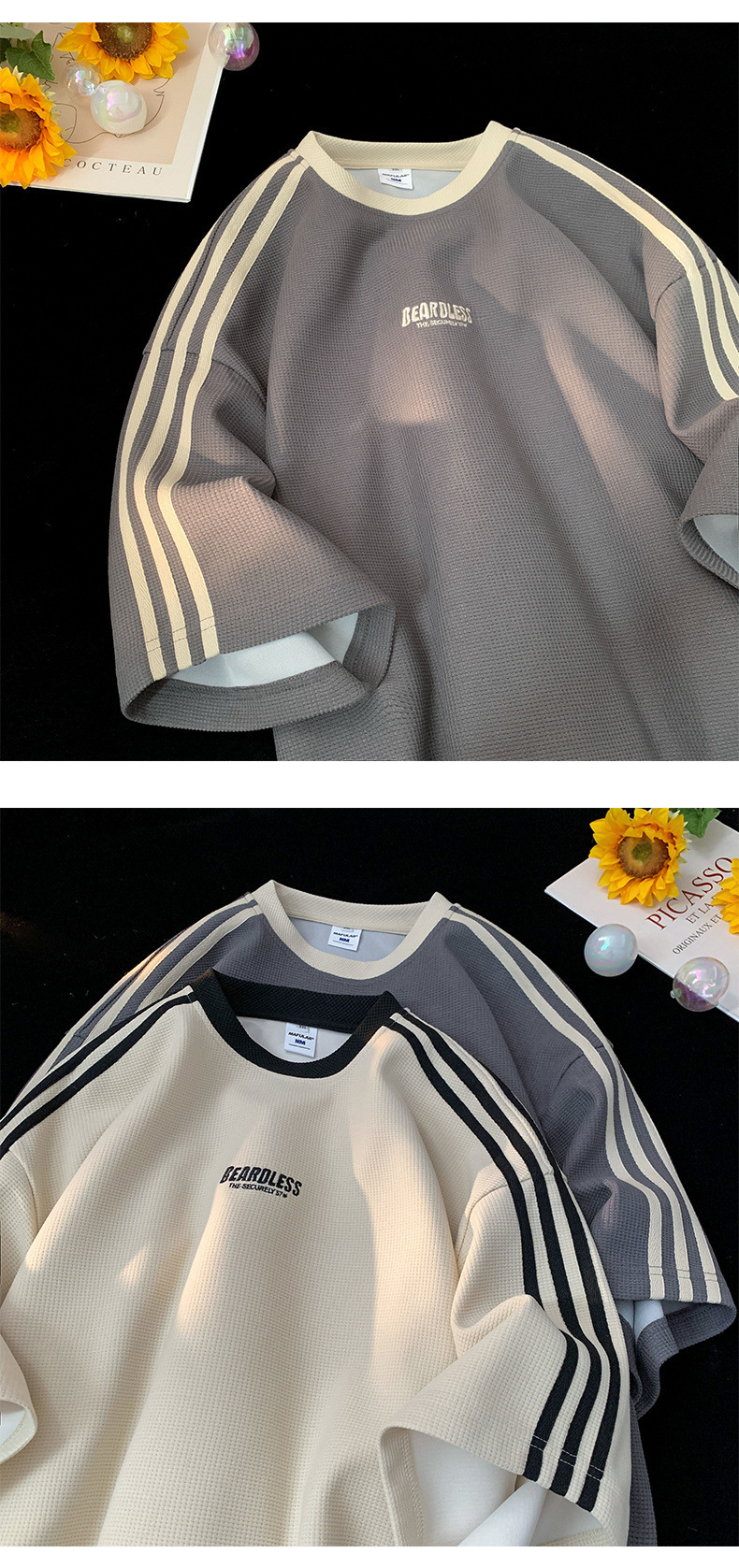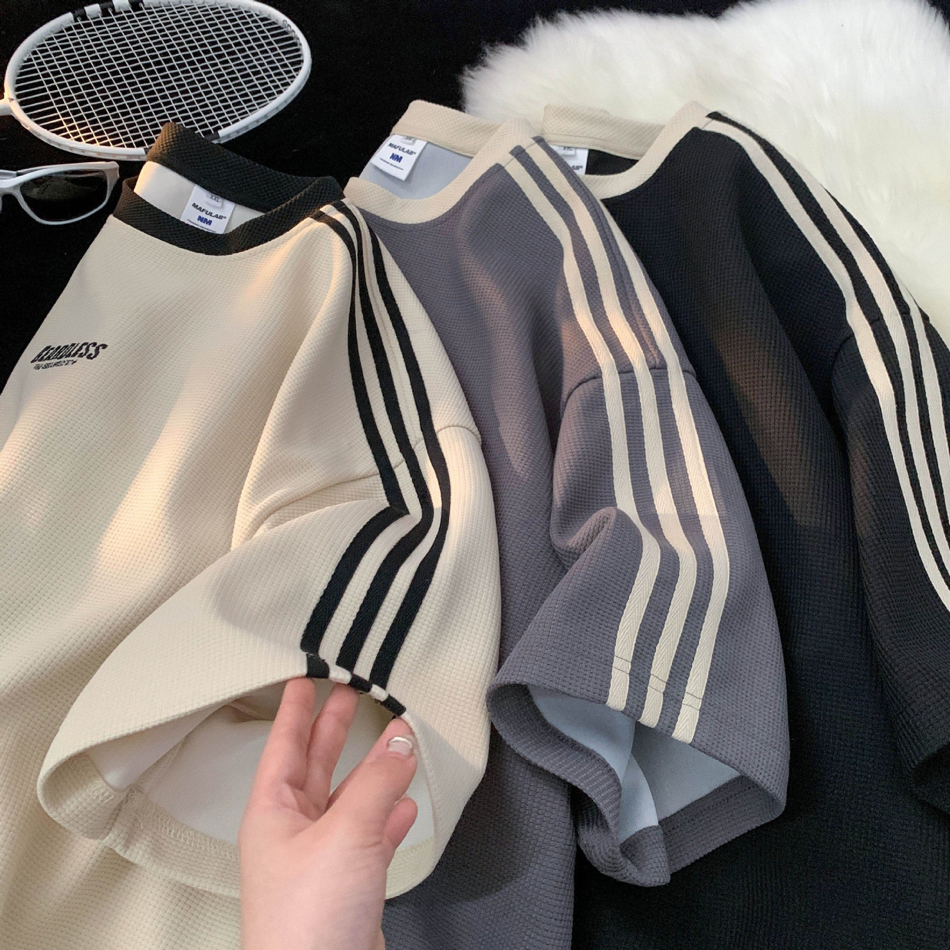 도매 와플 티셔츠 남성 여름 새로운 미국 패션 브랜드 반팔 티셔츠 루즈 캐주얼 커플 반팔 탑