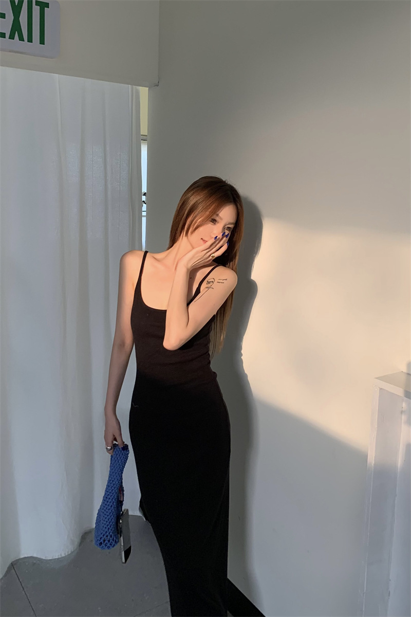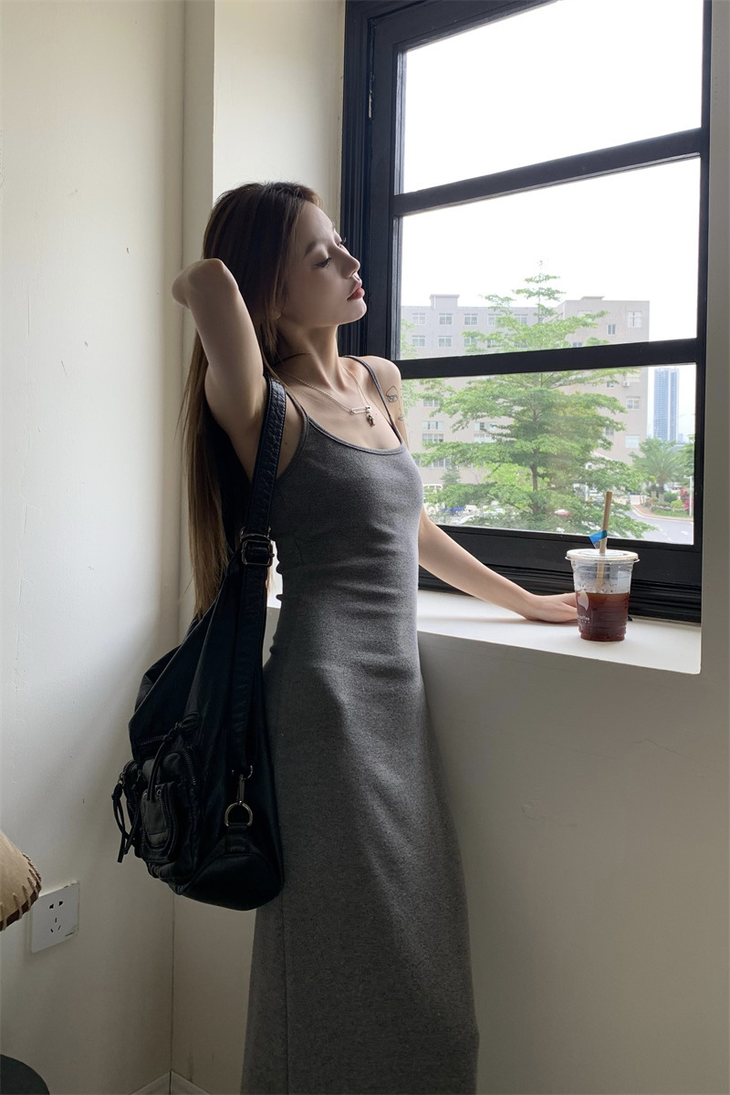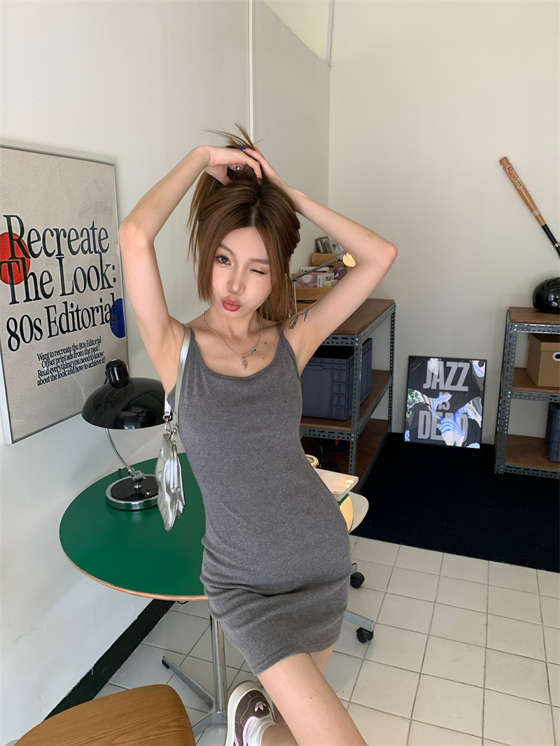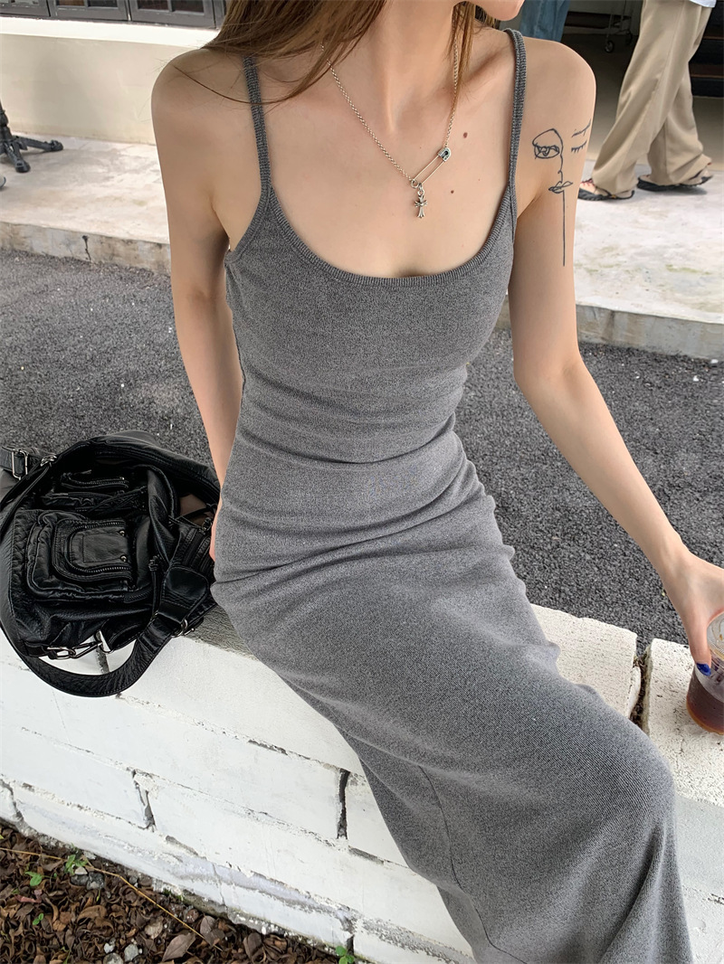 Amita 니트 슬링 원피스 여성 핫 걸 섹시 힙합 스커트 여성을위한 높은 수준의 우아한 타이트 허리 슬리밍 스커트