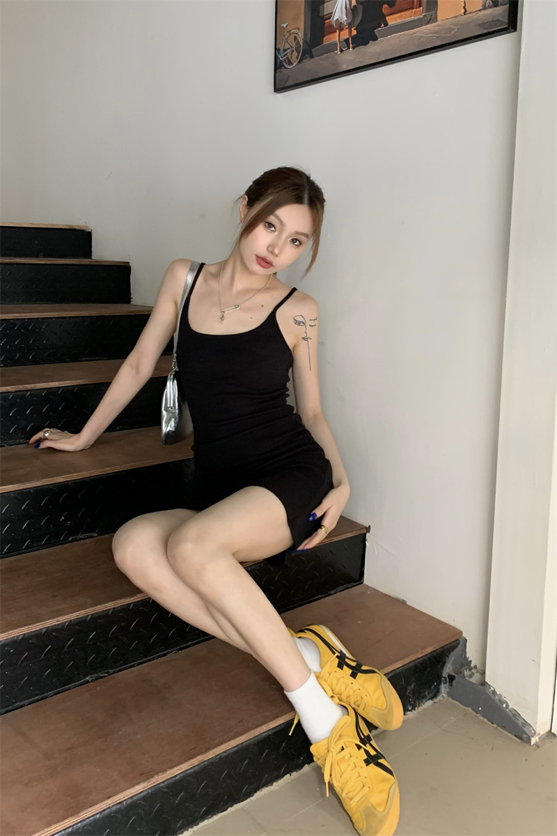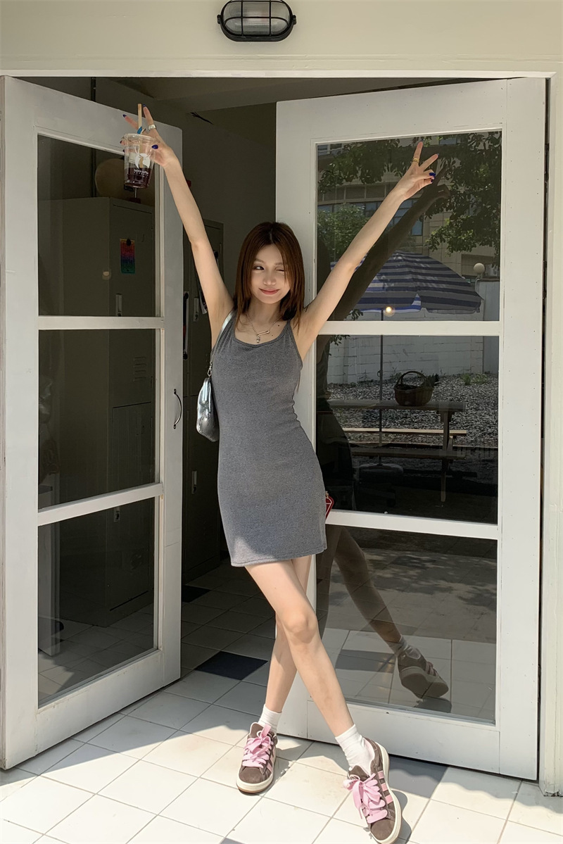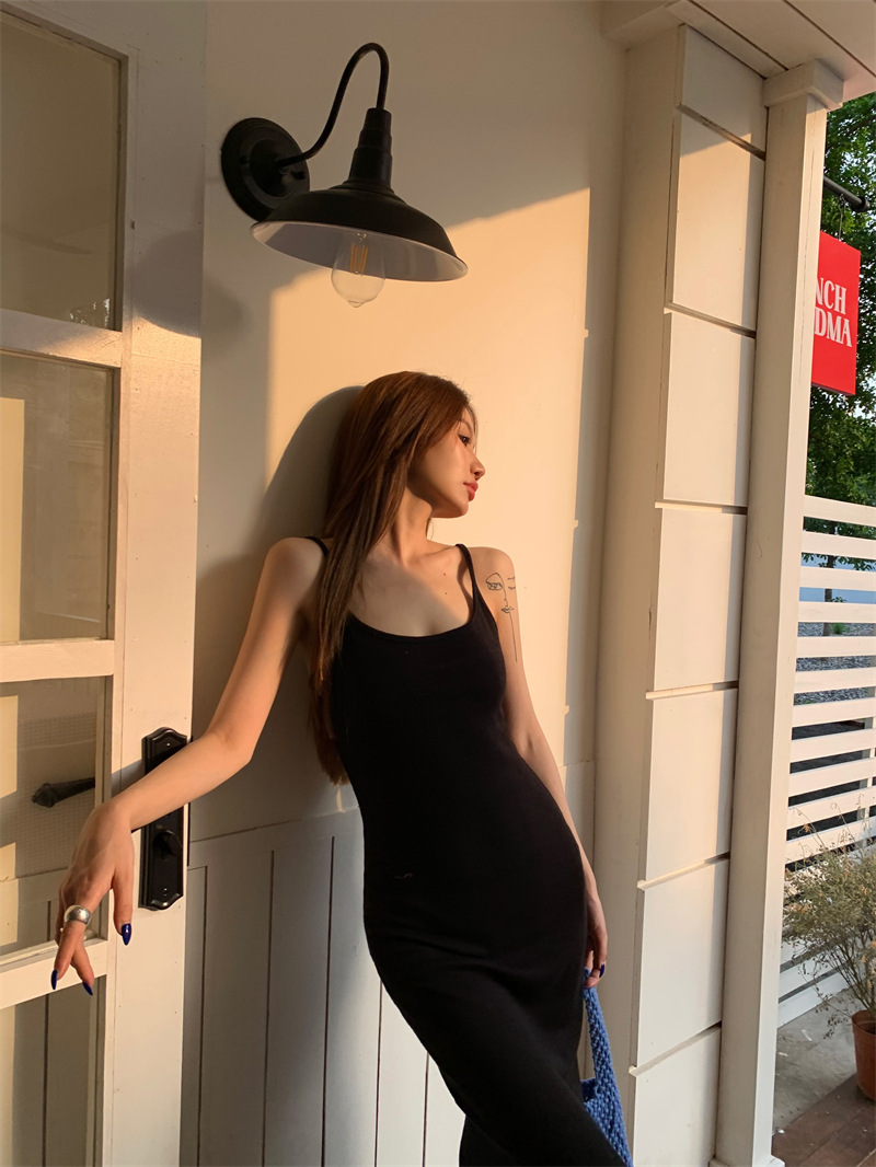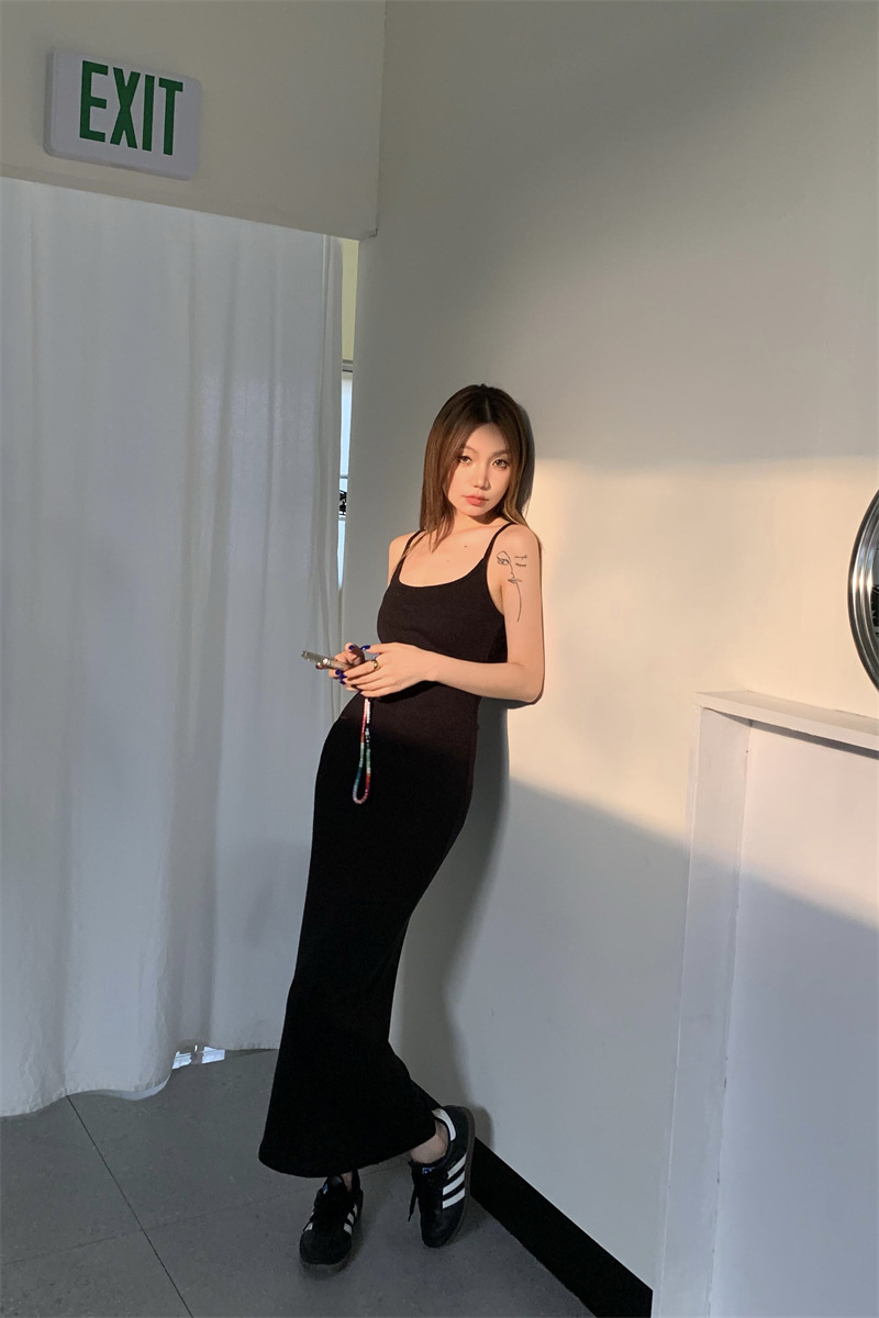 Amita 니트 슬링 원피스 여성 핫 걸 섹시 힙합 스커트 여성을위한 높은 수준의 우아한 타이트 허리 슬리밍 스커트