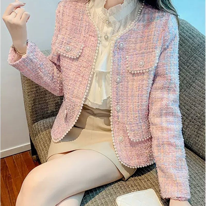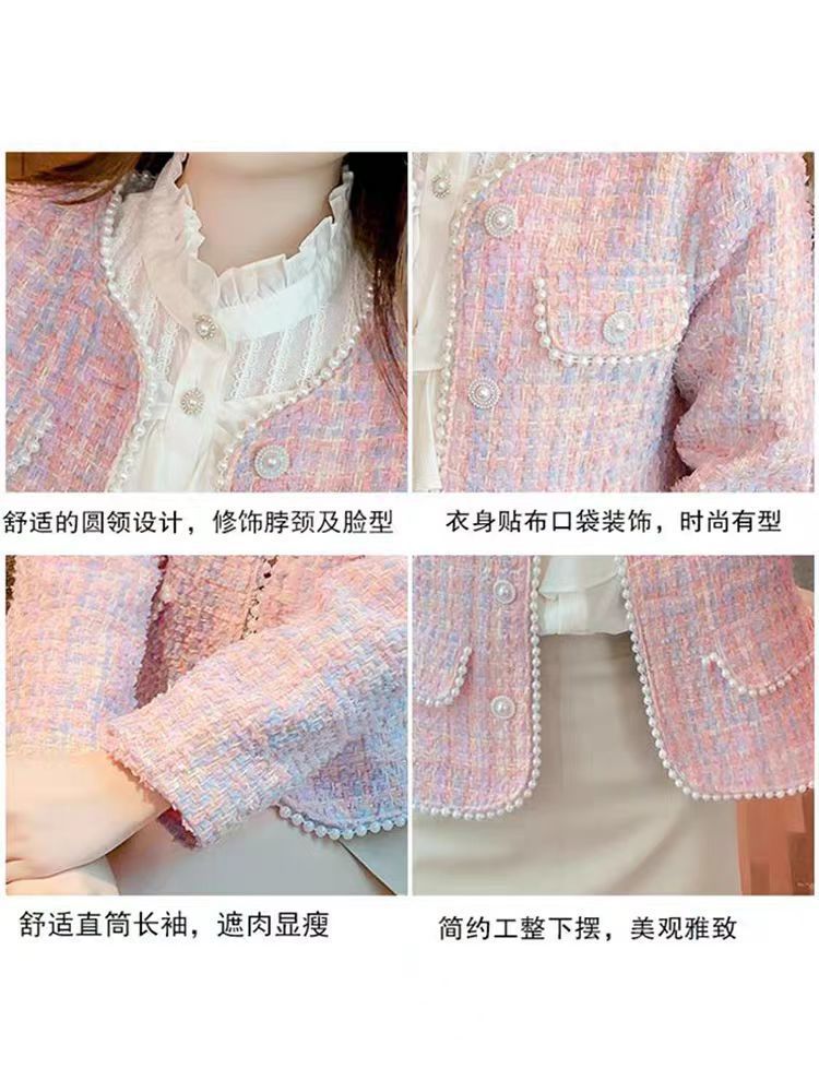 핑크 사교계 짧은 샤넬 스타일 코트 여성의 봄과 가을 새로운 스타일 쁘띠 프랑스 하이 엔드 비즈 탑 재킷스토어 가기