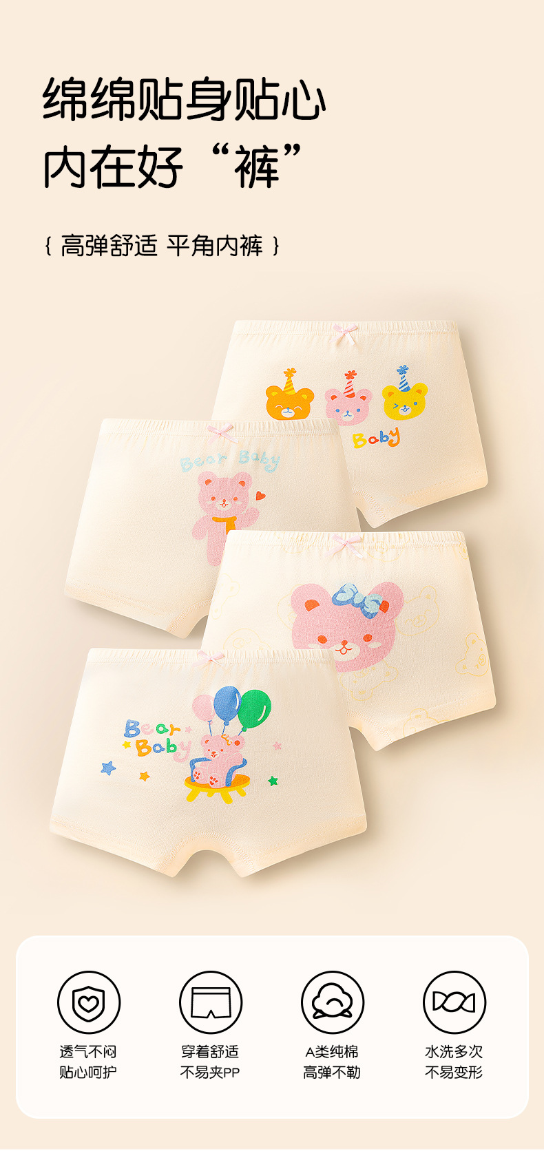 어린이 및 소녀 복서 브리프 퓨어 코튼 클래스 6-12 세 엉덩이 통기성 소녀의 4 코너 만화 반바지스토어 가기