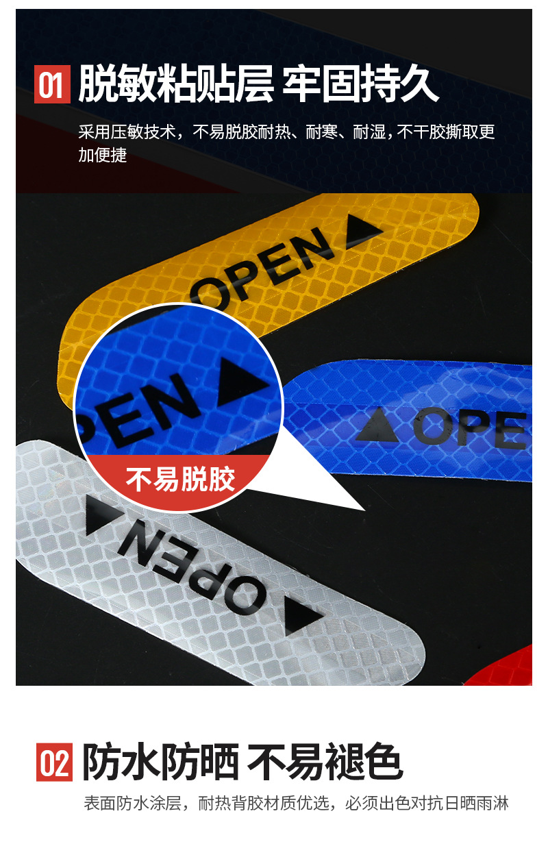 자동차 문 개방 안전 경고 스티커 충돌 방지 스티커 열린 반사 자동차 스티커 창조적 인 밤 몸 반사 스티커