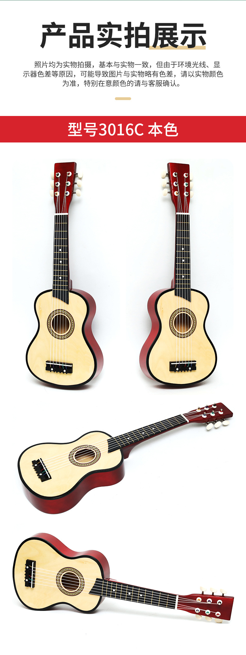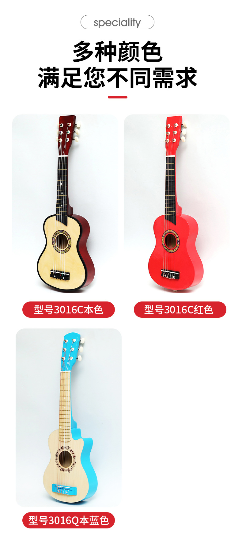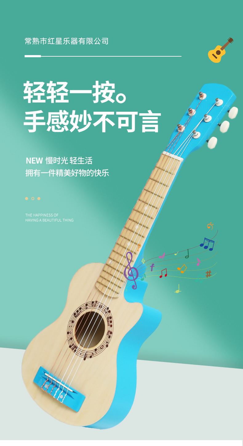 국경을 넘는 공급 25inch 어린이 장난감 기타 나무 기타 원목 색상 빨간색 파란색 기타 선물 제조업체스토어 가기