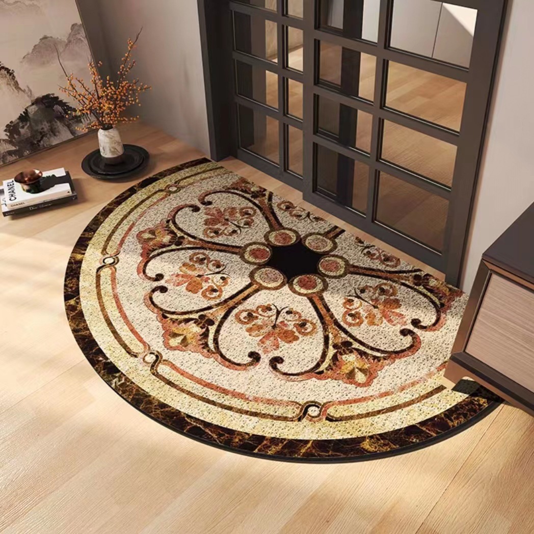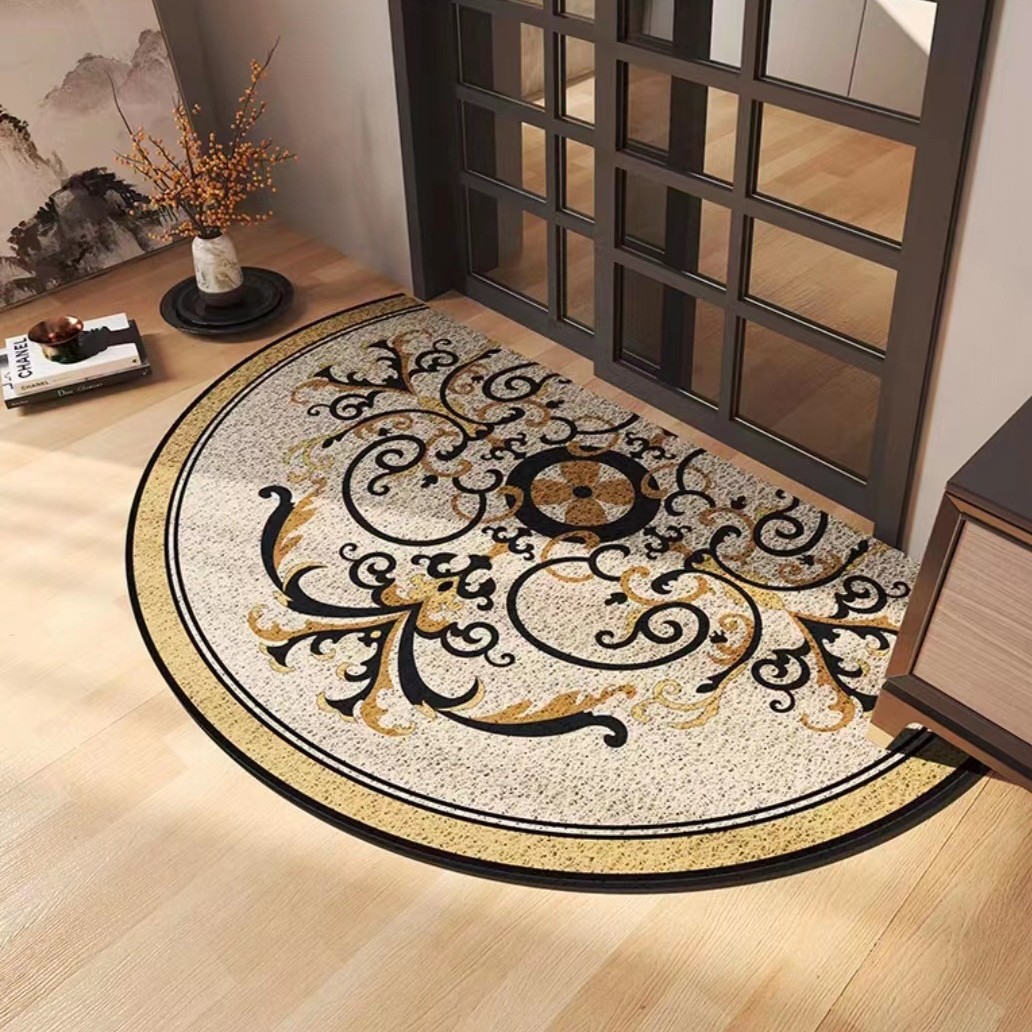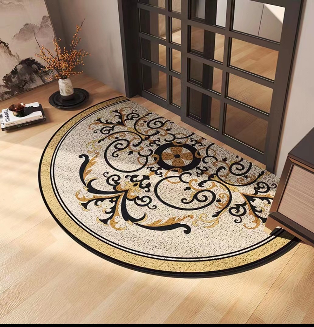 유럽식 거실 입구 매트 PVC 실크 서클 발 매트 반원형 먼지 제거 미끄럼 방지 도어 매트 가정용 절단