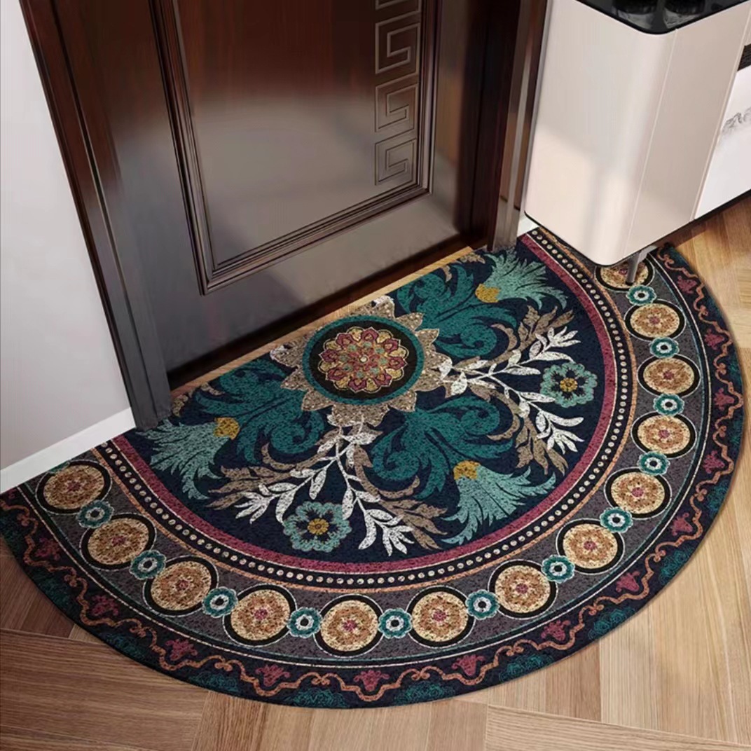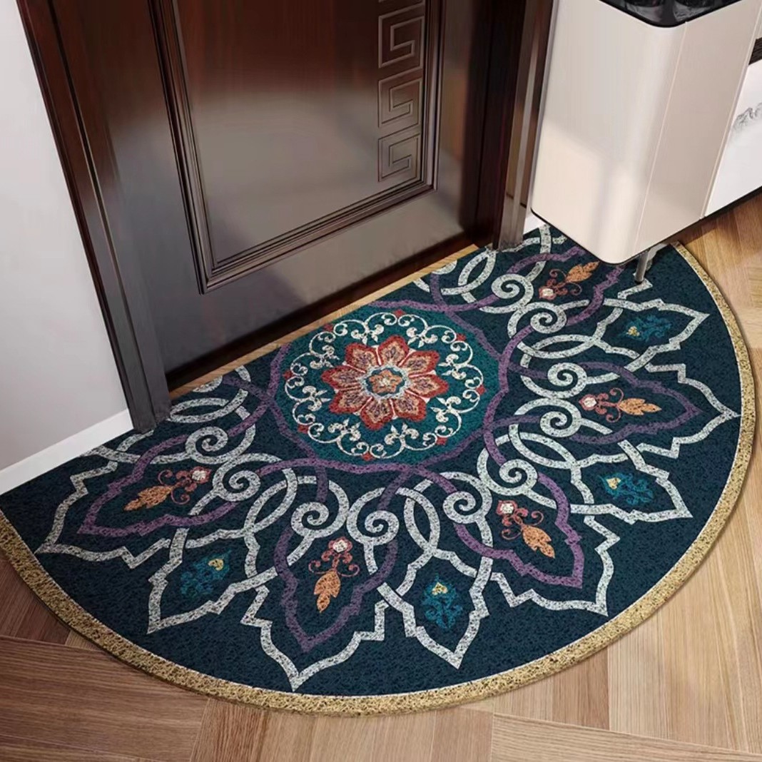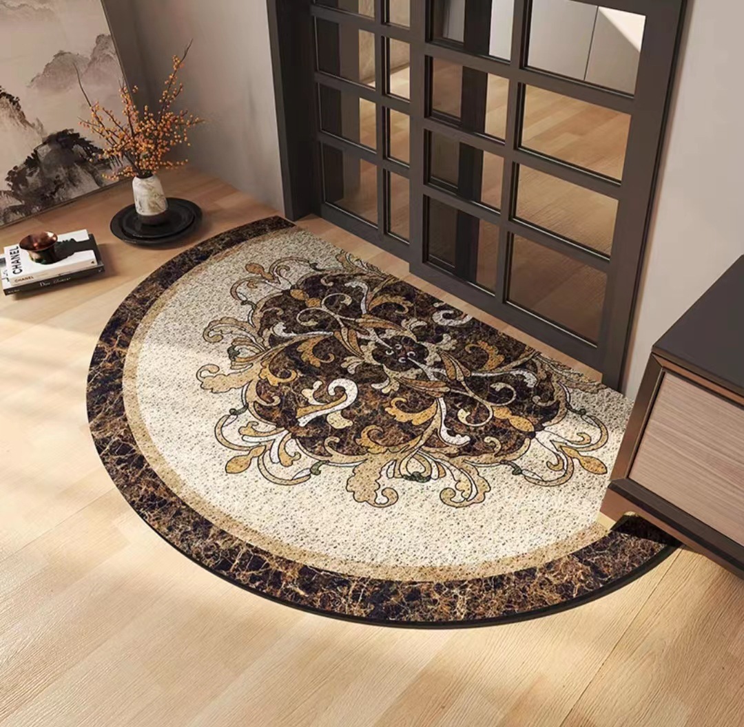 유럽식 거실 입구 매트 PVC 실크 서클 발 매트 반원형 먼지 제거 미끄럼 방지 도어 매트 가정용 절단