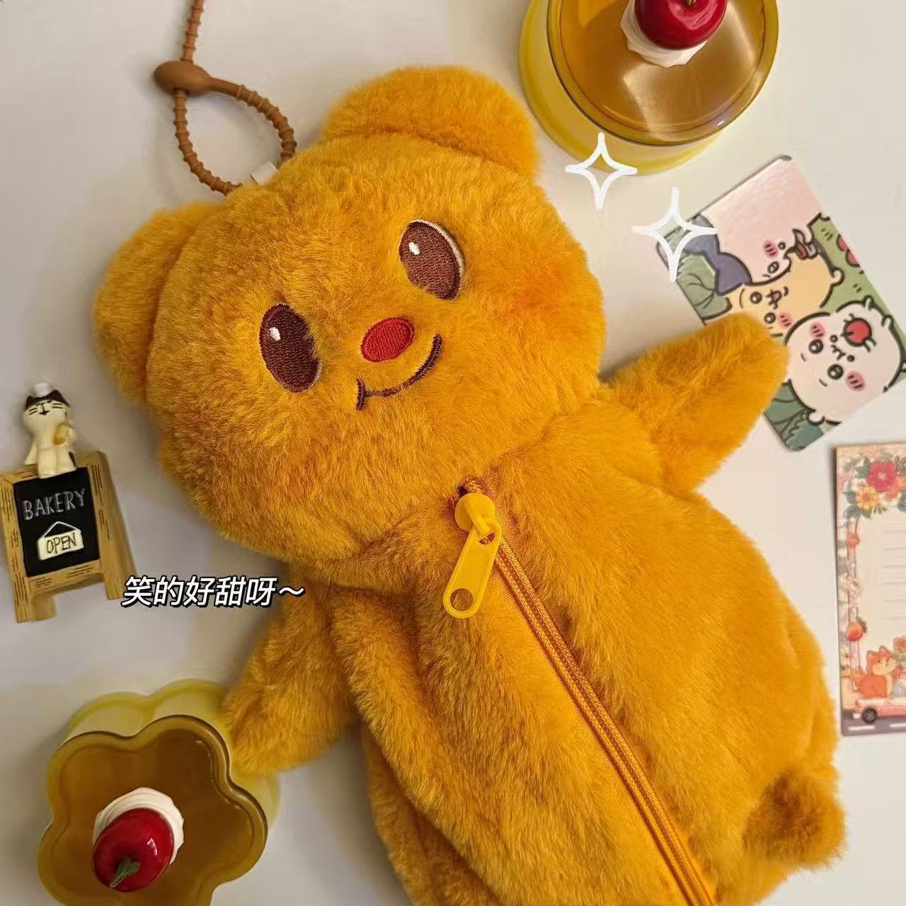 Senbeier Bear 봉제 연필 가방 스타일 창조적 인 귀여운 만화 학생 저장 가방 대용량 문구 가방스토어 가기