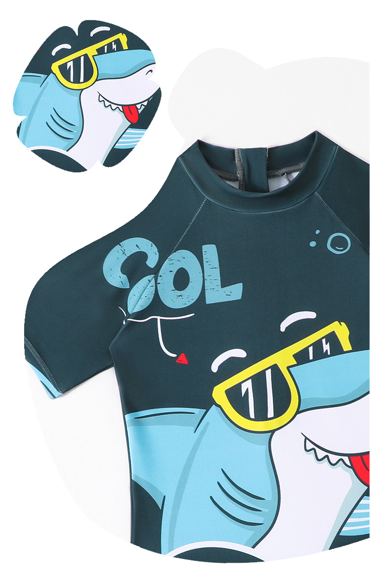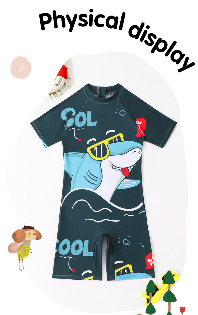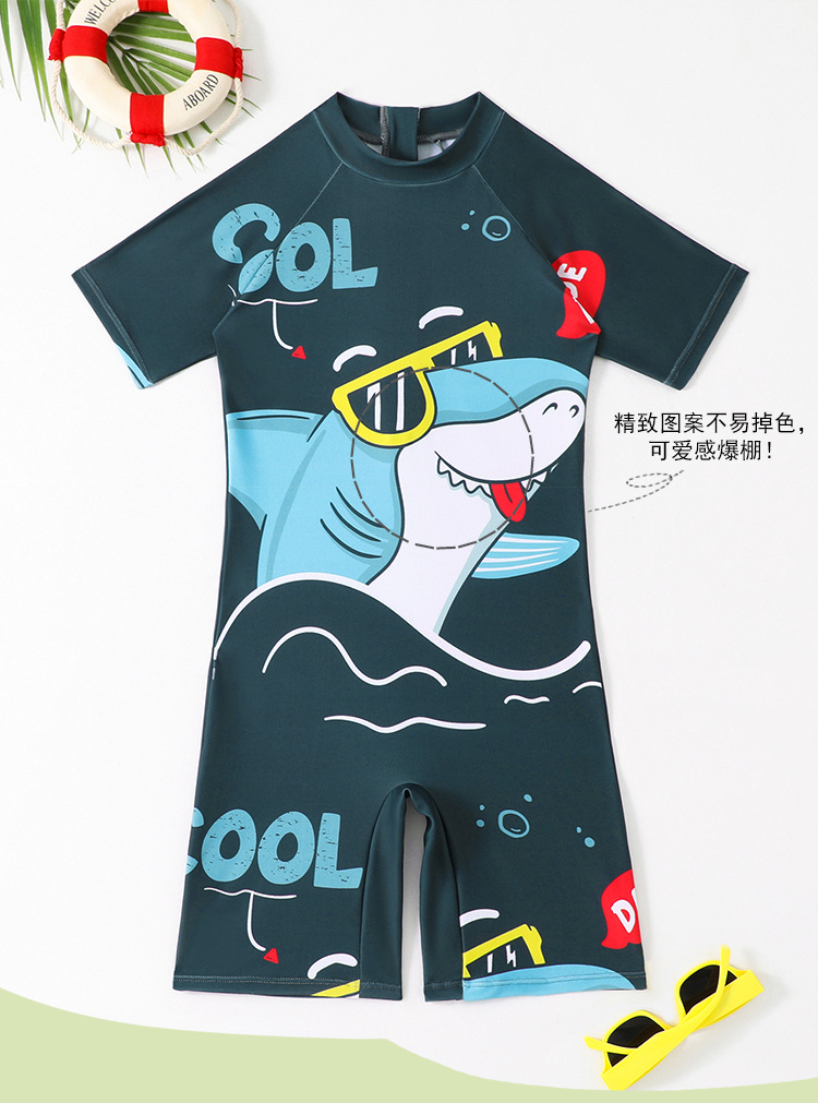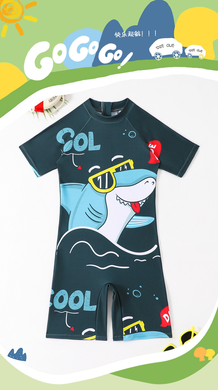 소년의 새로운 원피스 반팔 수영복 어린이 작은, 중간 및 큰 어린이 학생 수영복 만화 아기 서핑 옷 도매스토어 가기