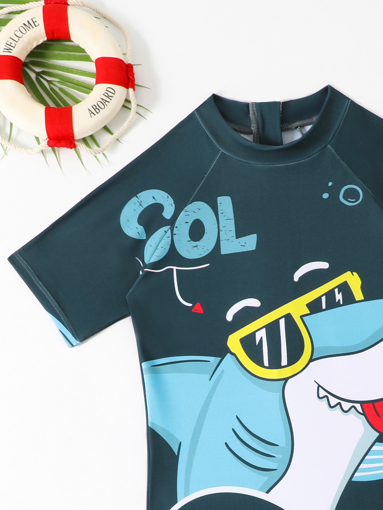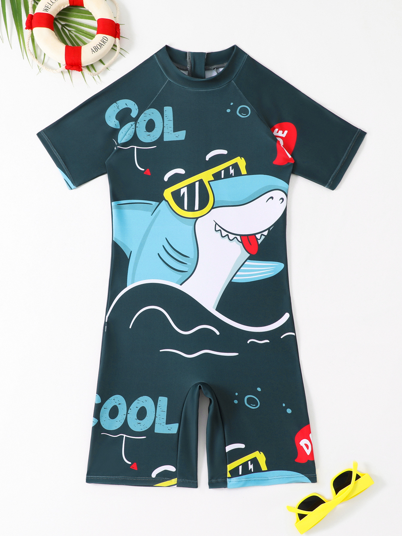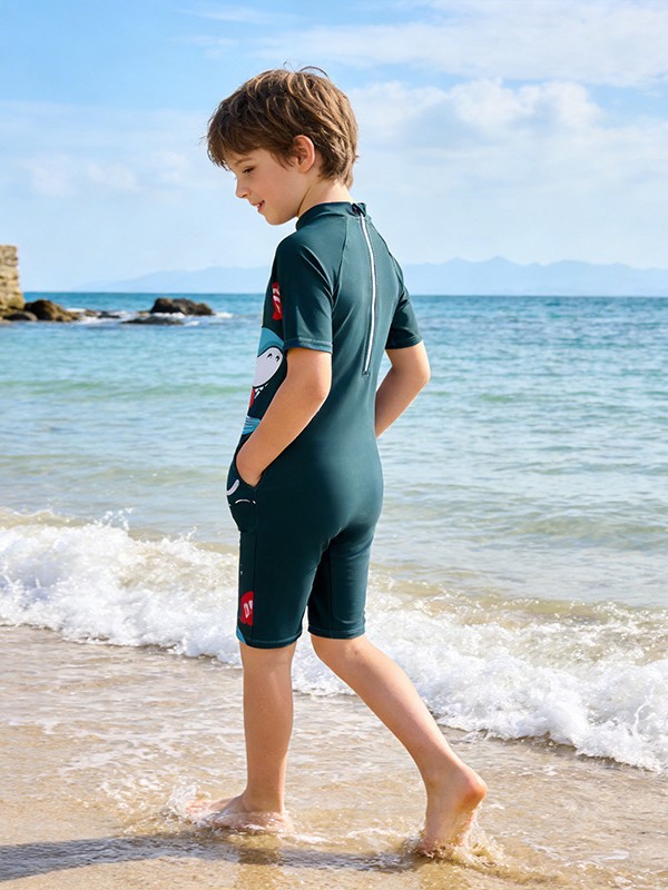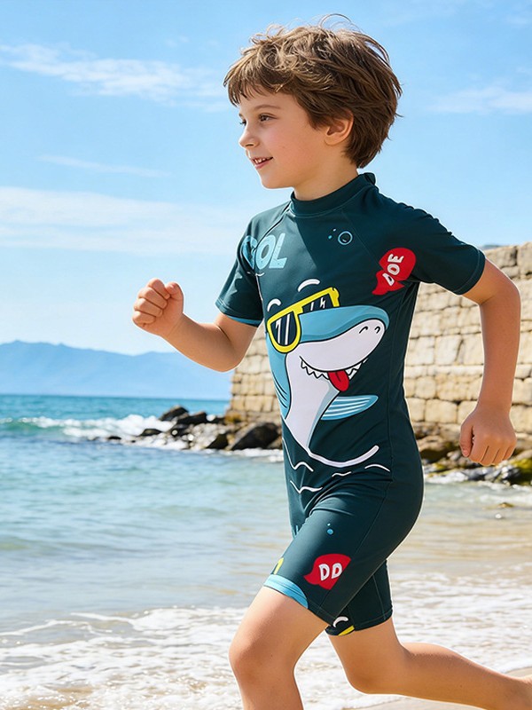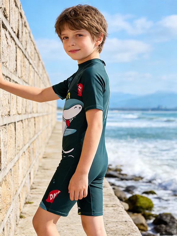 소년의 새로운 원피스 반팔 수영복 어린이 작은, 중간 및 큰 어린이 학생 수영복 만화 아기 서핑 옷 도매스토어 가기