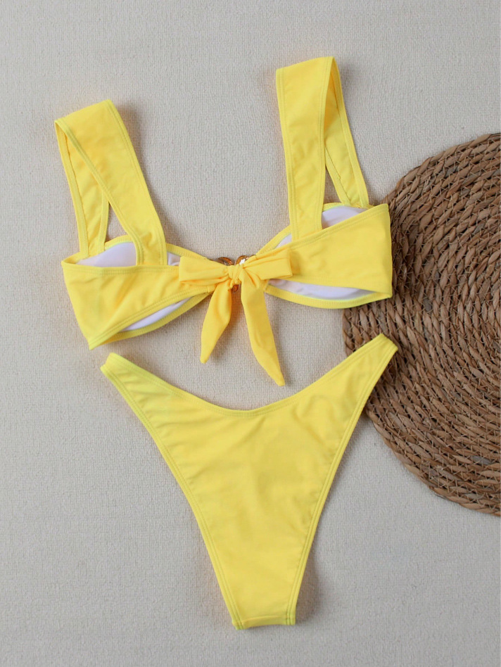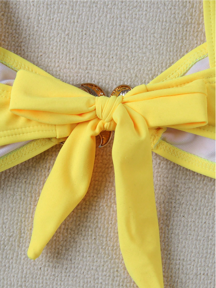 새로운 국경 유럽 및 미국 무역 솔리드 컬러 비키니 분할 스포츠 플랫 앵글 하이 칼라 프론트 레이스 업 수영복