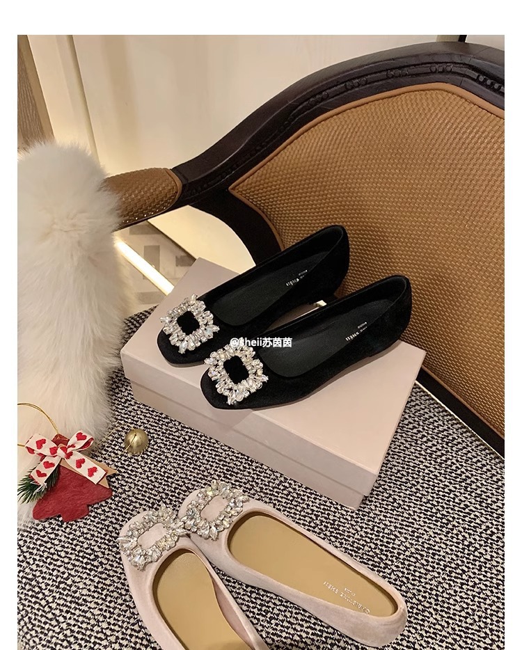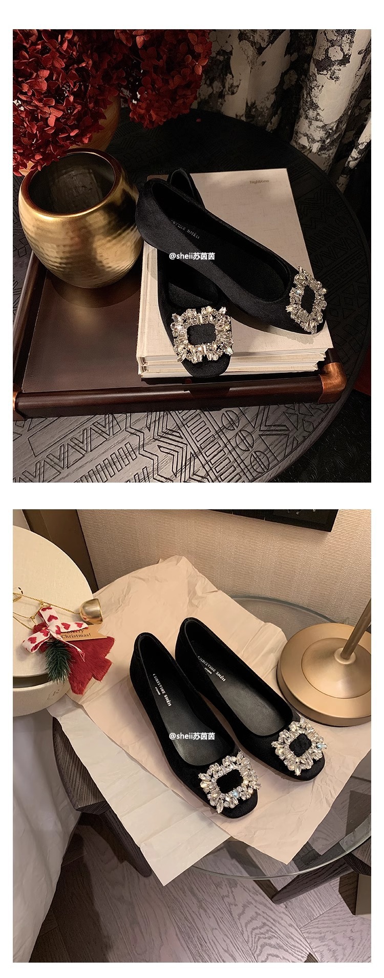 재고 ~ [셰이이 수 이닌] 프랑스 모조 다이아몬드 스퀘어 버클 얕은 입 새로운 플랫 슈즈 여성용 통근 신발 웨딩 슈즈스토어 가기