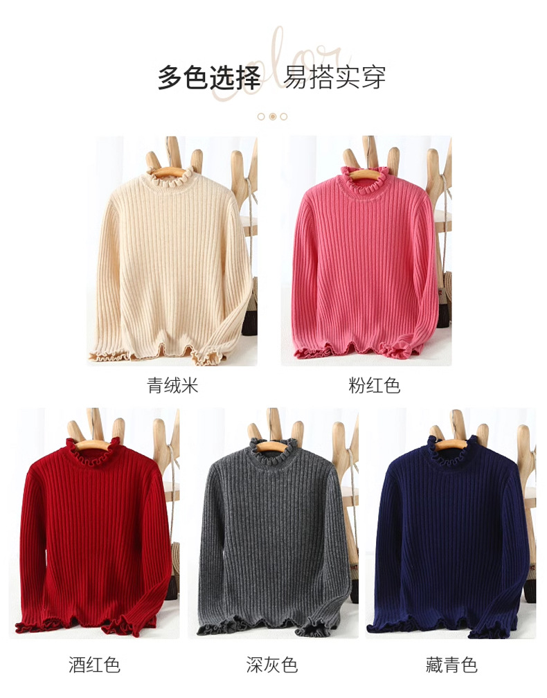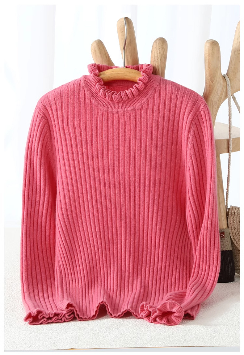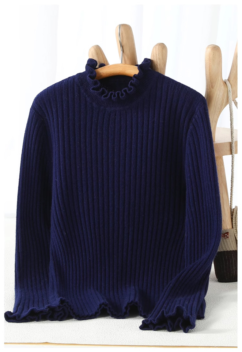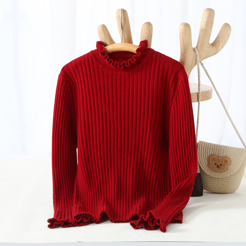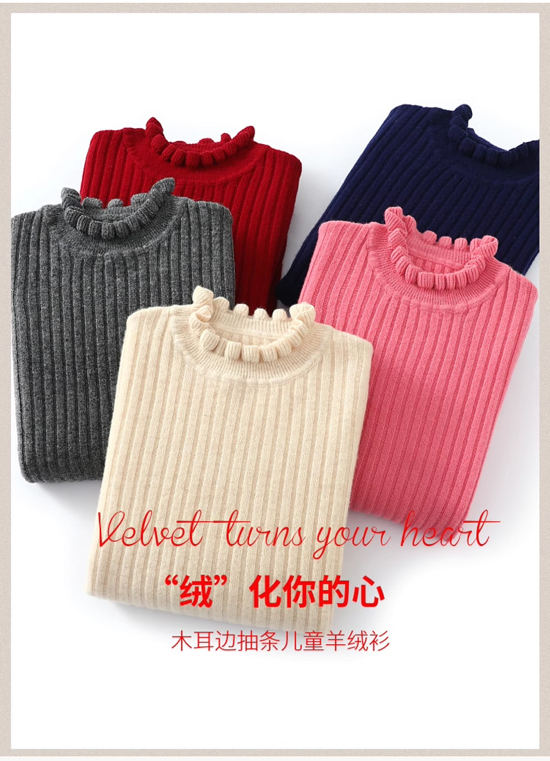 어린이 가을과 겨울 두꺼운베이스 캐시미어 스웨터 중대형 어린이 풀오버 솔리드 컬러 스웨터 소년 소녀를위한 아이 가장자리 아기 울 스웨터
