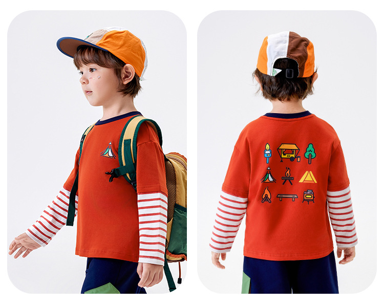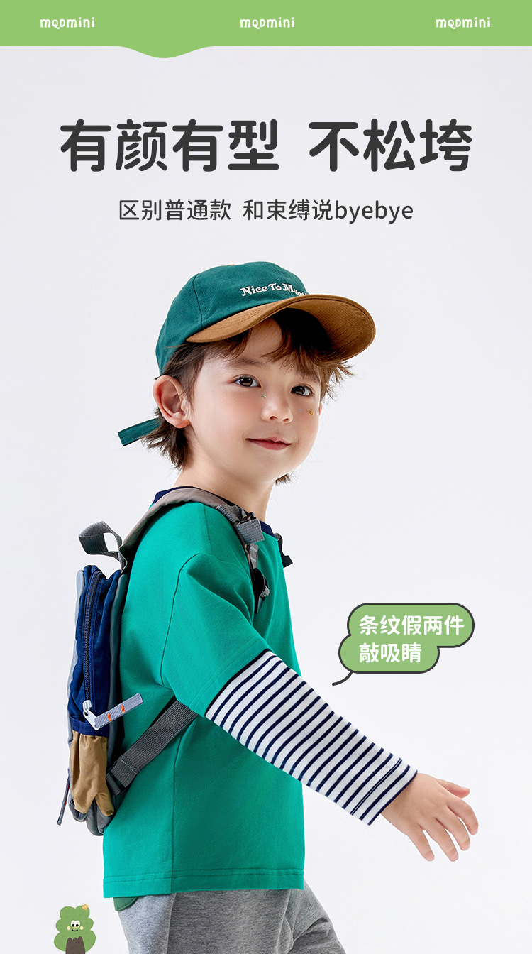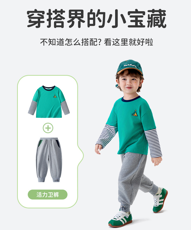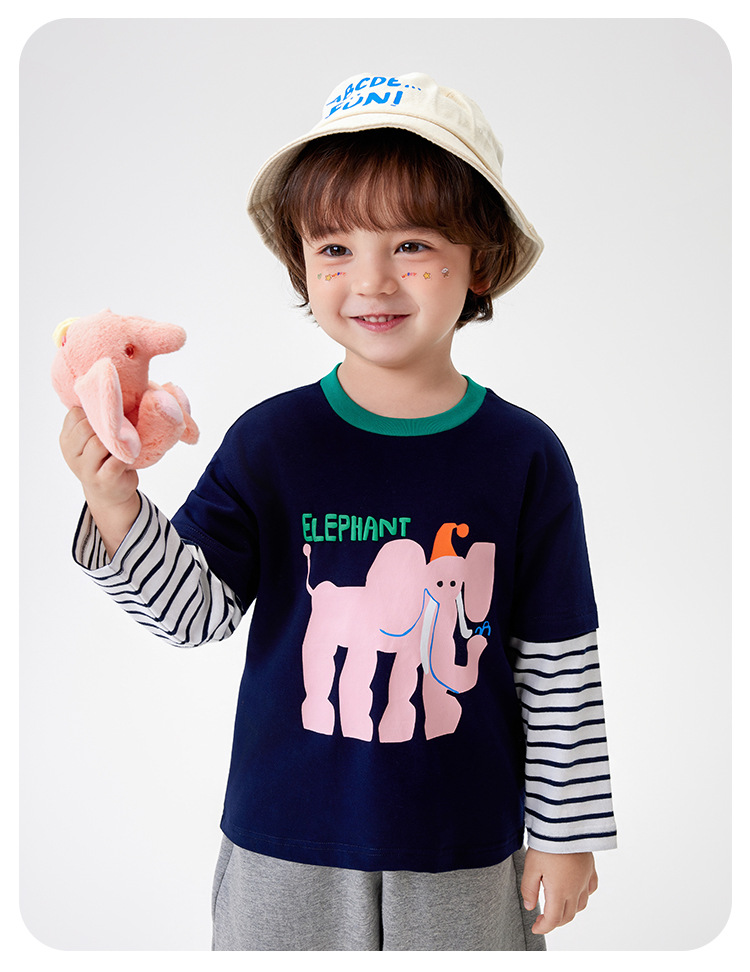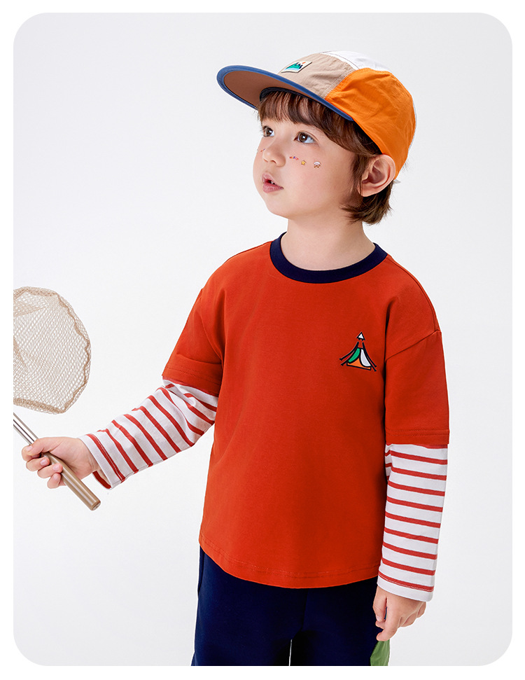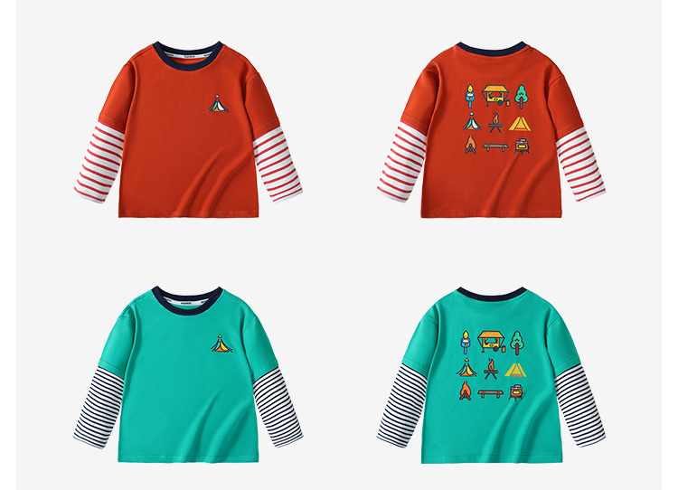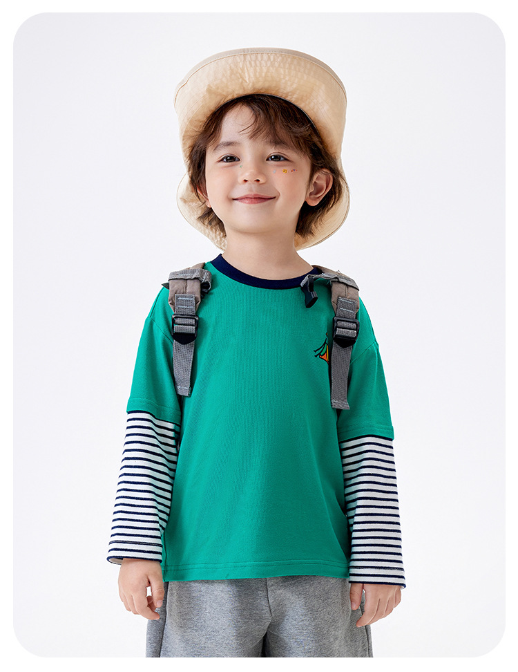 [5A Bacteriostasis] MQDmini 봄 새로운 어린이 티셔츠 소년 긴 소매 가짜 투피스 기본 어린이 탑스토어 가기