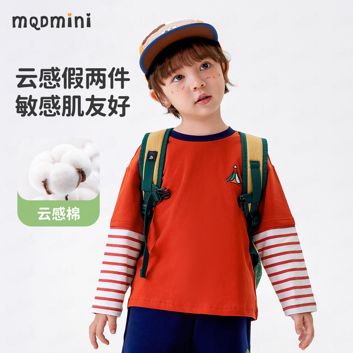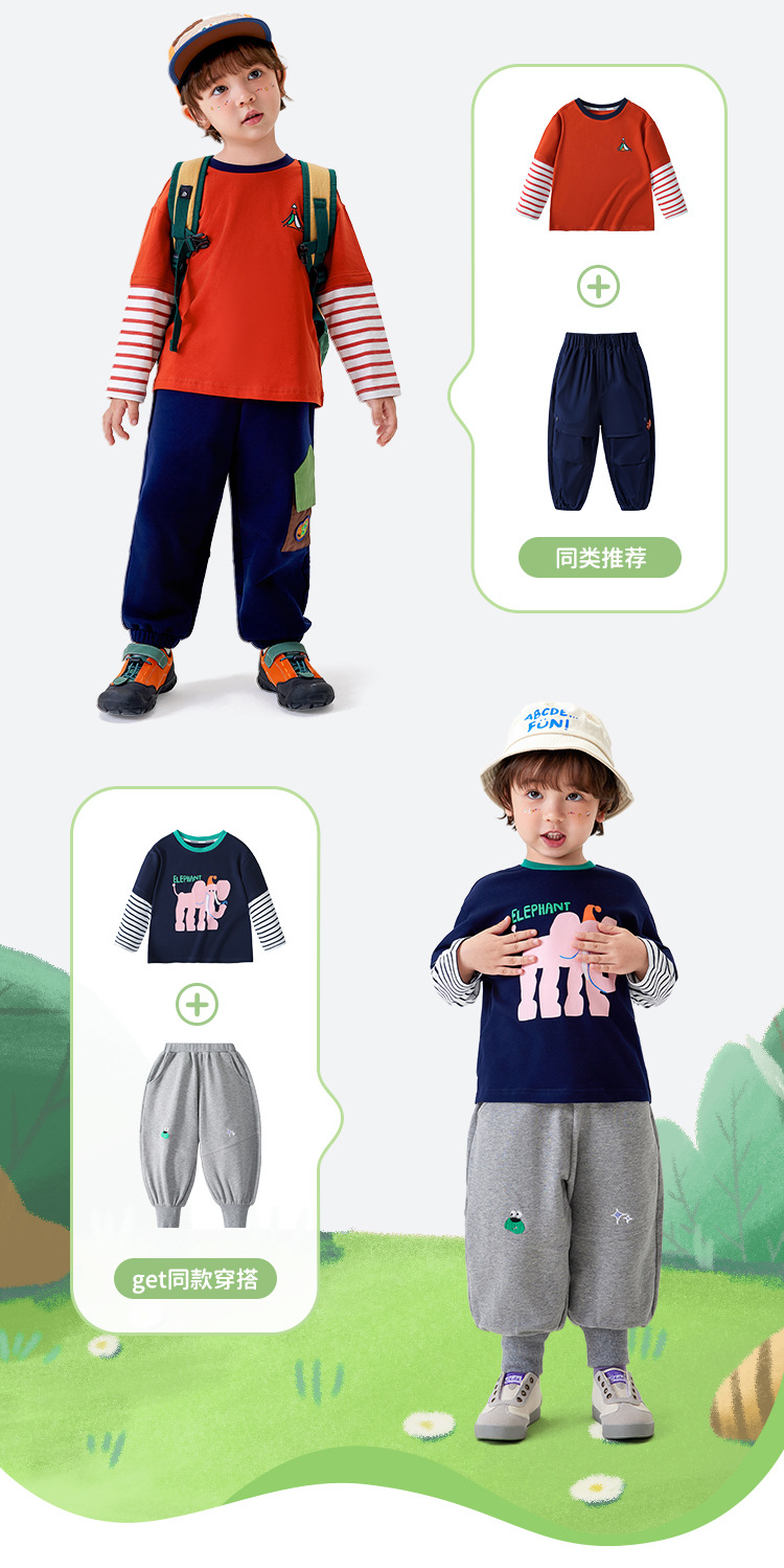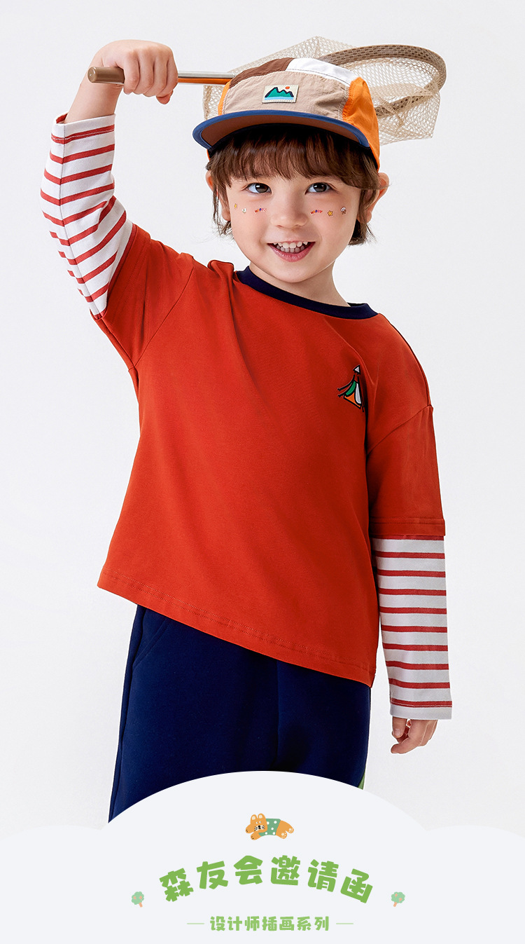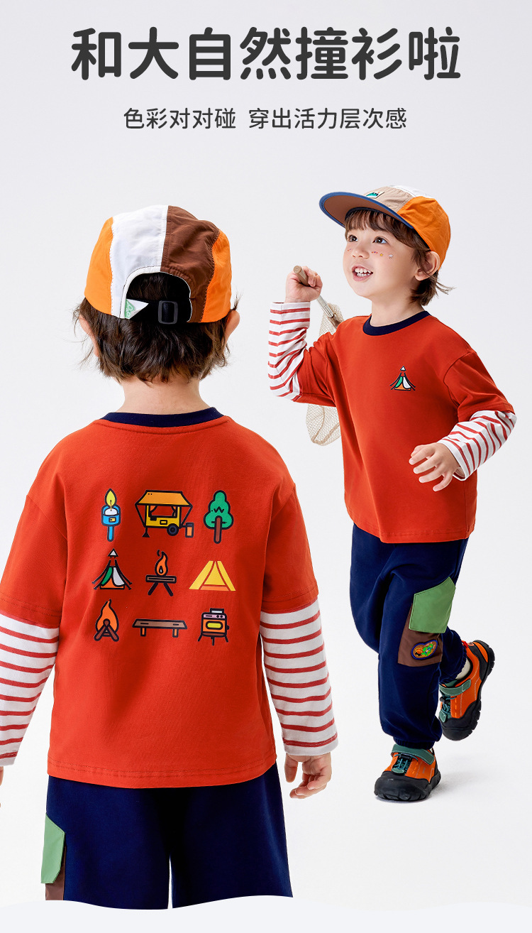 [5A Bacteriostasis] MQDmini 봄 새로운 어린이 티셔츠 소년 긴 소매 가짜 투피스 기본 어린이 탑스토어 가기
