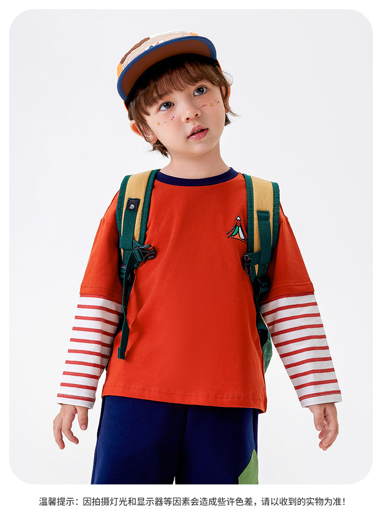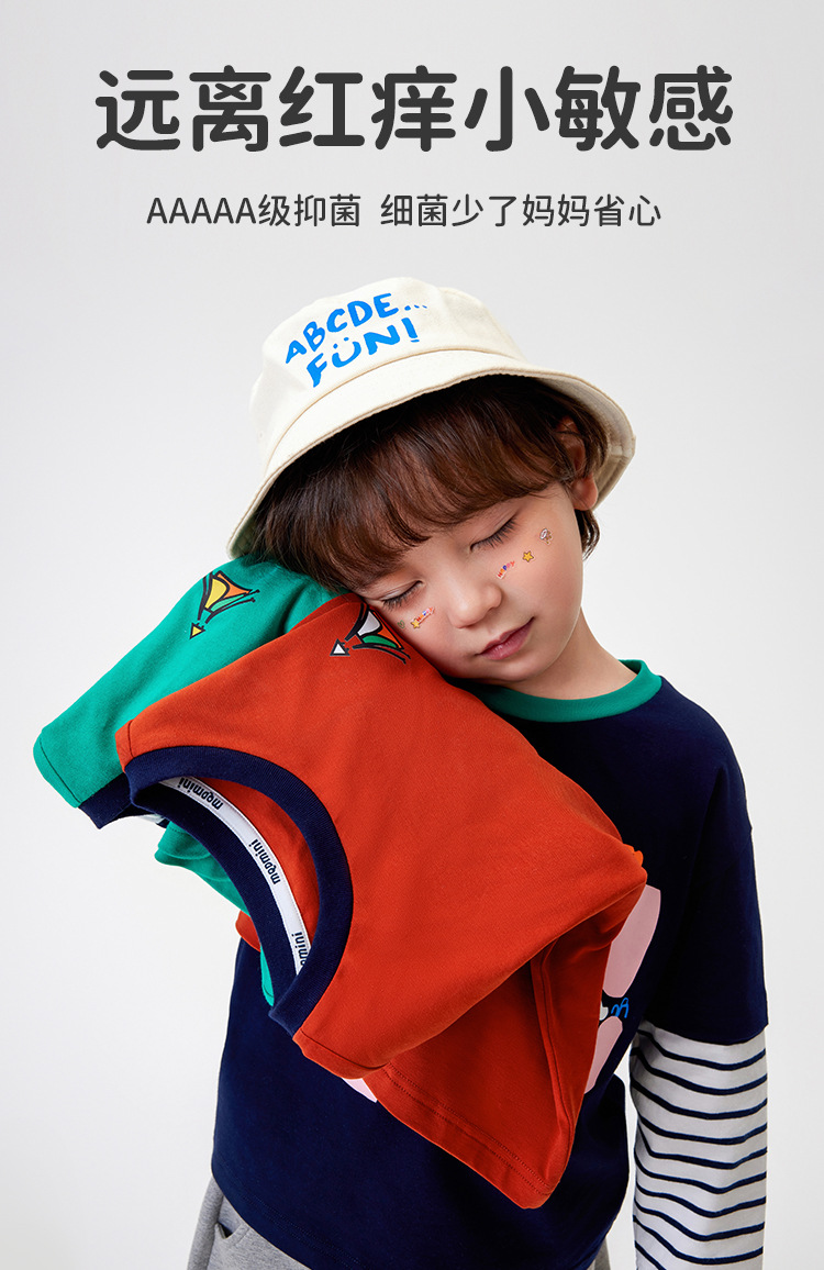 [5A Bacteriostasis] MQDmini 봄 새로운 어린이 티셔츠 소년 긴 소매 가짜 투피스 기본 어린이 탑
