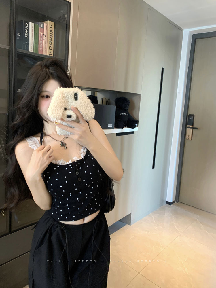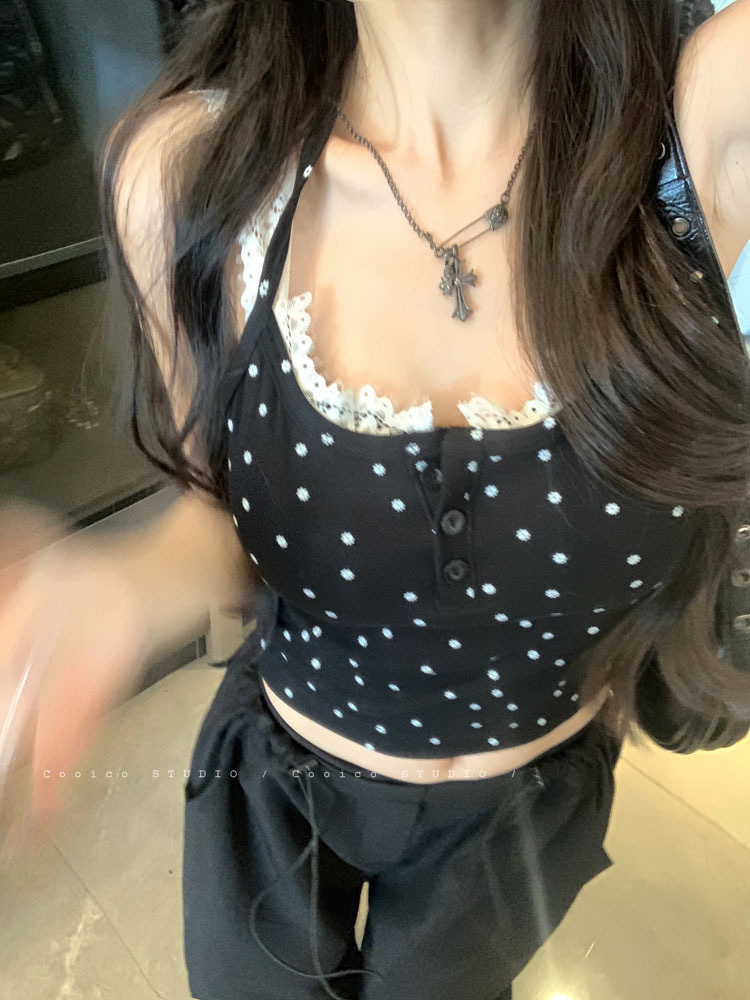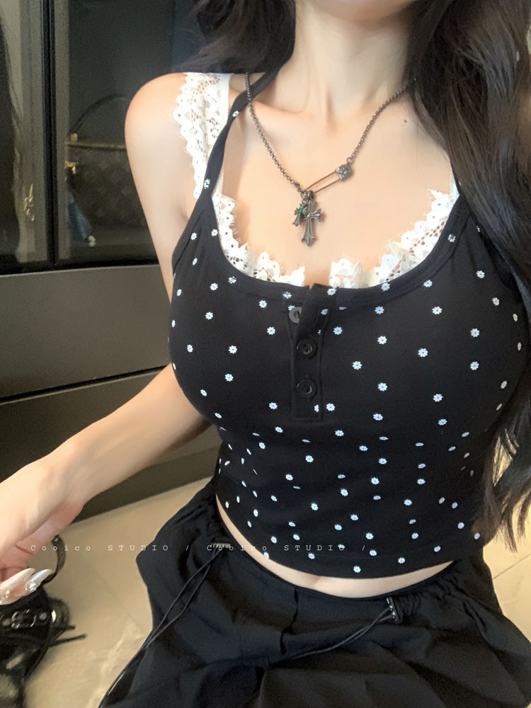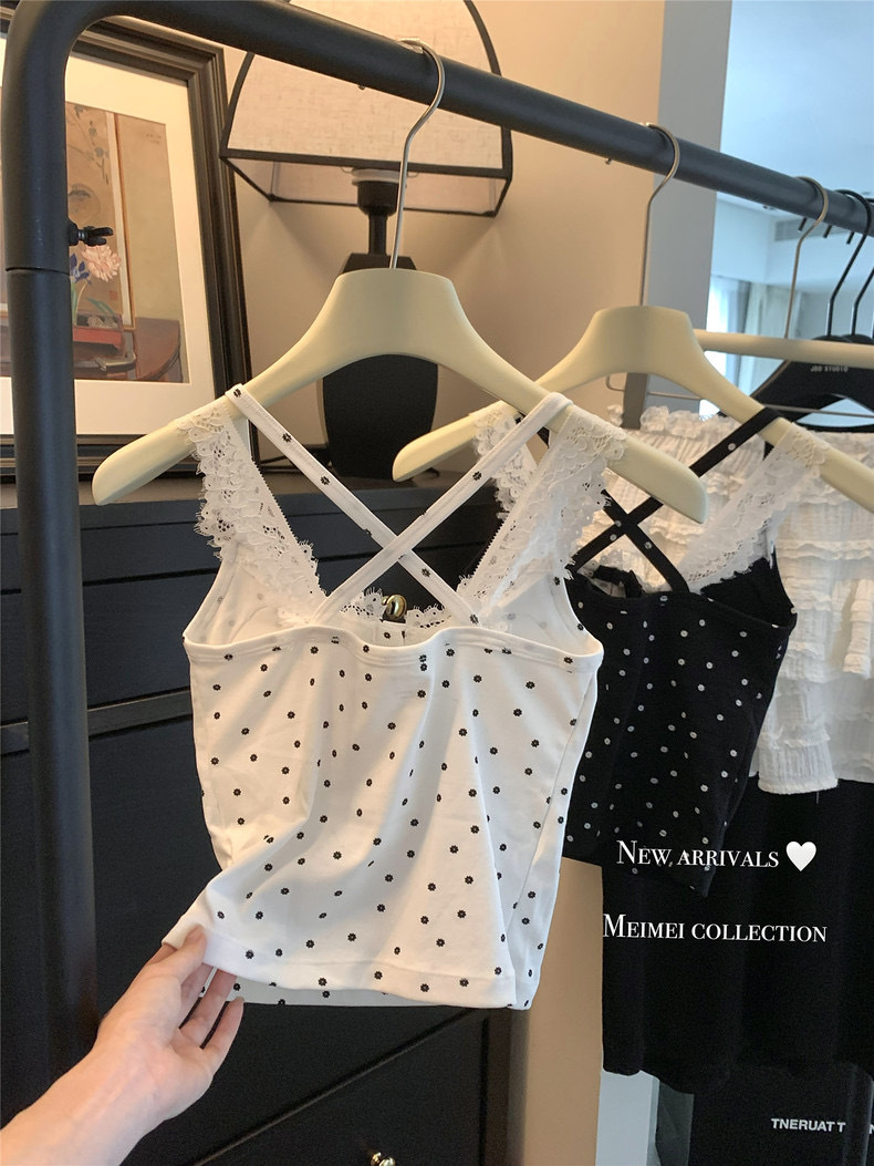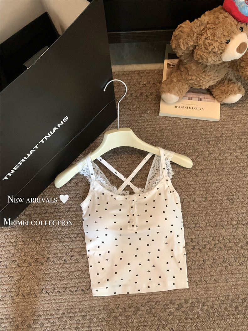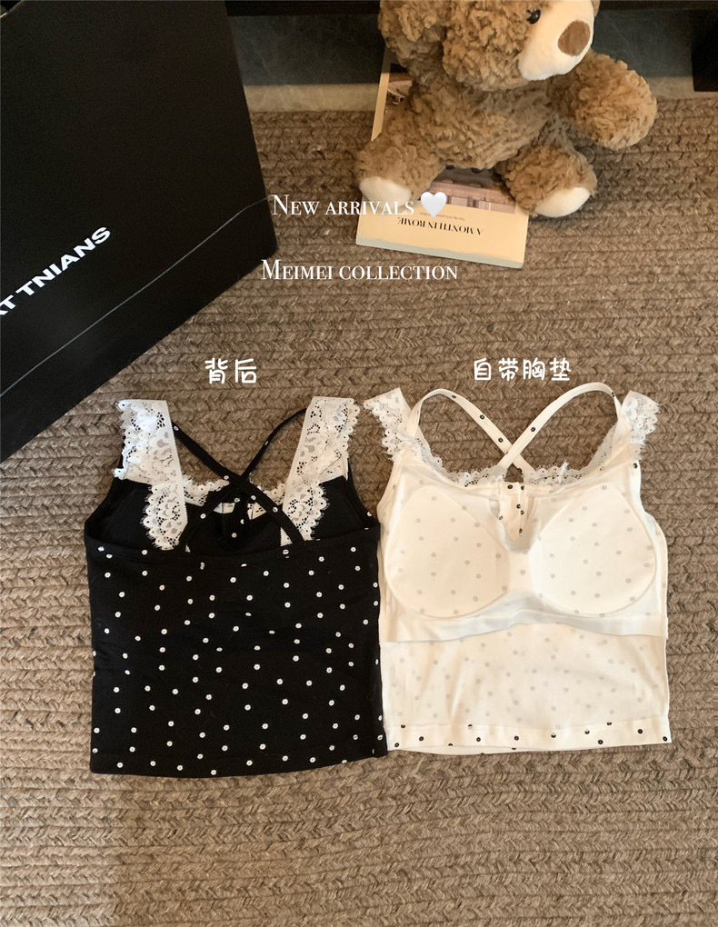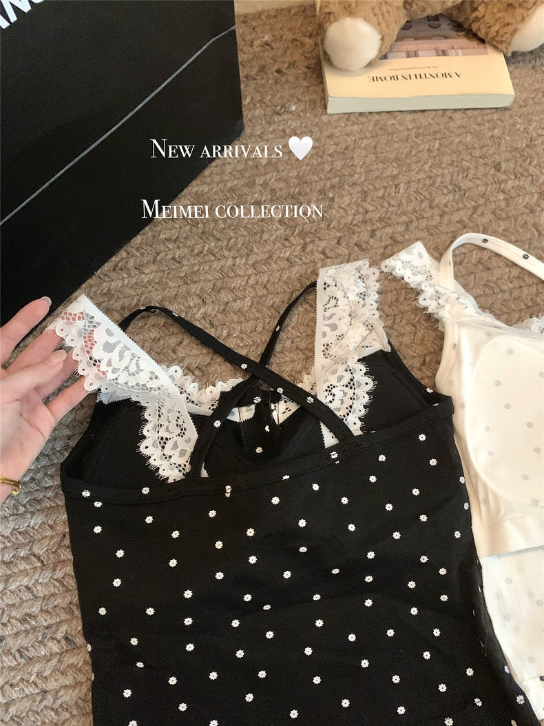 뜨거운 여자 순수한 욕망 스타일 섹시한 레이스 백리스 카미 솔 여성 탑 가슴 패드 여름 새로운 디자인 감각 틈새 탑