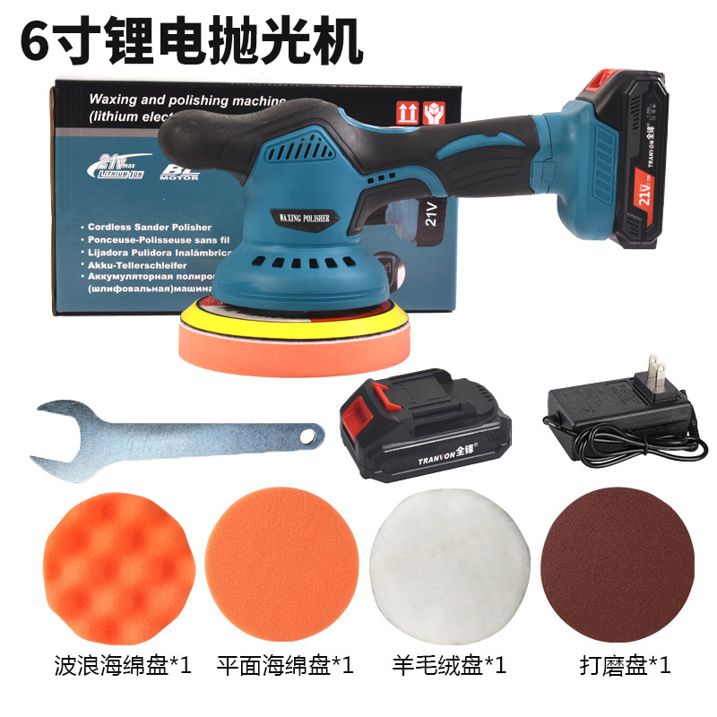 리튬 배터리 폴리셔 6 인치 자동차 연마 왁싱 유약 밀봉 기계 외부 원형 평판 충전식 21V 자동차 연마 기계