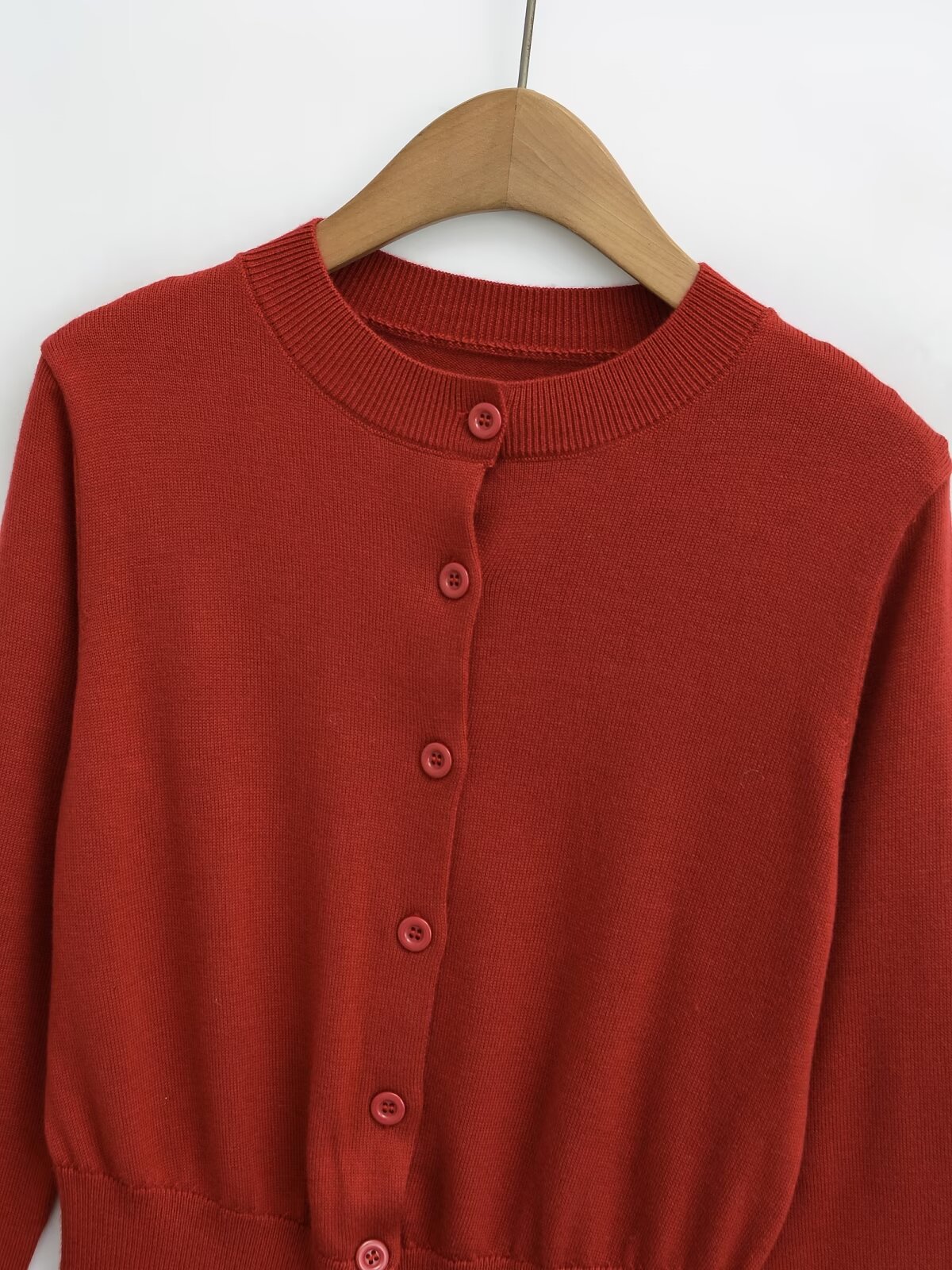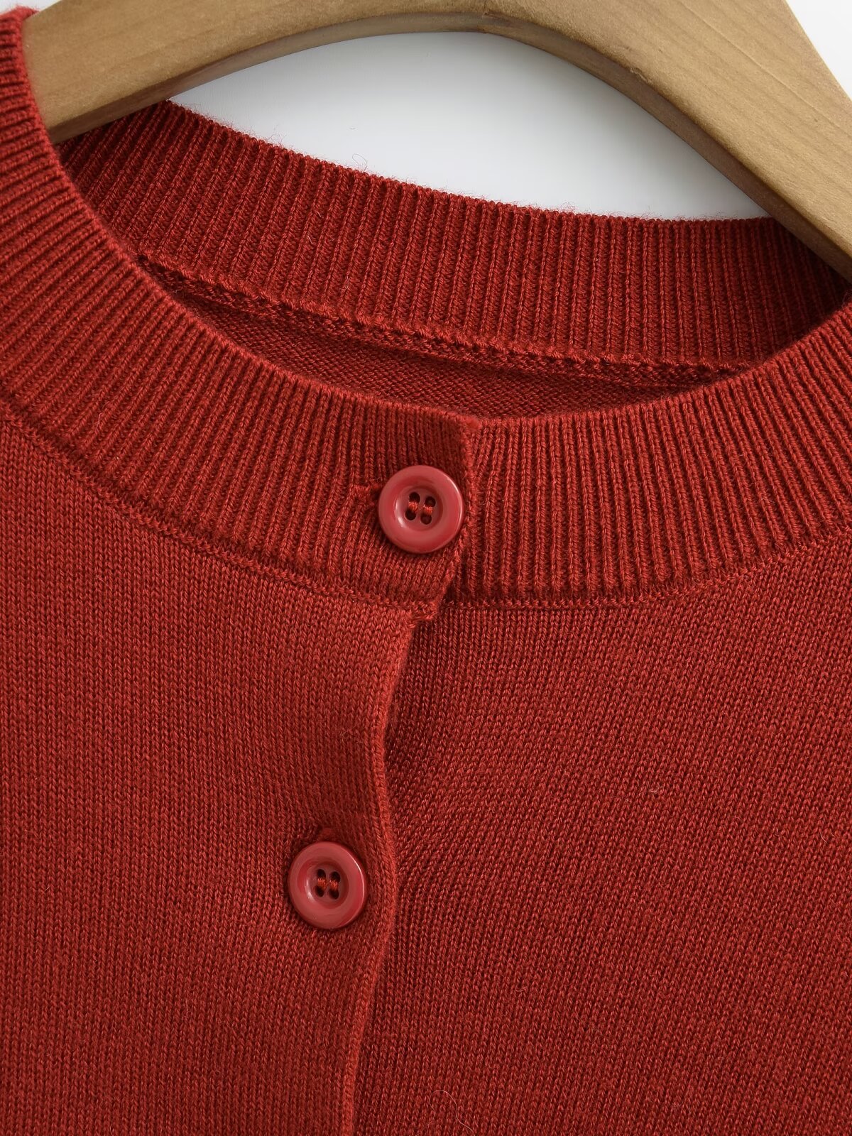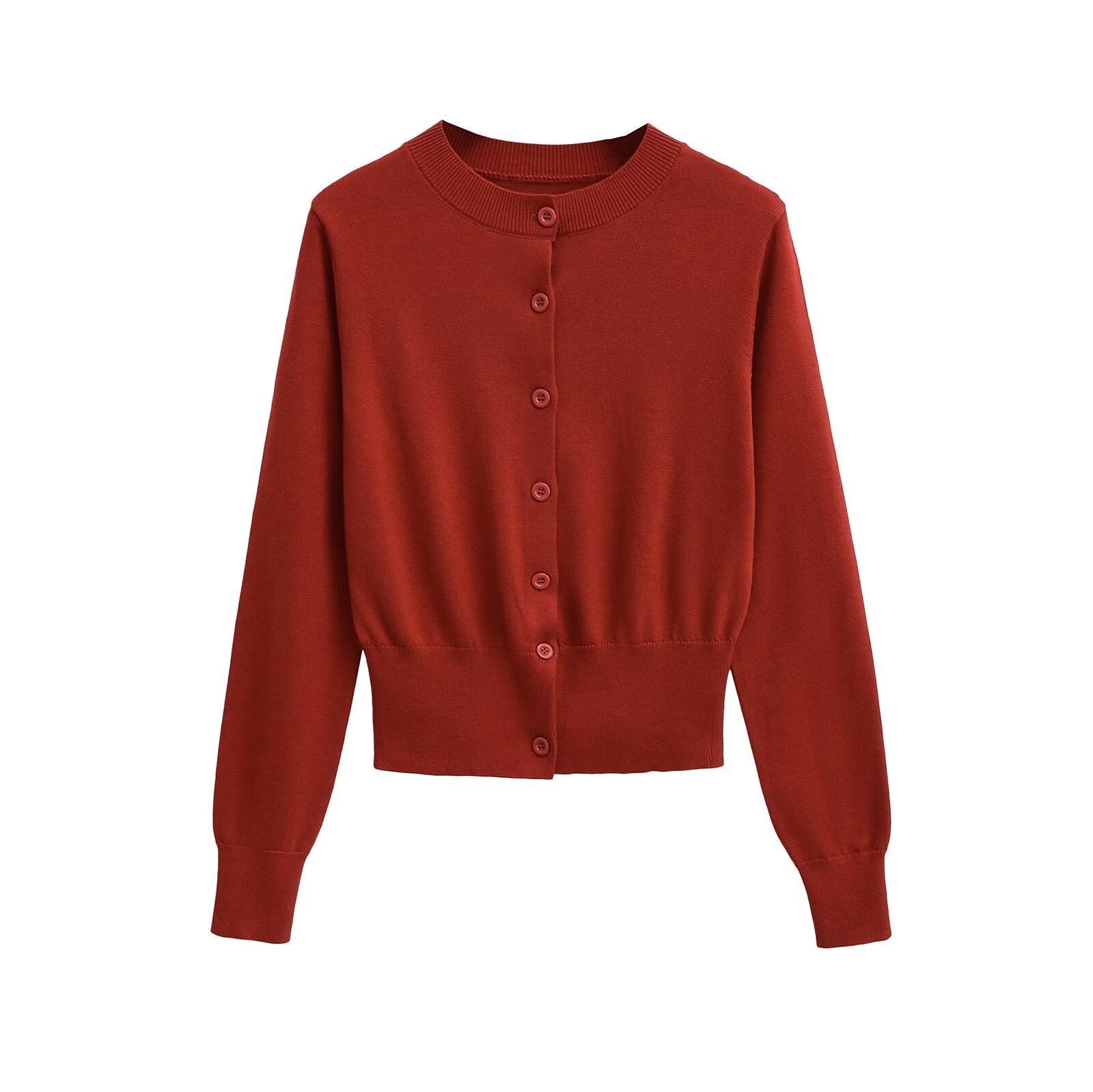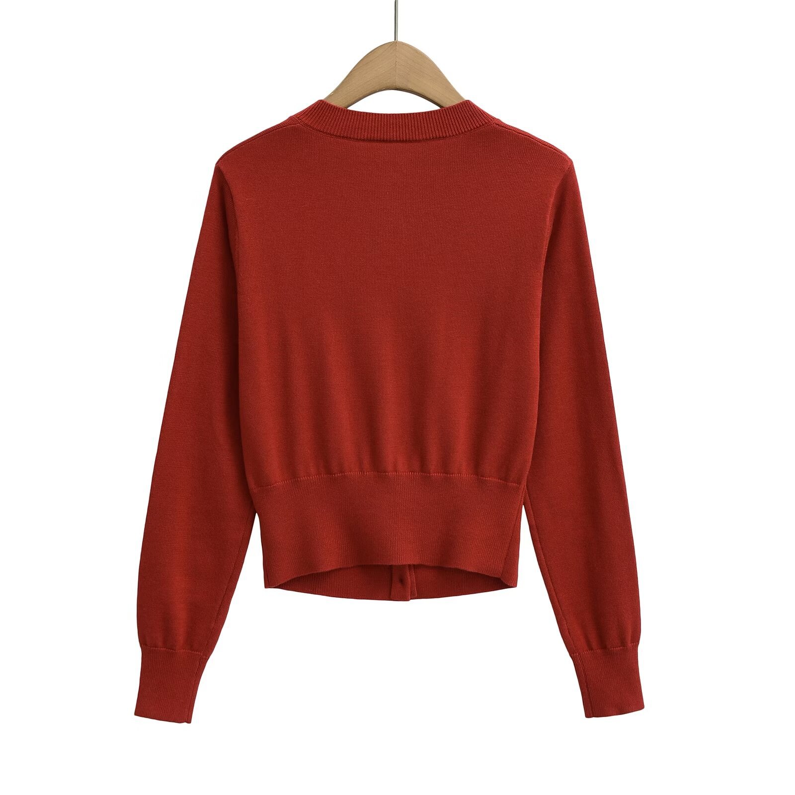 빨간 긴팔 니트 카디건 여자 2025 봄 아우터 울 재킷 레트로 라운드 넥 우아한 짧은 내부 탑스토어 가기