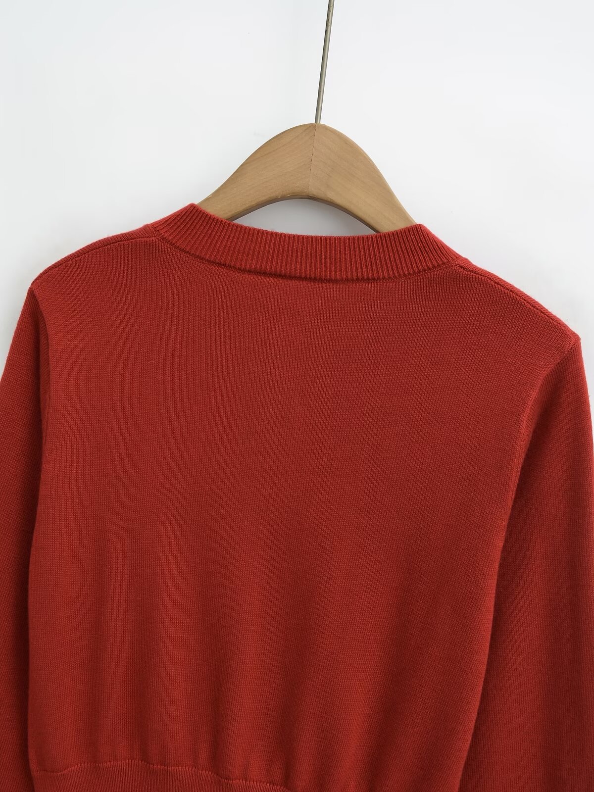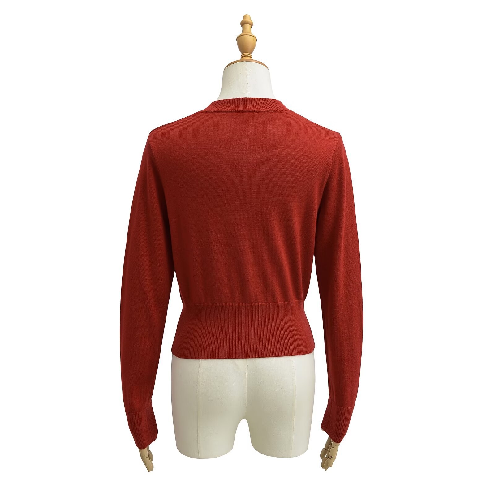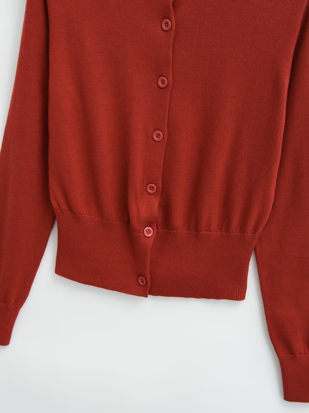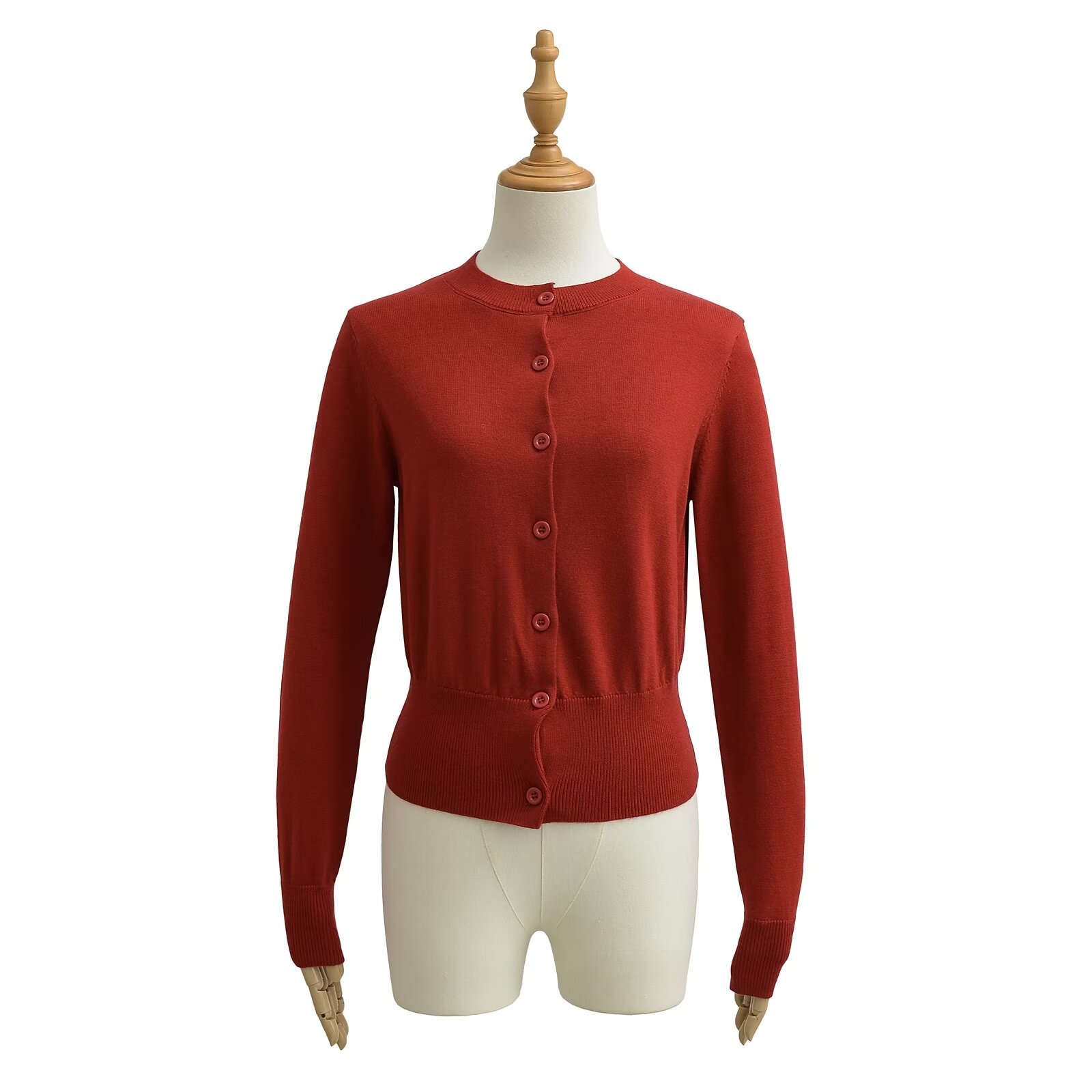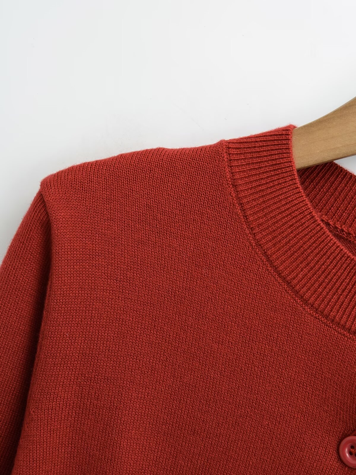 빨간 긴팔 니트 카디건 여자 2025 봄 아우터 울 재킷 레트로 라운드 넥 우아한 짧은 내부 탑스토어 가기