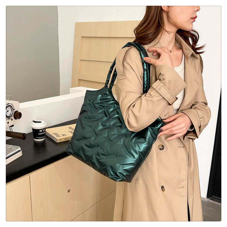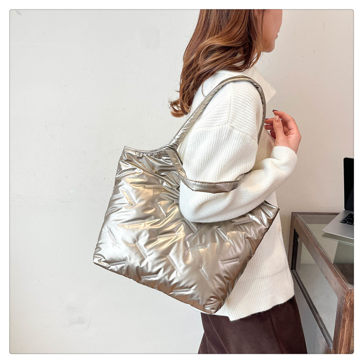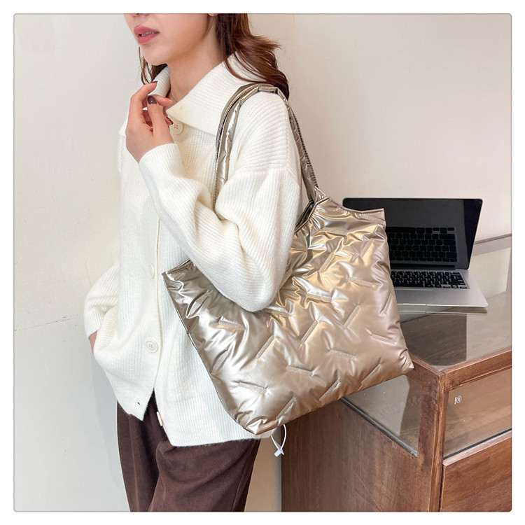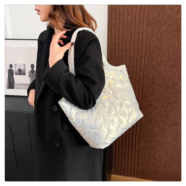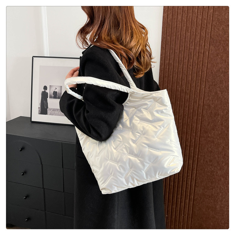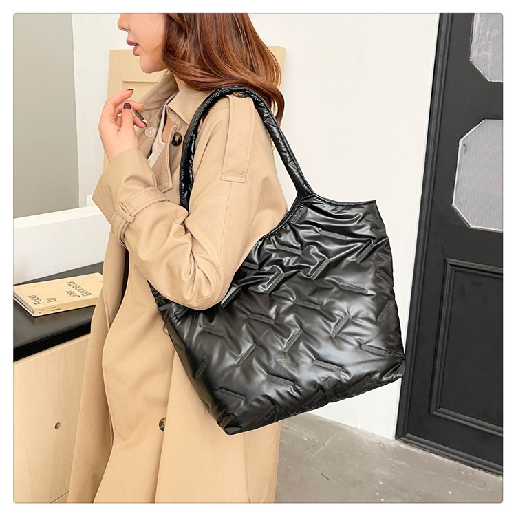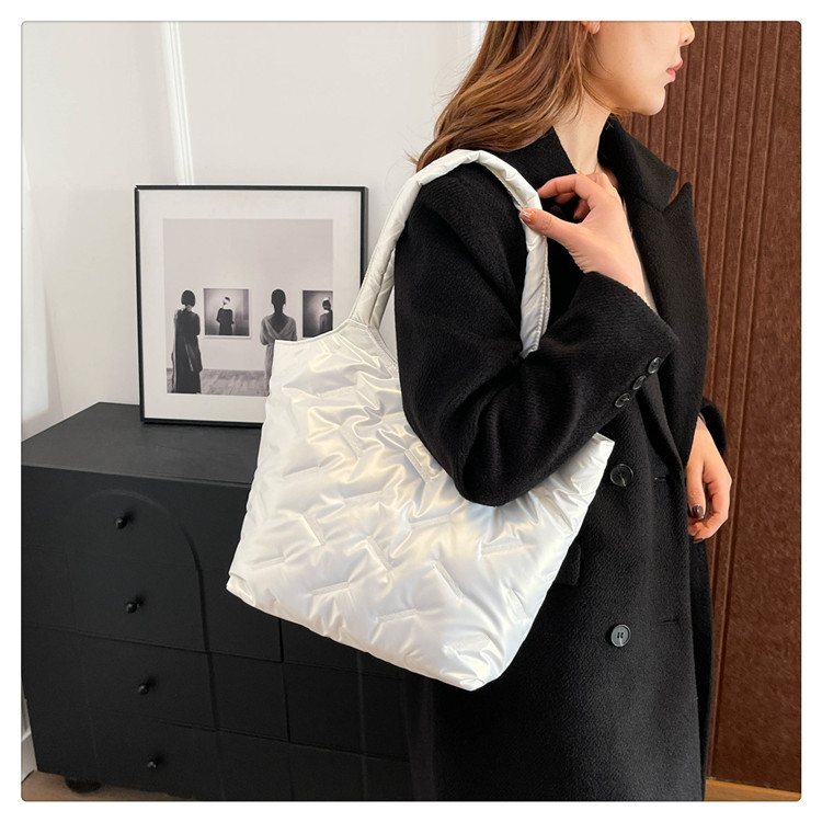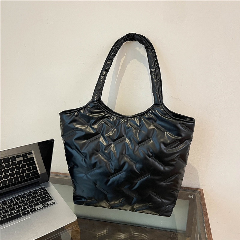 밝은면 패딩 재킷 가방 여성의 2024 겨울 새로운 패션 어깨 휴대용 여성 가방 대용량 토트 백 통근 가방