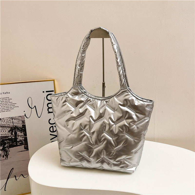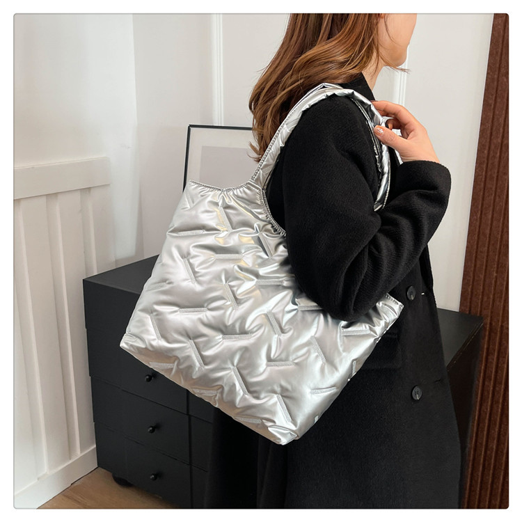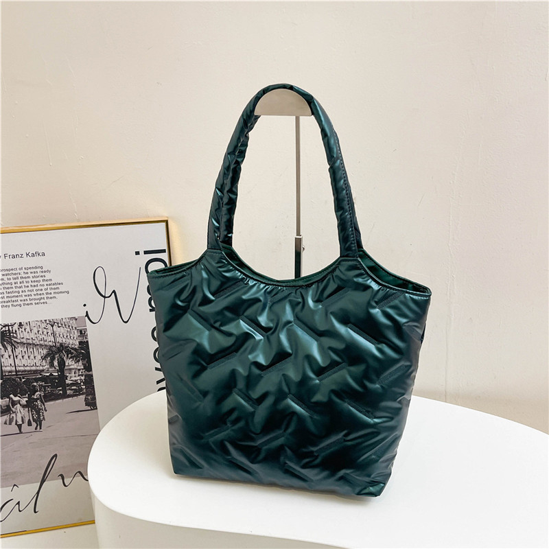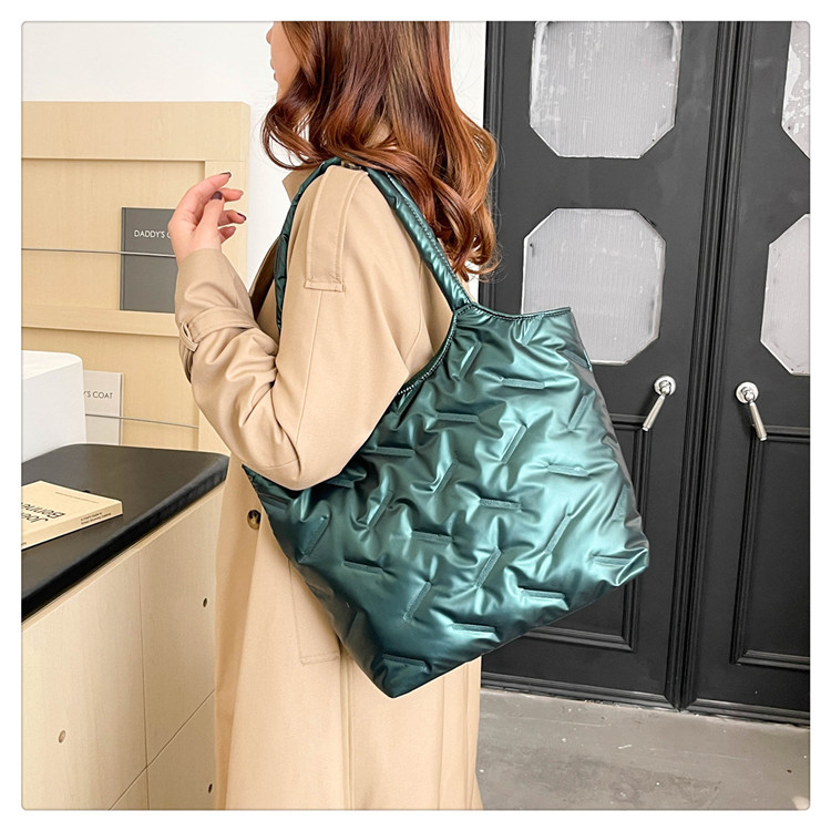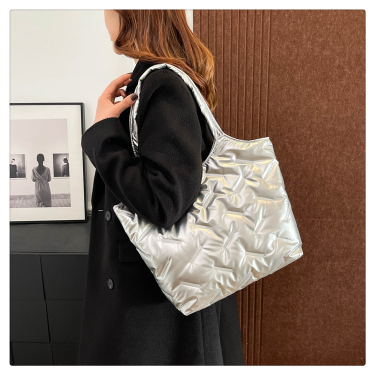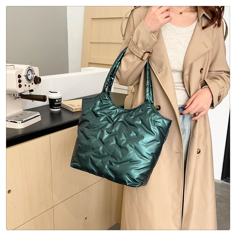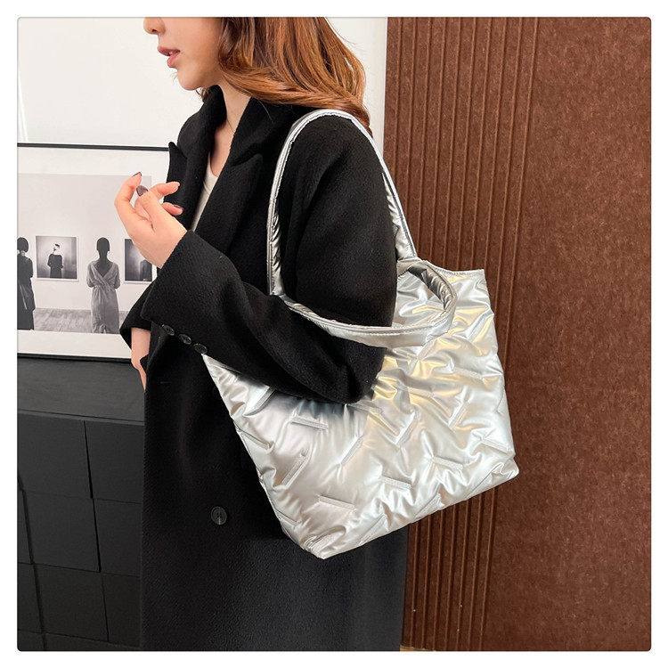 밝은면 패딩 재킷 가방 여성의 2024 겨울 새로운 패션 어깨 휴대용 여성 가방 대용량 토트 백 통근 가방