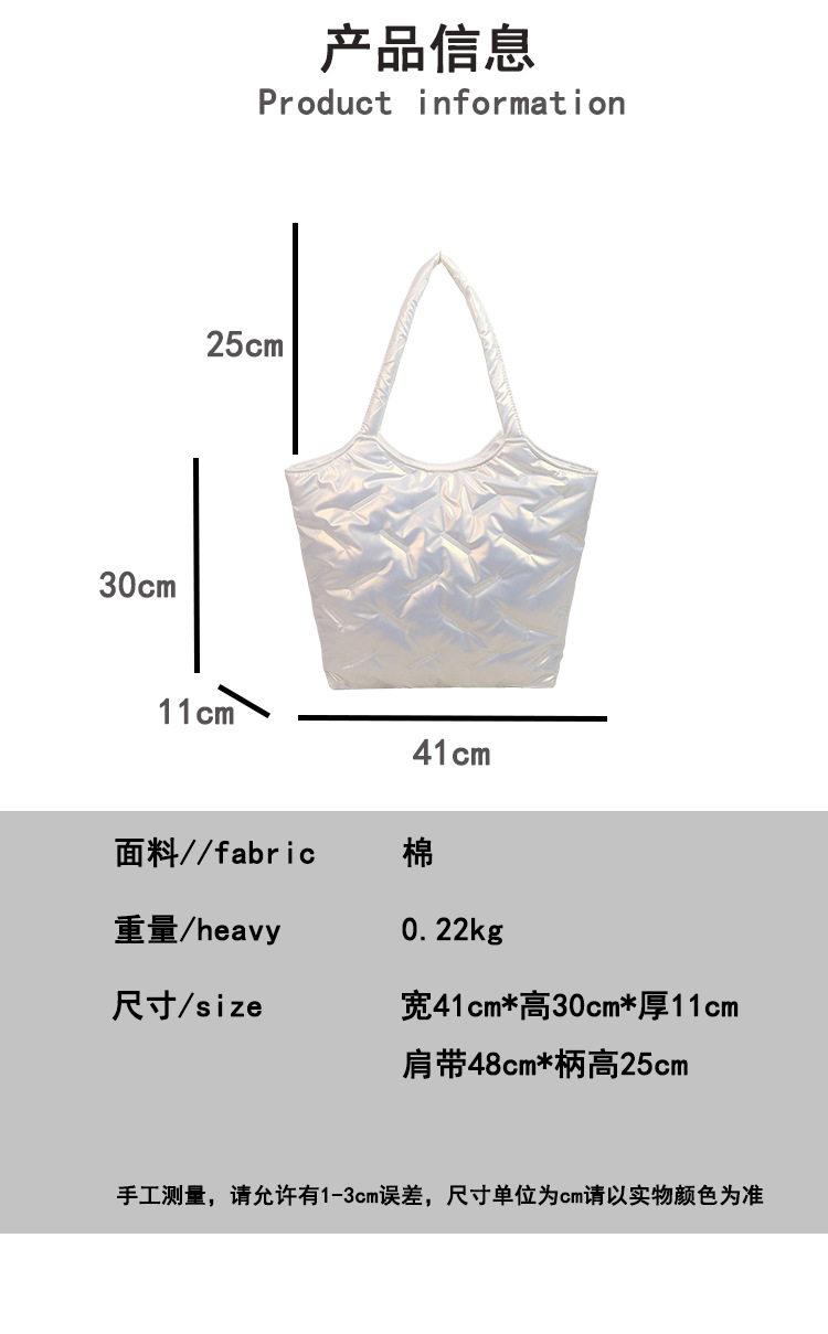 밝은면 패딩 재킷 가방 여성의 2024 겨울 새로운 패션 어깨 휴대용 여성 가방 대용량 토트 백 통근 가방스토어 가기