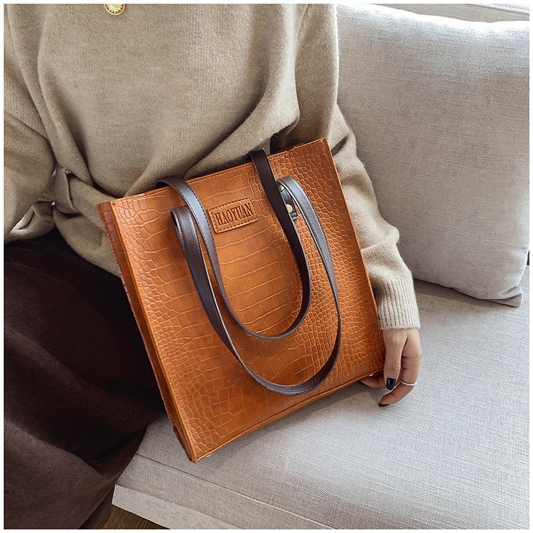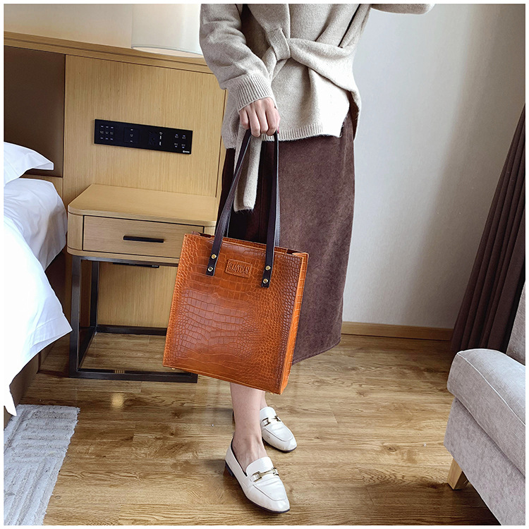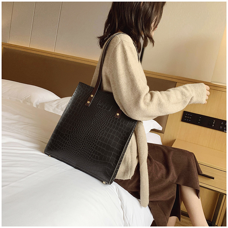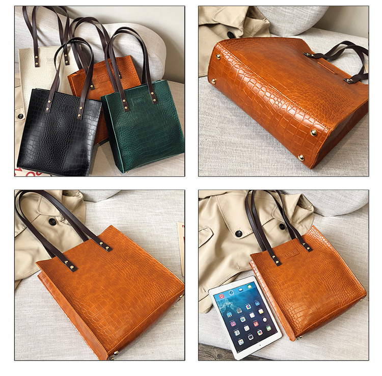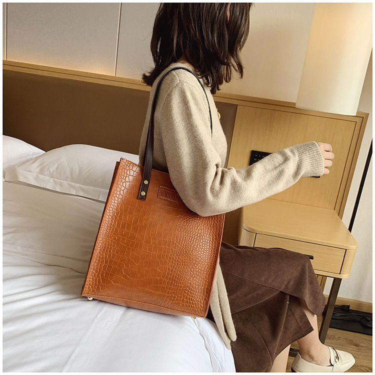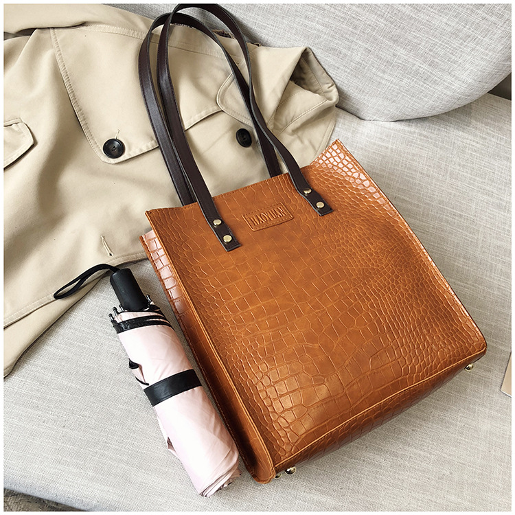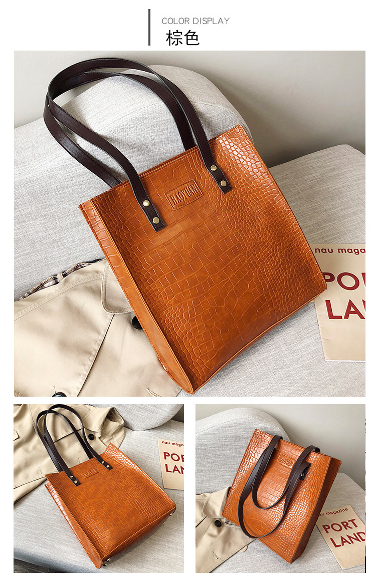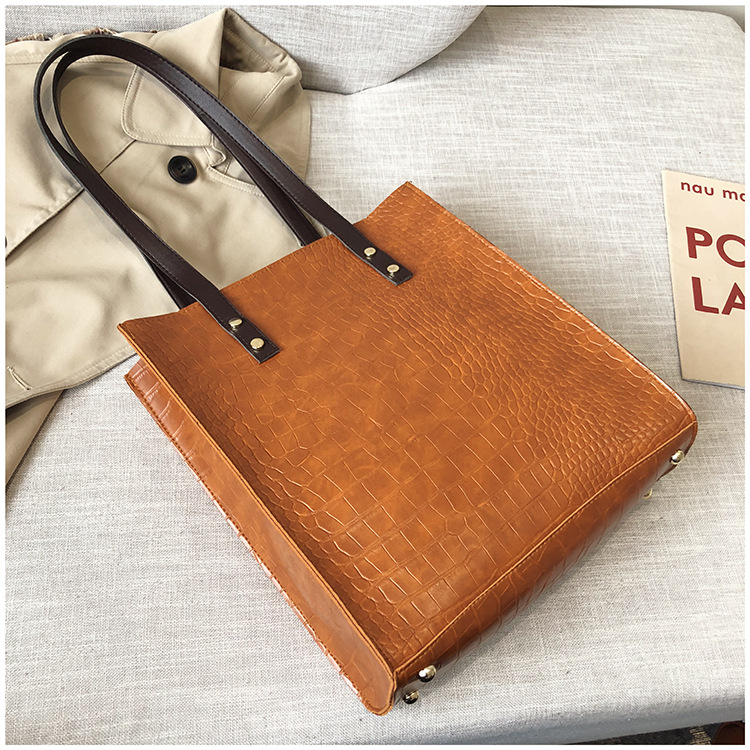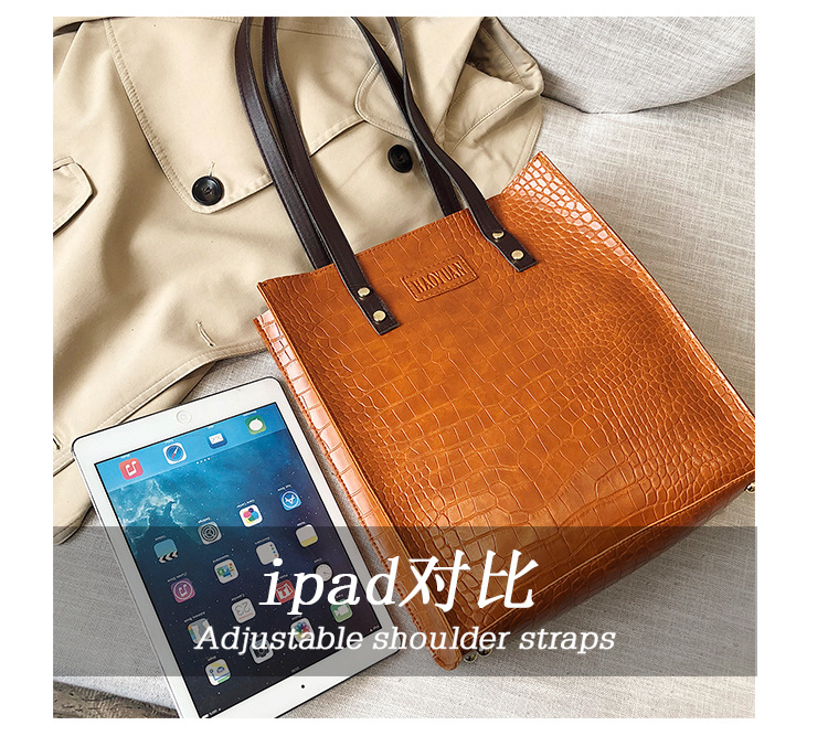 대용량 새로운 여성 가방 유럽과 미국 복고풍 간단한 서류 가방 유행 휴대용 악어 패턴 유행 어깨 가방스토어 가기