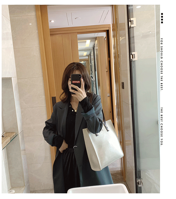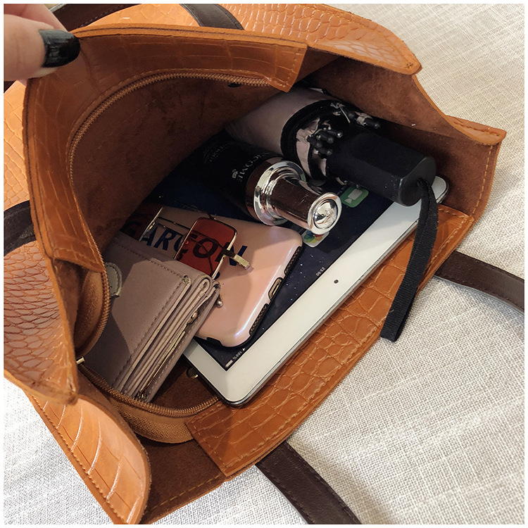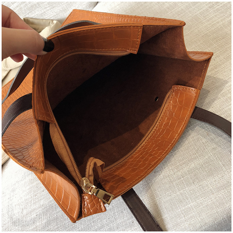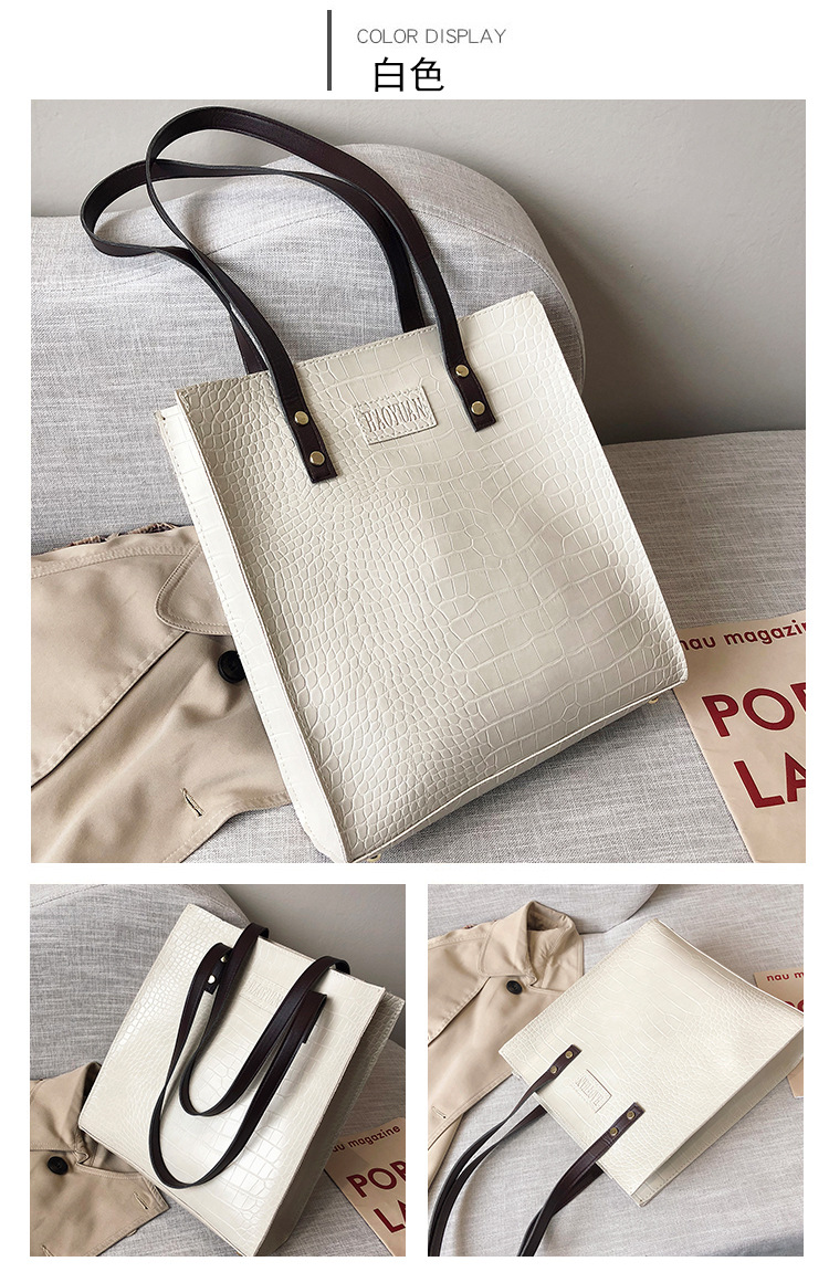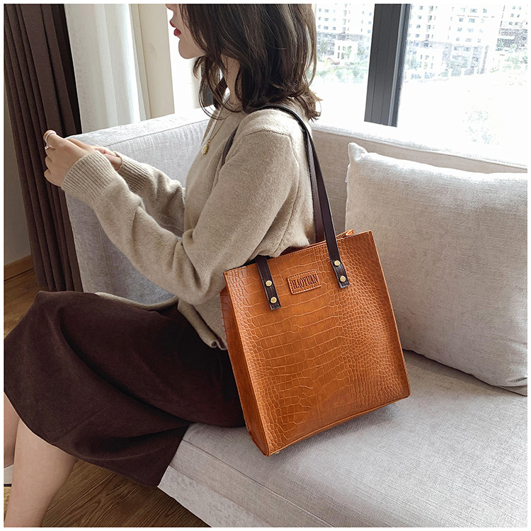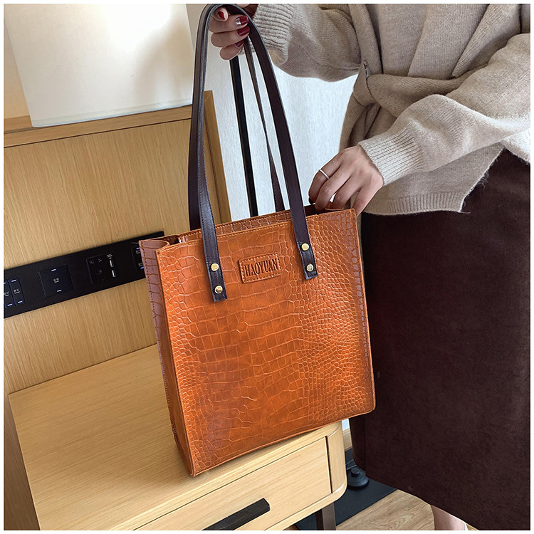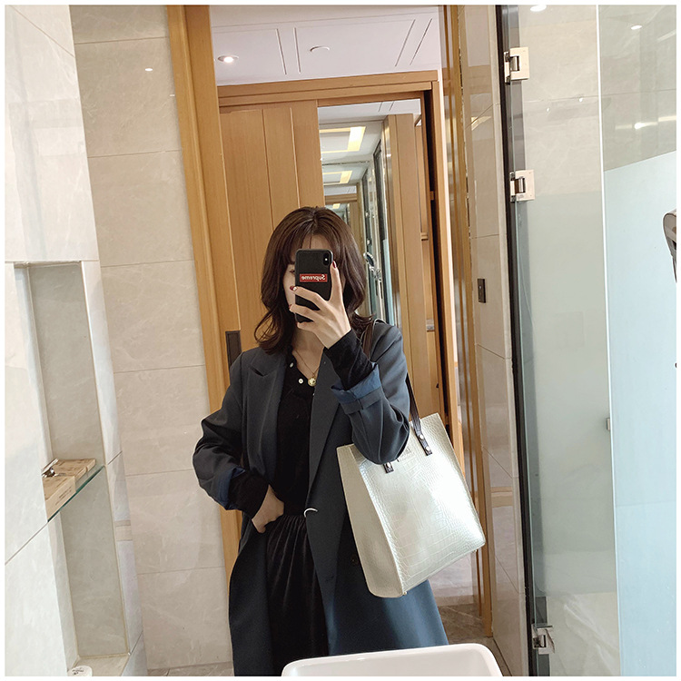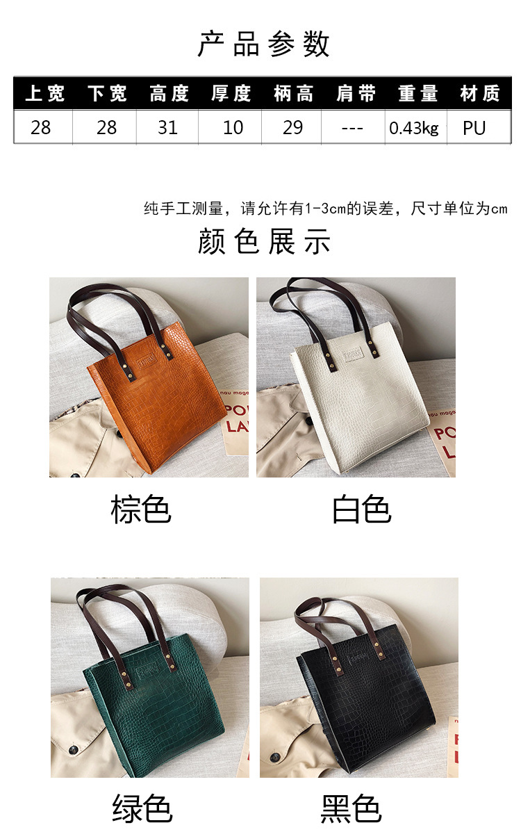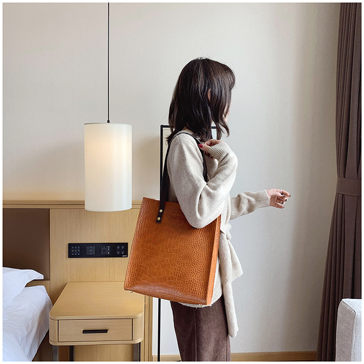 대용량 새로운 여성 가방 유럽과 미국 복고풍 간단한 서류 가방 유행 휴대용 악어 패턴 유행 어깨 가방스토어 가기