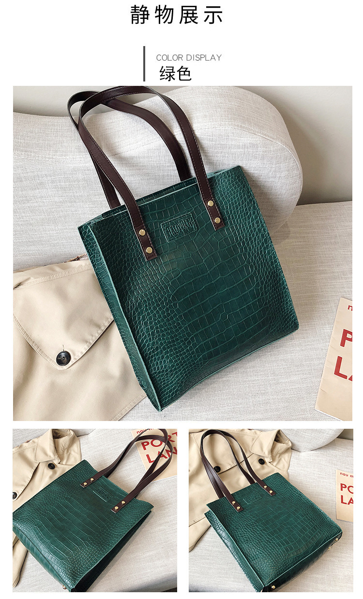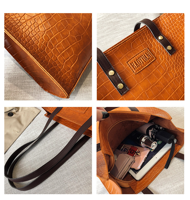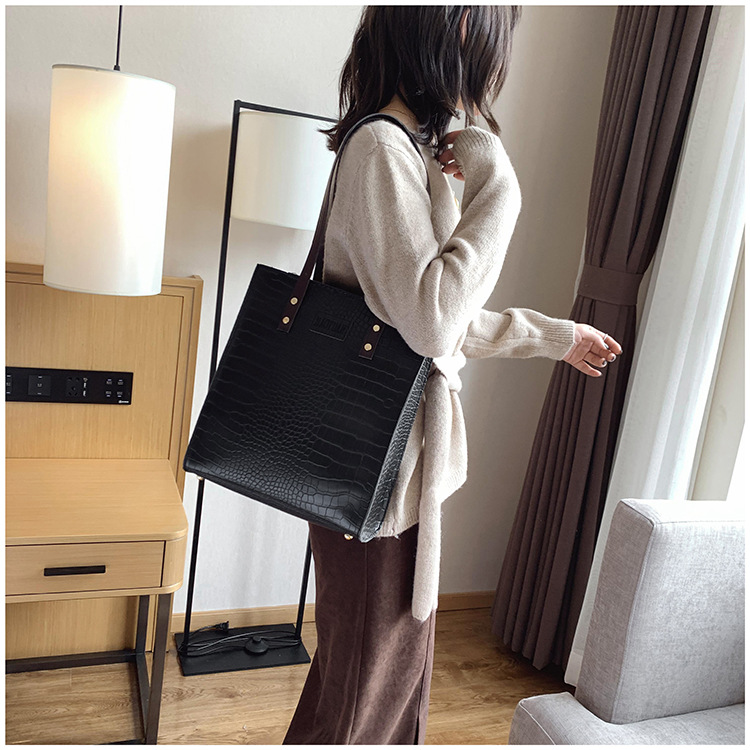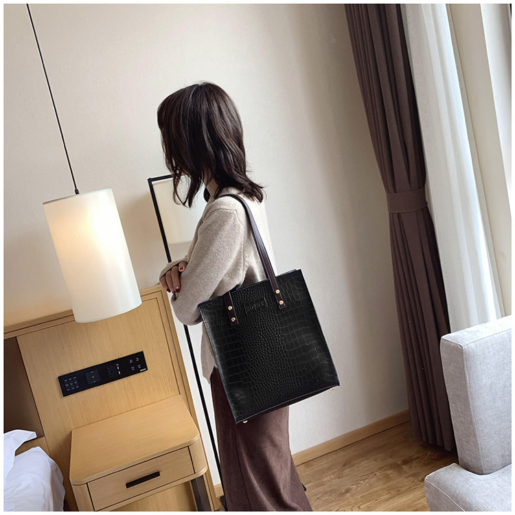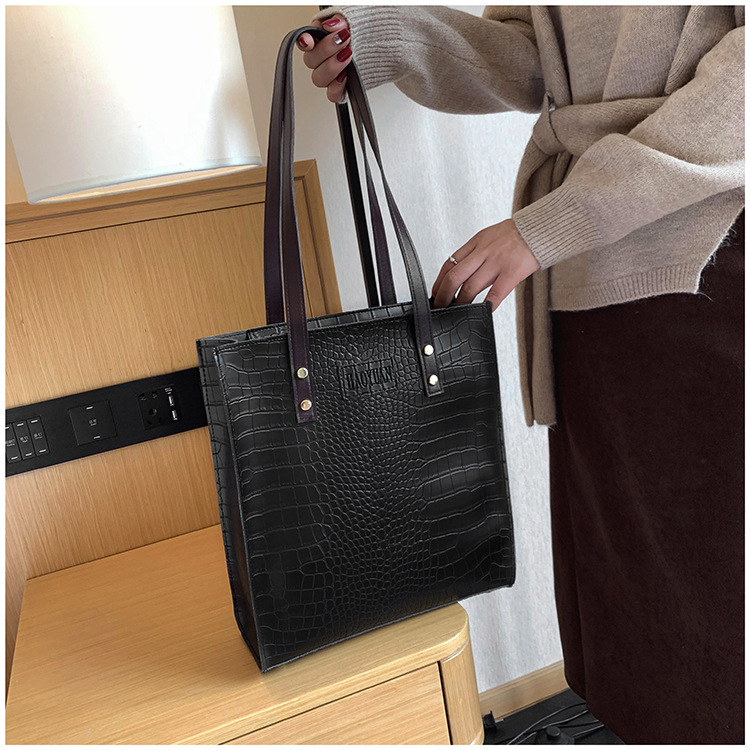 대용량 새로운 여성 가방 유럽과 미국 복고풍 간단한 서류 가방 유행 휴대용 악어 패턴 유행 어깨 가방