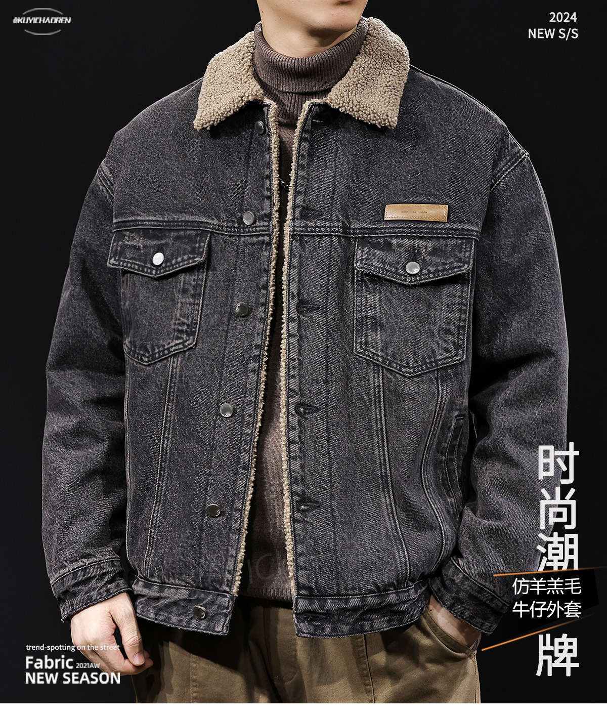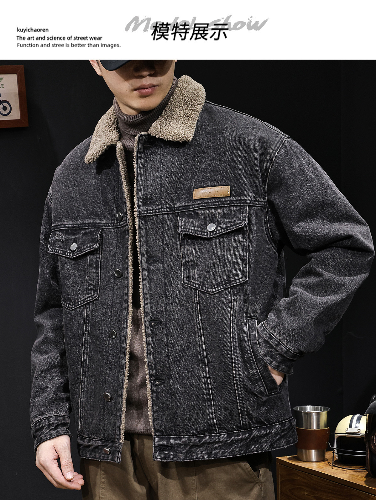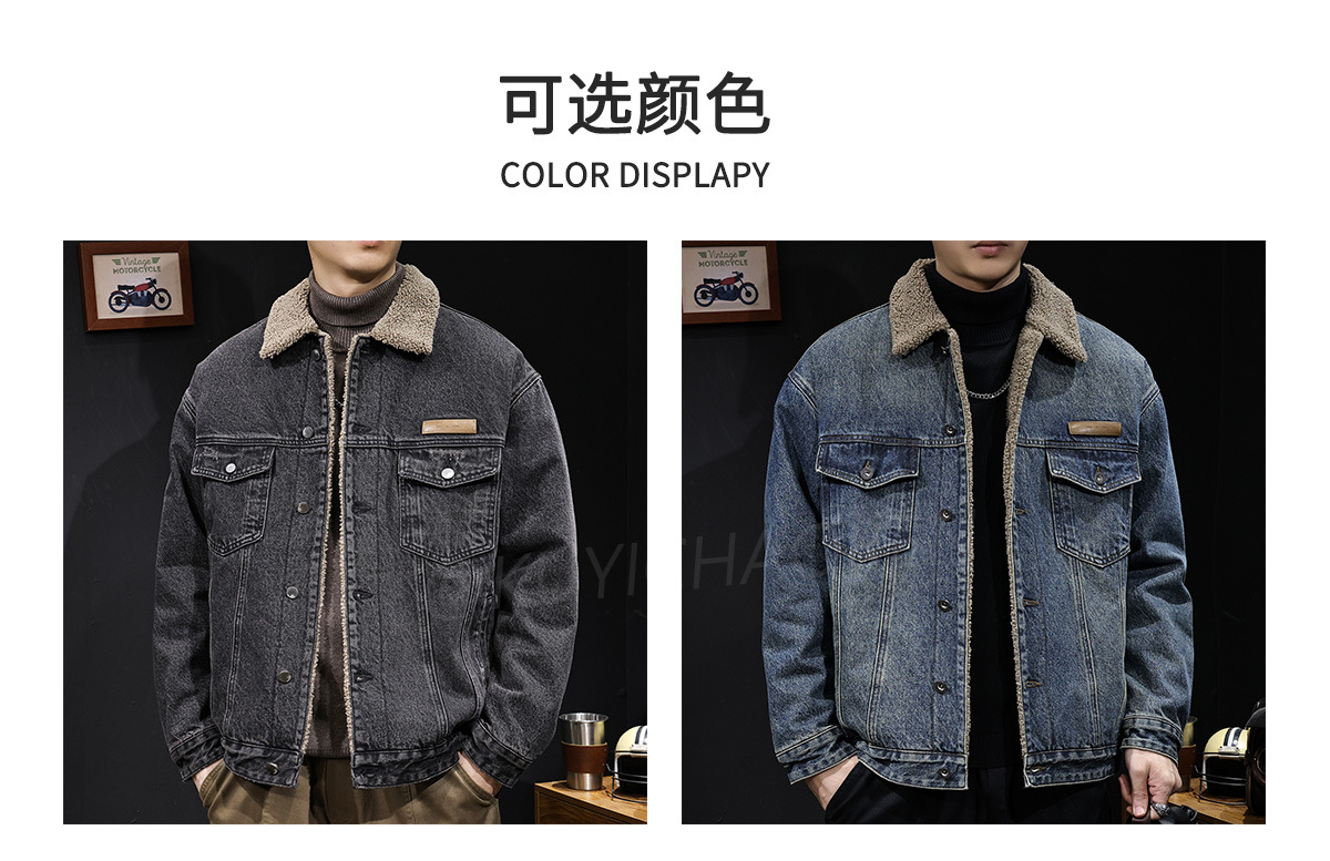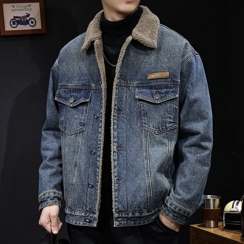 양털 코튼 자켓 남성용 2025 신상 겨울 코튼 의류 두꺼운 보온 남성용 데님 자켓 가을 겨울 의류스토어 가기