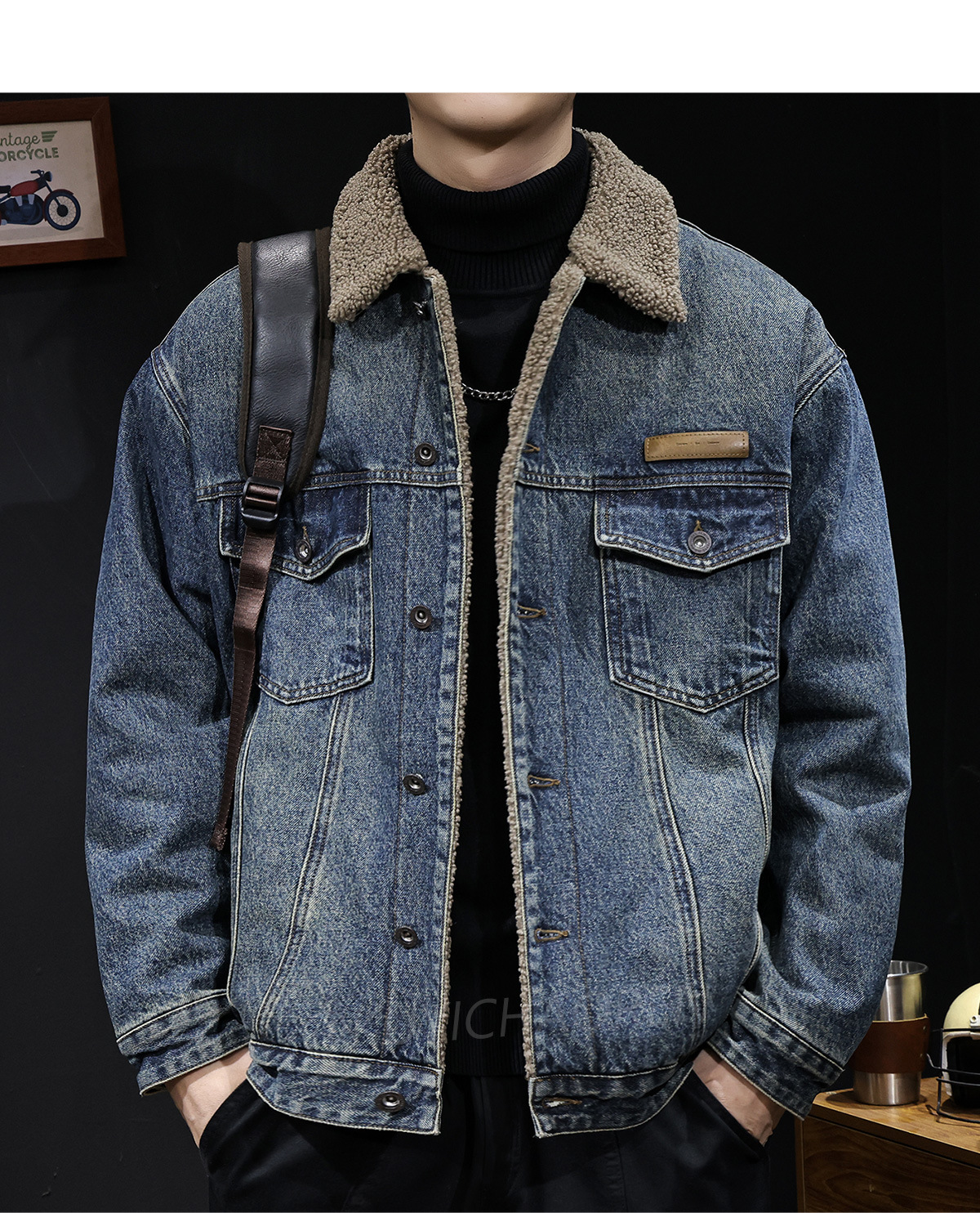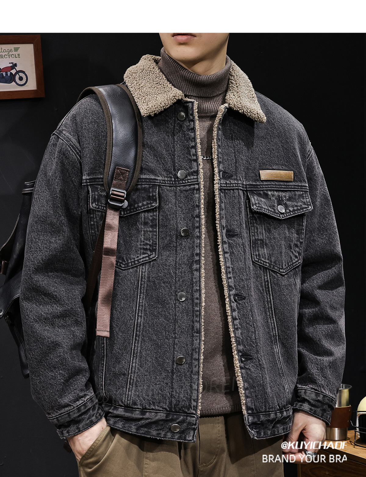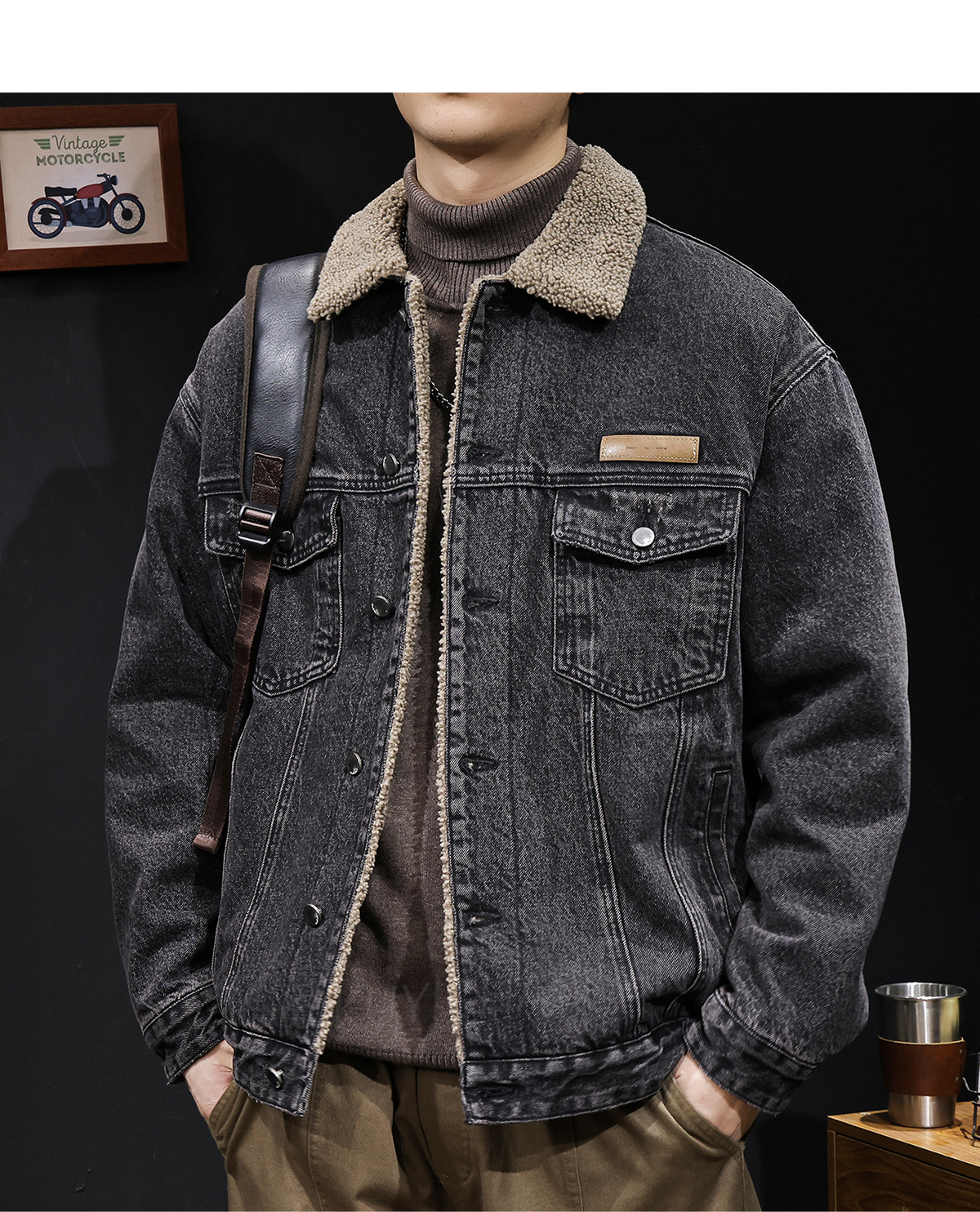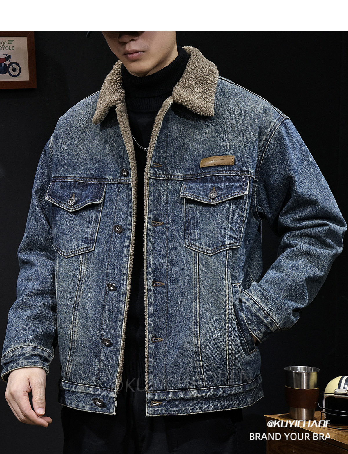 양털 코튼 자켓 남성용 2025 신상 겨울 코튼 의류 두꺼운 보온 남성용 데님 자켓 가을 겨울 의류스토어 가기
