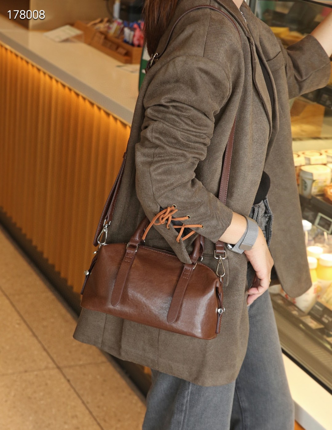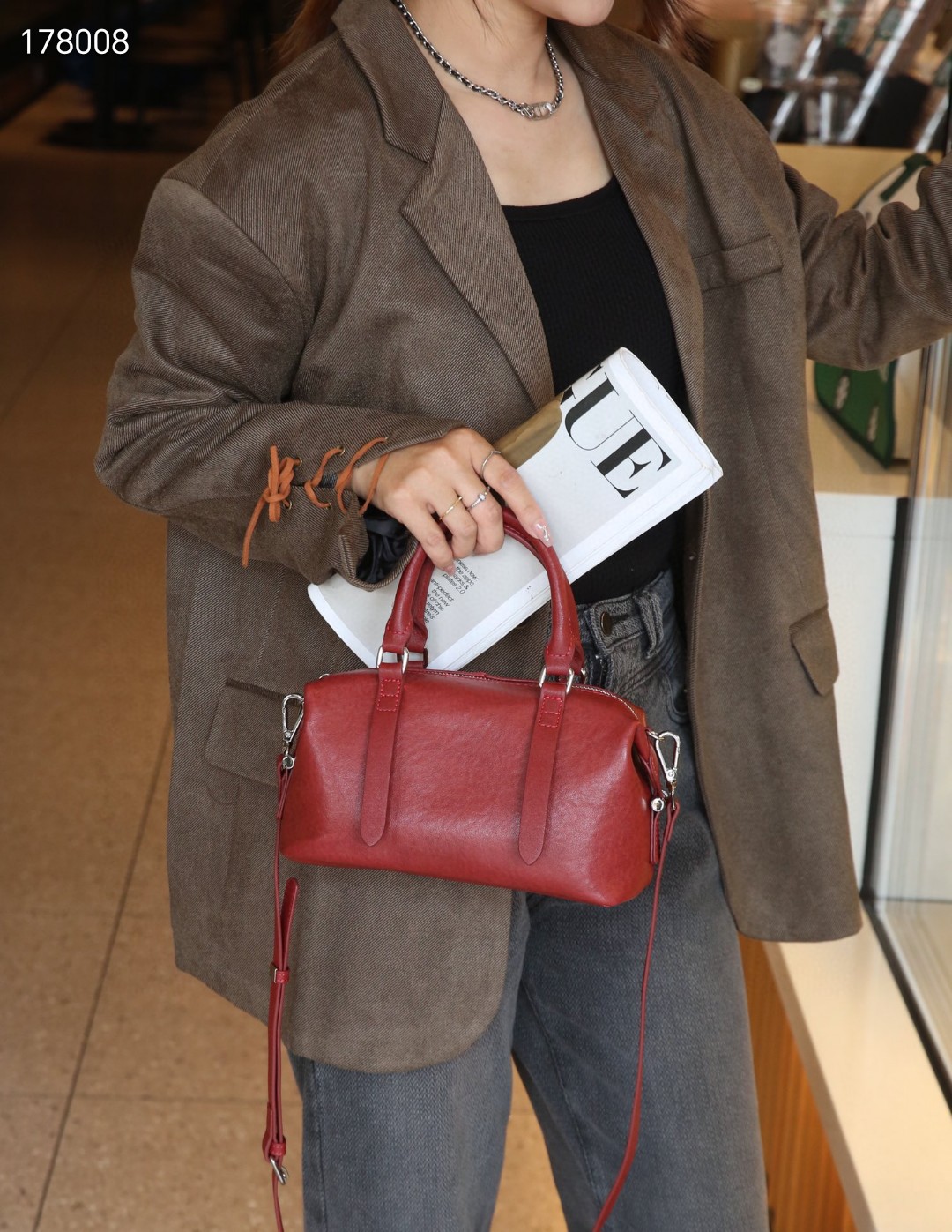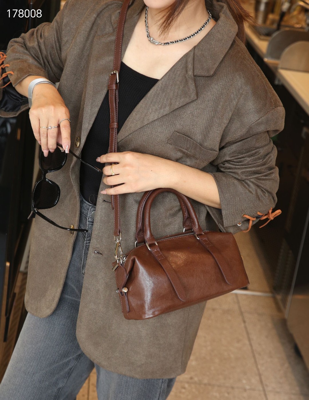 소스 공장 보스턴 가방 크리스탈 야채 태닝 카우 히드 유럽과 미국의 레트로 높은 고정 어깨 크로스 바디 슈트 케이스 여성용 가방스토어 가기
