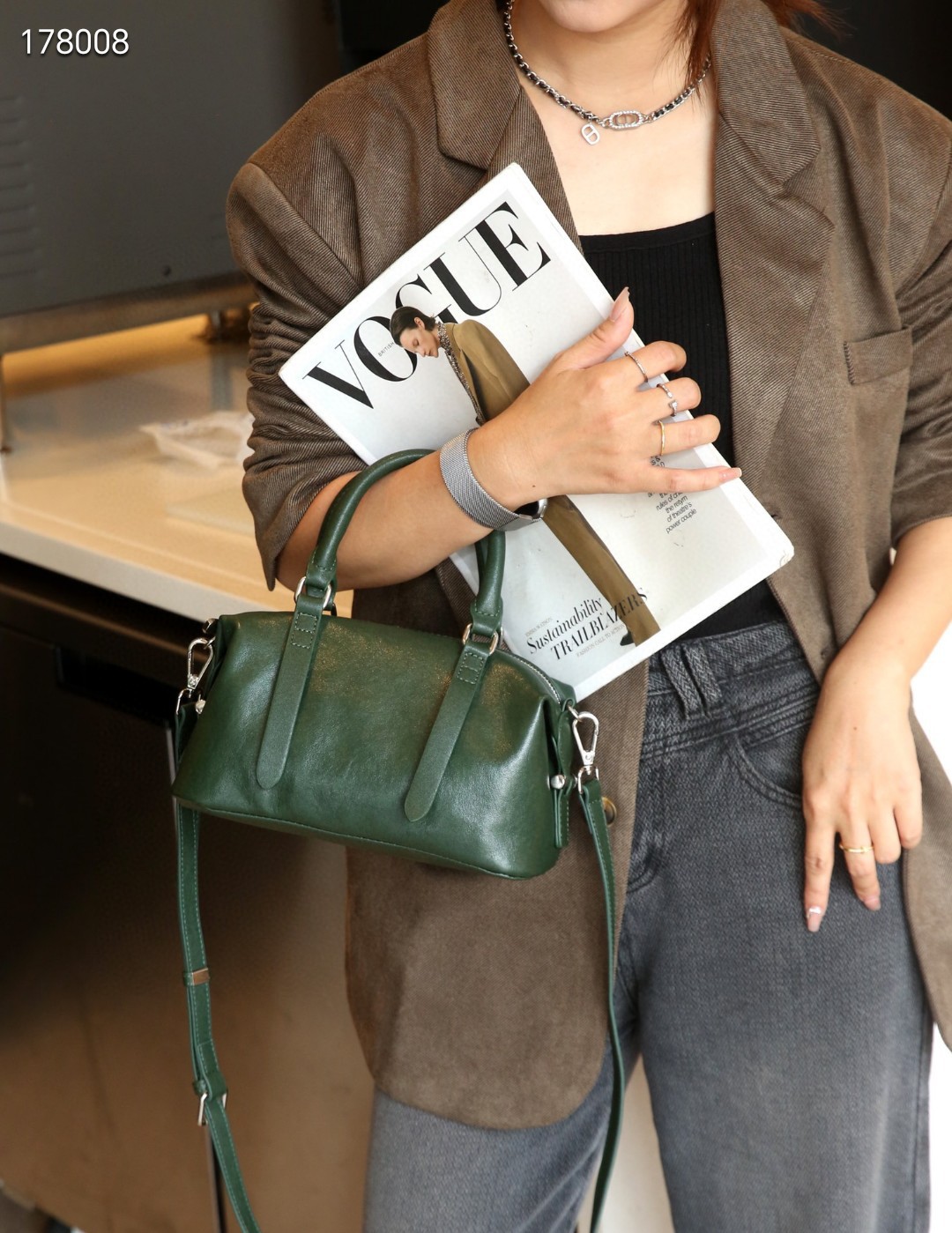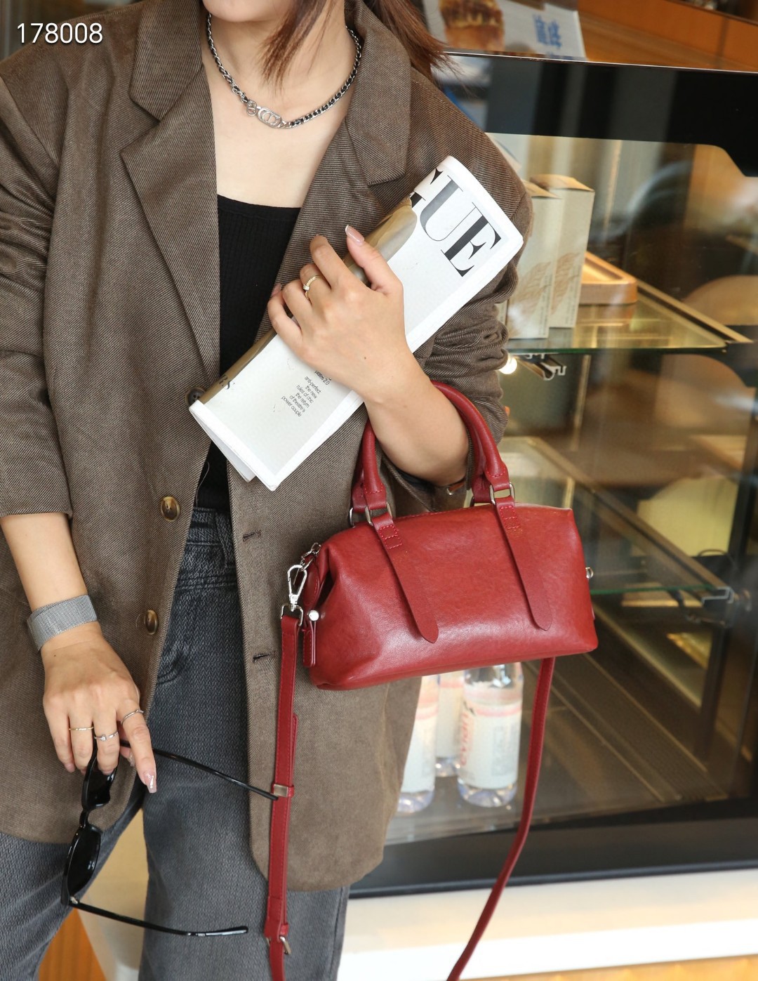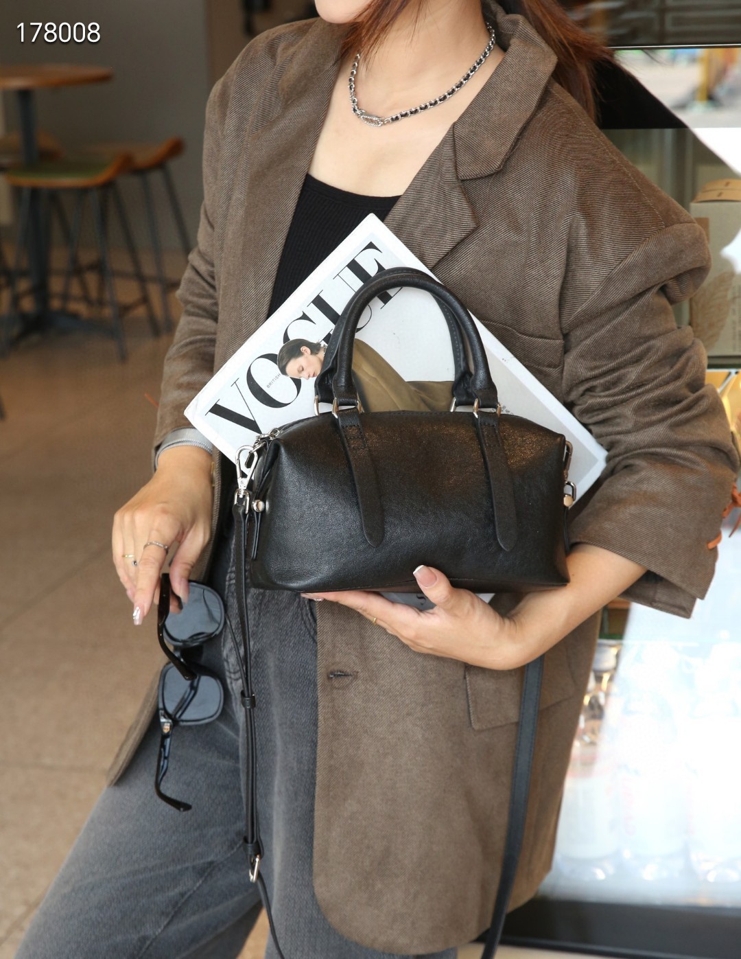 소스 공장 보스턴 가방 크리스탈 야채 태닝 카우 히드 유럽과 미국의 레트로 높은 고정 어깨 크로스 바디 슈트 케이스 여성용 가방스토어 가기